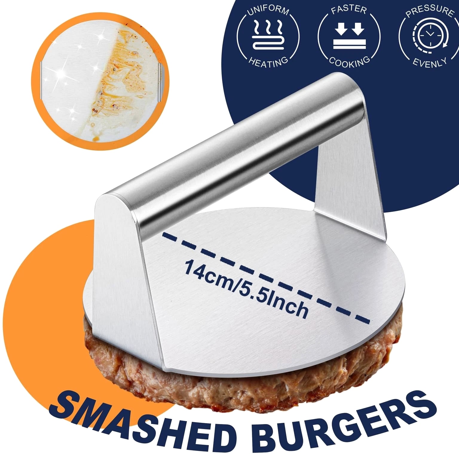 Smashed Burger Kit, Large Burger Spatula, 5½ Inch Stainless Steel Burger Press