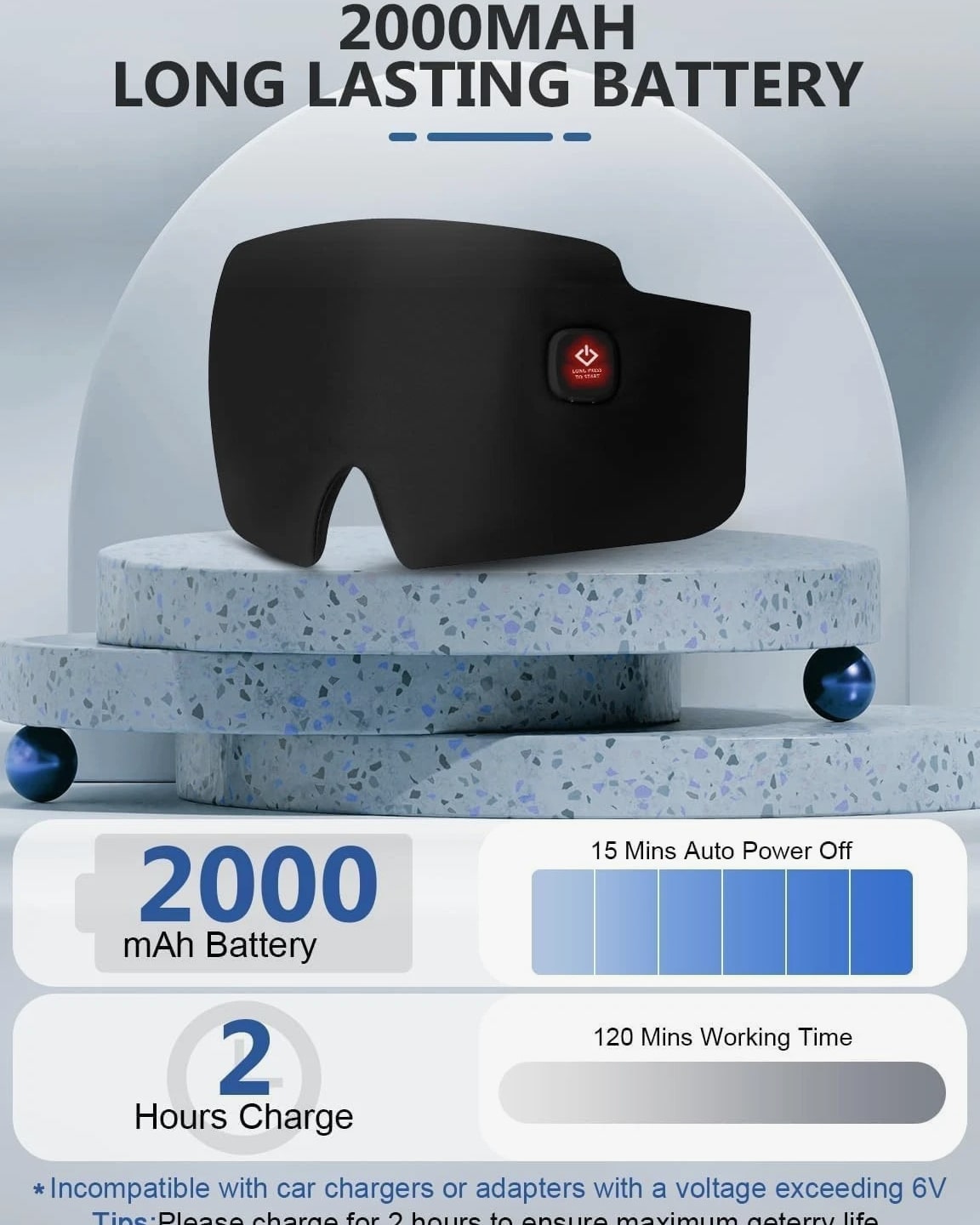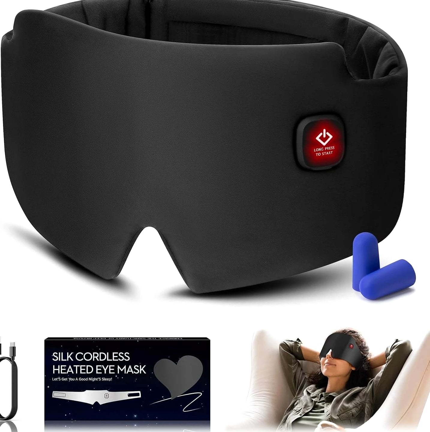 Cordless Heated Silk Eye Mask 2000mAh Warm Compress Sleep & Dry Eye Relief