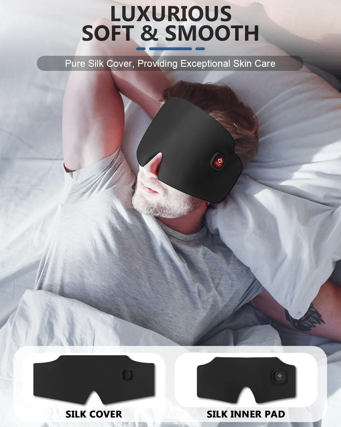 Luxurious Warm Therapy for Eyes & Sleep 😴 Relax and unwind with the Zinpaza Silk Heated Eye Mask, designed to provide gentle warmth and soothing comfort for tired eyes. Crafted from premium silk inside and out, this cordless heated eye mask helps create a relaxing environment while blocking light for restful sleep and relaxation. With three adjustable heat levels and a rechargeable battery, it delivers convenient warmth whether you're at home, traveling, or resting during a break. Key Features 🧵 Premium Silk Comfort Soft silk interior and exterior provide a luxurious feel while helping block out light for deeper relaxation and improved rest. 🔥 3 Adjustable Heat Settings Choose your ideal warmth level: High: 140°F Medium: 125°F Low: 105°F Gentle heat helps soothe tired eyes and support relaxation. 🔋 Long-Lasting Rechargeable Battery Powered by a 2000mAh rechargeable battery, offering multiple sessions on a single charge and quick recharge in approximately 2 hours. 🧼 Removable & Washable Cover Outer silk cover can be removed and washed to keep your mask fresh and hygienic for daily use. 🎧 Comfortable Adjustable Fit Adjustable Velcro strap ensures a secure and comfortable fit for different head sizes. Includes earplugs for quieter sleep. Product Details Brand: Zinpaza Product Type: Heated Eye Mask Material: Premium Silk Heat Settings: 3 levels Battery: 2000mAh rechargeable Charging Time: Approx. 2 hours Use: Sleep mask or heated therapy mask Ideal For Relaxation and stress relief Dry or tired eyes Travel and rest breaks Light-blocking sleep mask use Comfort during rest or meditation heated eye mask rechargeable, silk heated eye mask, cordless heated sleep mask, warm eye compress mask, rechargeable eye mask therapy, sleep eye mask silk heated, migraine relief heated eye mask, dry eye warm compress mask, zinpaza heated eye mask