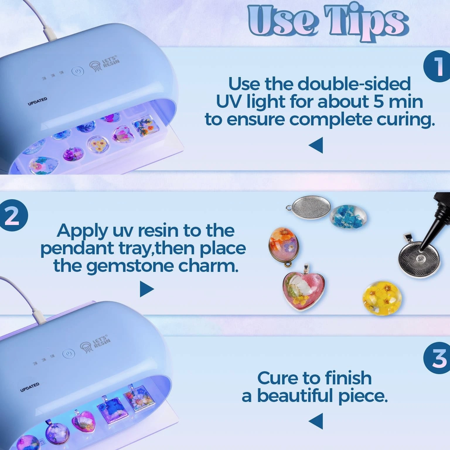 Cabochon Gems Resin Molds - 36 Cavities UV Resin Jewelry Making Kit with 16 Pendant Trays