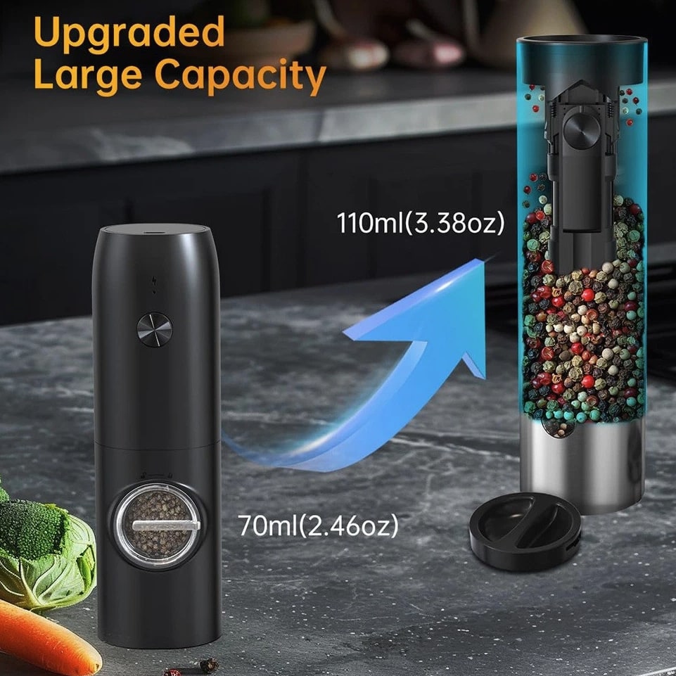 Rechargeable Electric Salt & Pepper Grinder Set - Automatic Stainless Steel