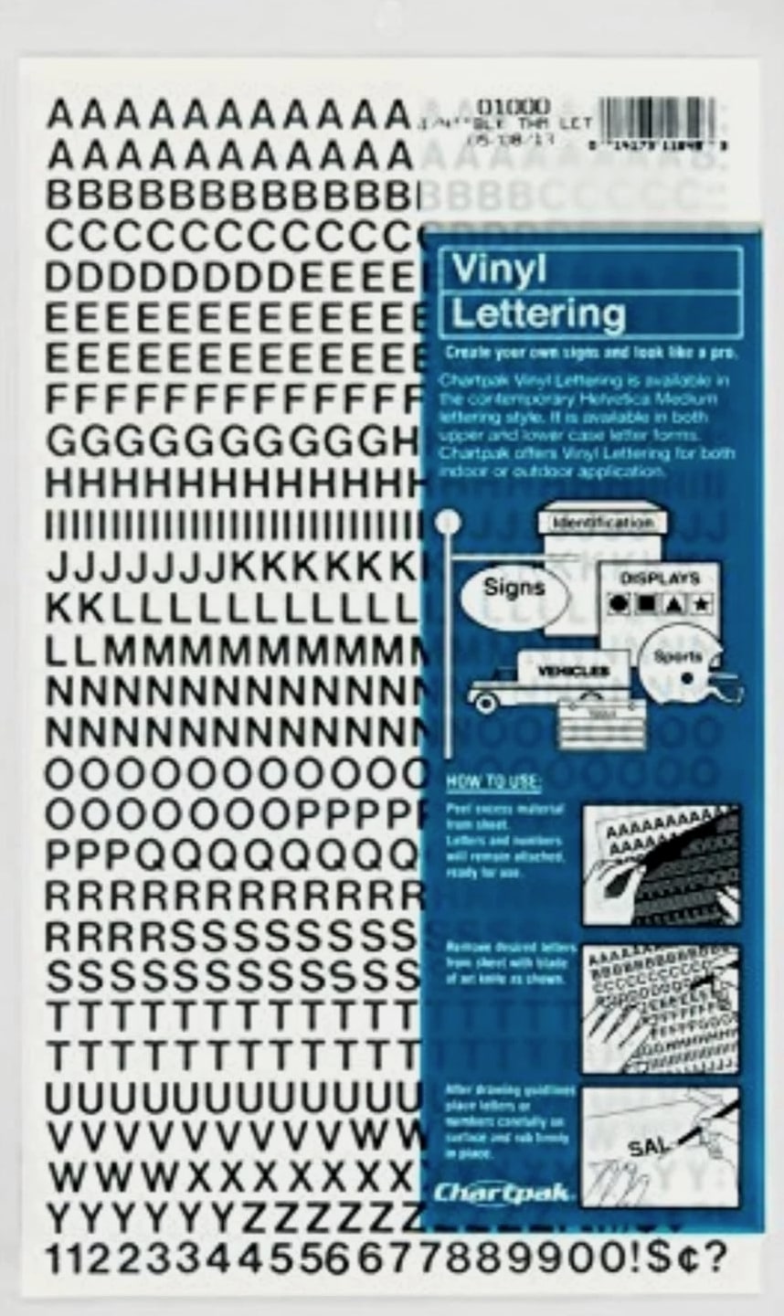 Self-Adhesive Vinyl Letters & Numbers - Manufactured in USA - 0.25" Black, 610 Pieces Features: Perfect for creating displays, signs, posters, and identifying property. Water-resistant material suitable for outdoor use, including vehicles and boats. Includes punctuation and monetary symbols (610 total characters). All characters crafted in the elegant Helvetica font with a strong, permanent adhesive. Designed to stick to most clean, dry surfaces, ensuring a strong bond. Benefits: Create professional-looking signage for any purpose - from business to personal use. Durable and water-resistant for longevity even in outdoor environments. Simplify your projects with an easy peel-and-stick application. Versatile for both indoor and outdoor use, adapting seamlessly to your needs. Includes a wide range of characters for customized messages. Why choose our Self-Adhesive Vinyl Letters & Numbers? Transform your signage and engage your audience with our Self-Adhesive Vinyl Letters & Numbers, crafted exclusively in the USA. With a stunning array of 610 pieces, including punctuation and symbols, this set empowers you to express any message creatively and effectively. Designed with a strong, waterproof material, our vinyl letters are ideal for both indoor and outdoor applications, ensuring your displays stand the test of time, whether it be on a storefront window, vehicle, or boat. The easy-to-apply adhesive guarantees a lasting hold, making this product a smart investment for personal and professional projects alike. Elevate your communication effortlessly - order your Self-Adhesive Vinyl Letters & Numbers today! Shipping Free & Fast Shipping - Normal delivery time of 3-7 days. Additional delivery time (up to 3 weeks) may be required for some items.