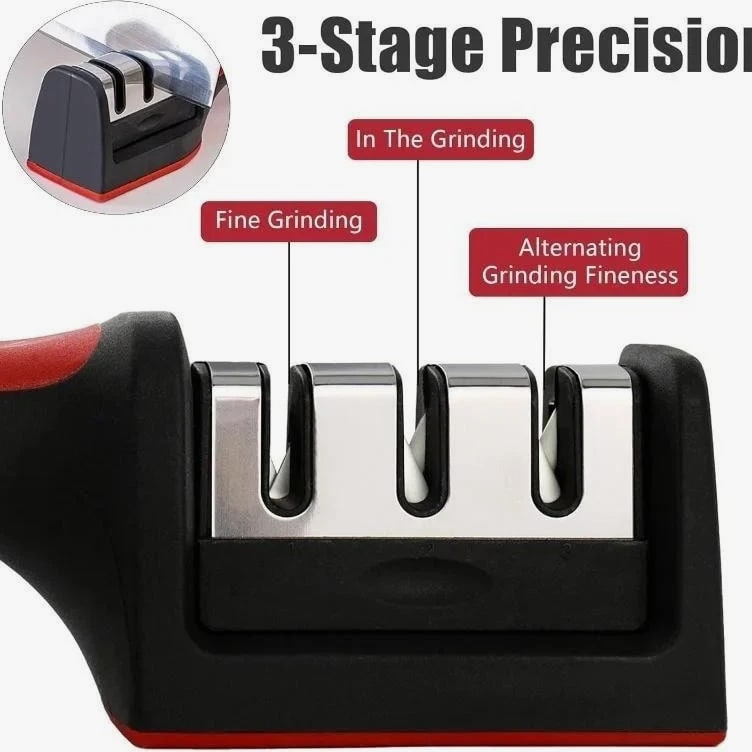 3-Stage Knife Sharpener for Kitchen Knives – Stainless Steel Multi-Purpose