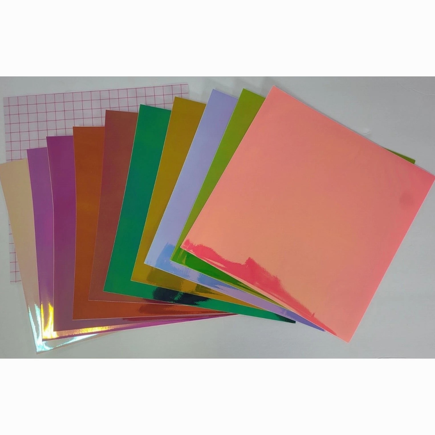 Kassa Holographic Vinyl Sheets 10 Pack Different Colors Permanent Adhesive 12X12