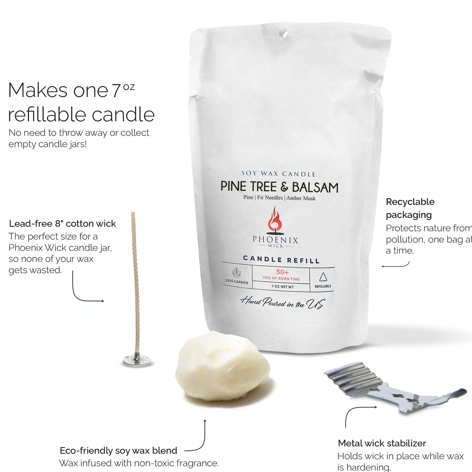 Over 50 hours of burn time with clean toxin-free soy wax. A high quality candle from a sustainability-focused company bringing eco-consciousness to the candle making industry. Candle lovers know the pain: Countless used candle jars accumulating around the house (or sadly, disposed of). What if there was a better way? There is! Candles are reusable and refillable. Wax Refills provide pre-scented wax in the perfect portion size to completely refill your candle jar. This is a fun and simple way to reduce waste, and make something that your family can enjoy! Other candle building sets require a lot of work for busy people that don't have hours of craft making time to spare. They require you to measure out soy wax flakes, melt in a pot on a hot stove, mix in scented oils, and wipe up melted wax afterwards. Wax Refills can be quickly melted in the microwave, and the pouch discarded or recycled after you finish! Fun for adults, beginners, and children with adult supervision. No mess, easy cleanup. Refill & remake a candle in 10 minutes or less. 7 oz soy candle wax for candle making. 1 candle 1 candle holder TRANSFORM ANYTHING INTO A CANDLE: Turn any container of your choice into a homemade scented candle with a candle creation package. 7 OUNCE WAX REFILL: A recyclable bag of pre-scented natural soy wax to refill your premium candle jar. Includes 7oz soy wax, 1 cotton wick that lasts over 50 hours, and 1 metal stabilizer. CLEAN BURNING SOY WAX THAT LASTS 50+ HOURS: Our long lasting and best smelling natural oil candles work great as kitchen candle, bathroom candle or spa candle. The natural soy wax also makes pet safe candles. GREAT SCENTS FOR GIFTS OR YEAR ROUND USE: Summer candles, Spring candles, soy candles for Fall scents, or Winter candles for fresh fragrance indoors. Great scented candles for men or as candle gifts. PINE TREE BALSAM SCENTED SOY WAX: A bold and woodsy fragrance with a masculine and slightly spicy scent, rich and warm. Teakwood is a fast growing hardwood popular for outdoor furniture and boats.