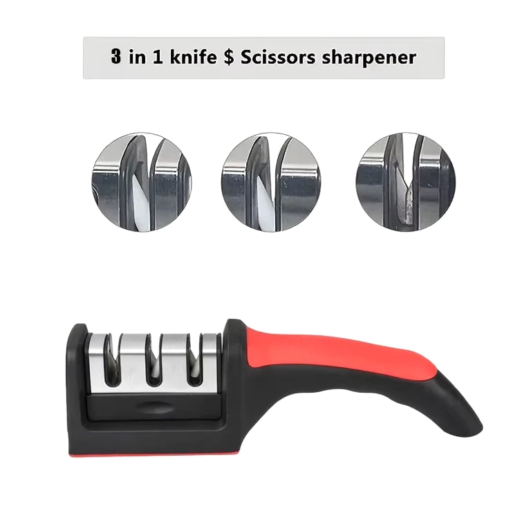 Multi-Functional 3-Stage Knife Sharpener for Kitchen Knives & Scissors