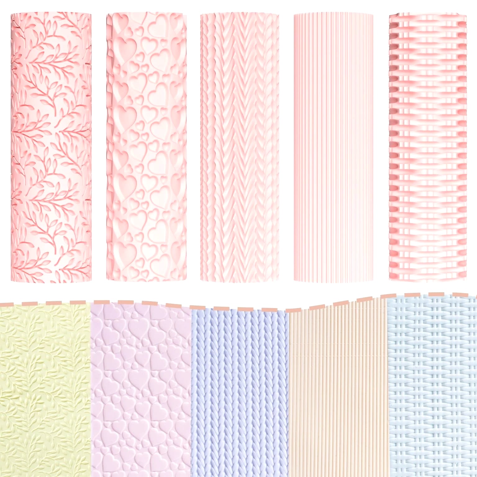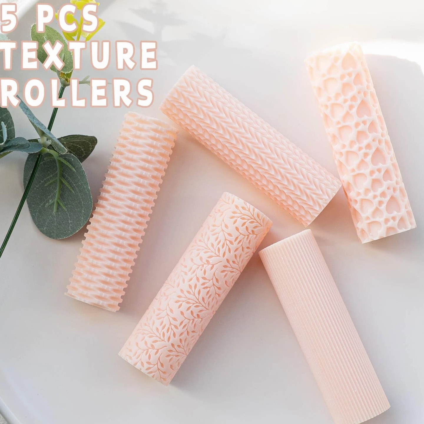 TAINSKY 5 Pcs Polymer Clay Texture Roller, Pottery Stamps Style B Set