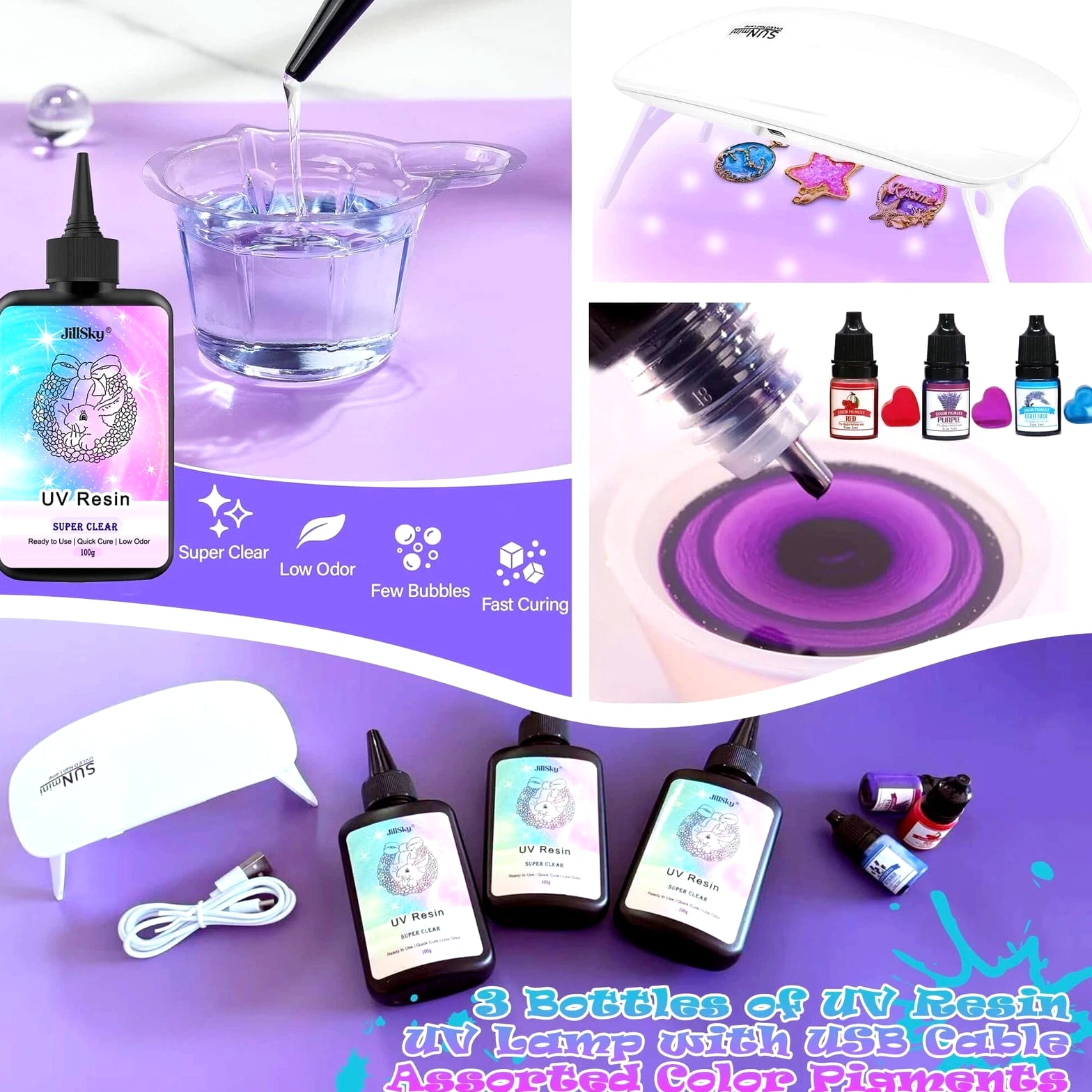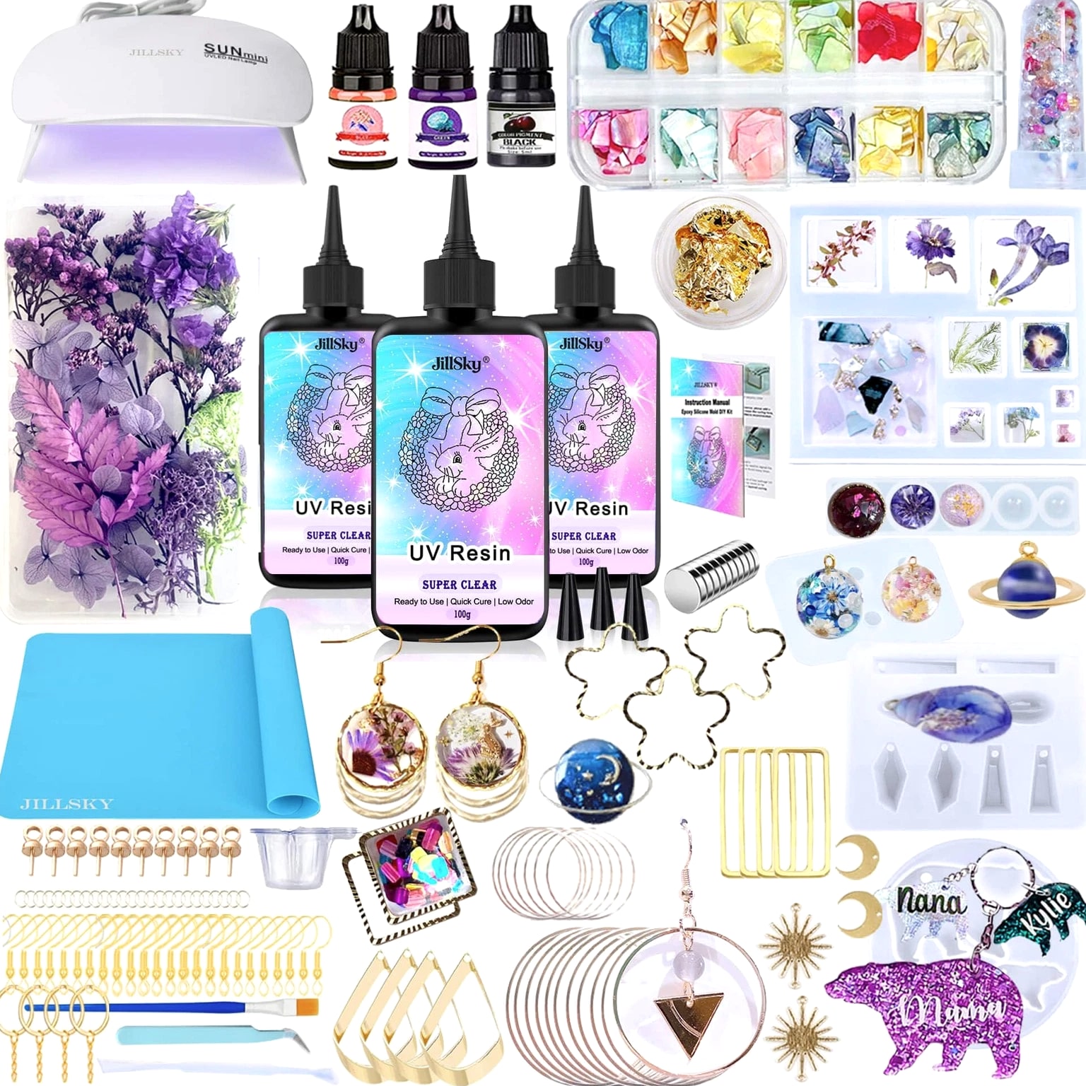 UV Resin Jewelry Making Kit, 300g Complete UV Resin Kit with Light, Molds, St...