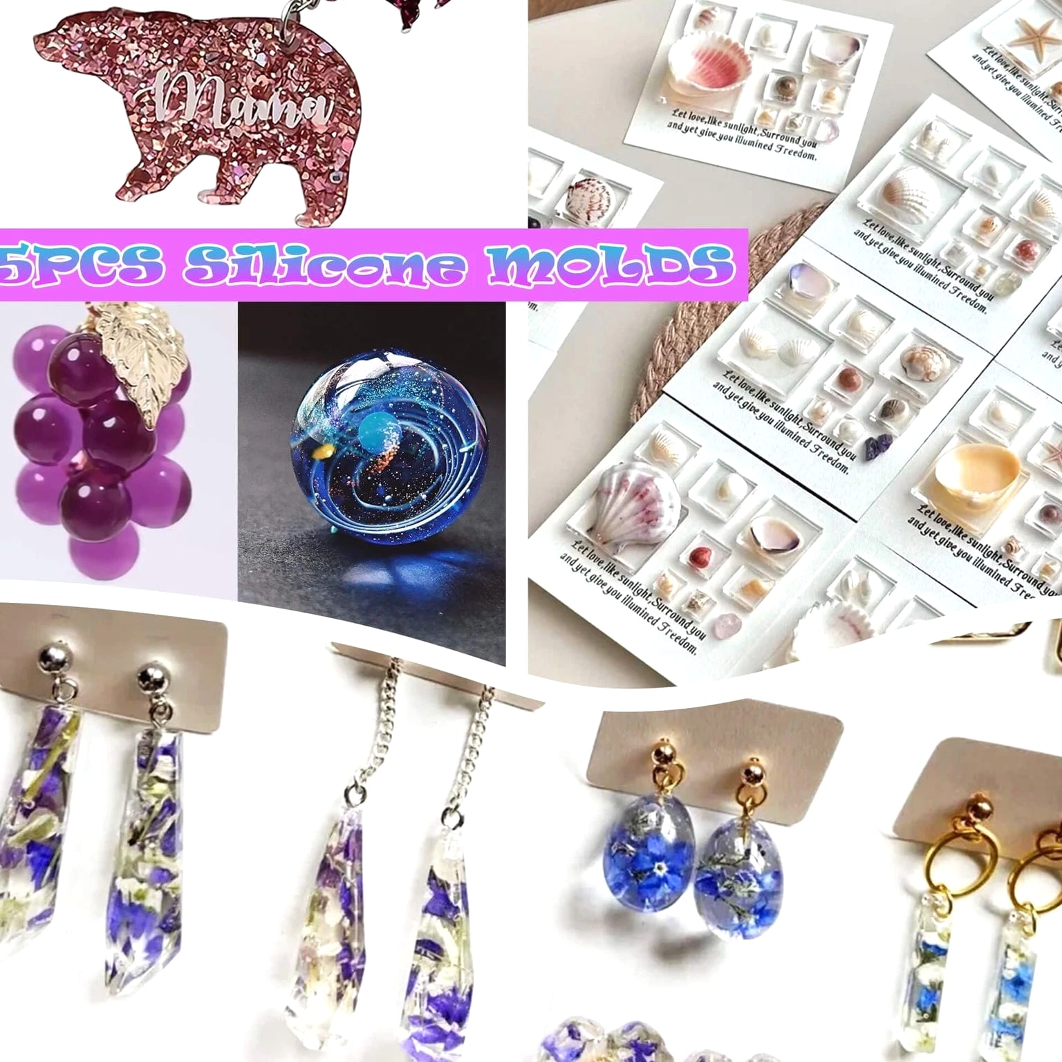 This UV resin kit with light includes 300g of high-quality crystal-clear UV resin, a powerful UV light for resin, 5 versatile resin molds, keychain and earring supplies, pigments, dried flowers, and essential tools. No need for extra purchases—this complete resin starter kit is perfect for beginners to create resin charms, jewelry, and more. 1️⃣【All-in-One Complete UV Resin Kit with Professional Tools】 This 300g all-in-one UV resin kit is perfectly designed for both beginners and expert crafters. It includes everything you need: 300g crystal clear UV resin, a compact UV curing light with USB-C charging, 5+ premium silicone molds for various shapes, vibrant pigments, gold foil, glitter, a silicone mat, mixing tools, earring hooks, key rings, and a convenient storage box to keep all supplies organized. No extra purchases required—start crafting stunning jewelry instantly! 2️⃣【Crystal Clear & Yellowing-Resistant UV Resin Formula】Our premium UV resin delivers a super clear, glossy finish with minimal bubbles. Unlike ordinary resins, this formula resists yellowing, ensuring your resin jewelry, pendants, and charms stay bright and transparent for a long time. The high-quality resin is also low-odor and safe, making it ideal for DIY resin art, jewelry making, and keychain crafts. 3️⃣【Fast-Curing UV Light with USB-C Charging】Equipped with a powerful, compact UV curing light that cures resin in just 1-3 minutes (perfect for earrings, charms, and small pieces). The USB-C charging design is portable and convenient, allowing you to cure crafts anytime, anywhere. Say goodbye to long waiting times and hello to fast, professional-quality resin projects. 4️⃣【Rich Molds & Accessories for Unlimited Creativity】This kit comes with a wide variety of specialized molds (including flower, star, ring, and geometric shapes) and essential jewelry tools: gold foil flakes, dazzling glitter, earring hooks, keychains, tweezers, and jump rings. Whether you're making delicate earrings, trendy