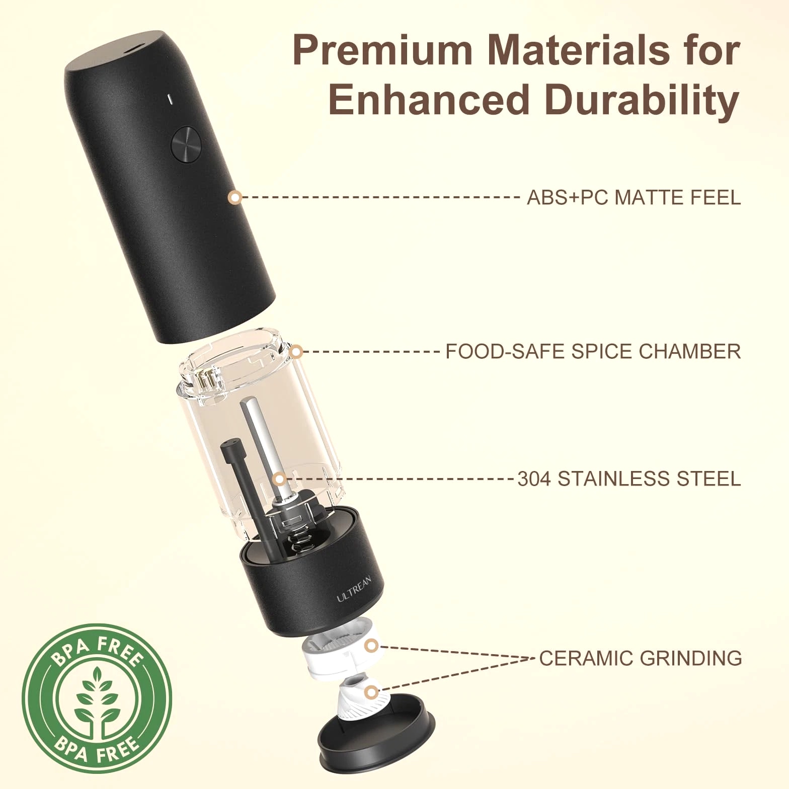 Electric Salt and Pepper Grinder Set - 2 Pack Rechargeable Salt & Pepper Mill