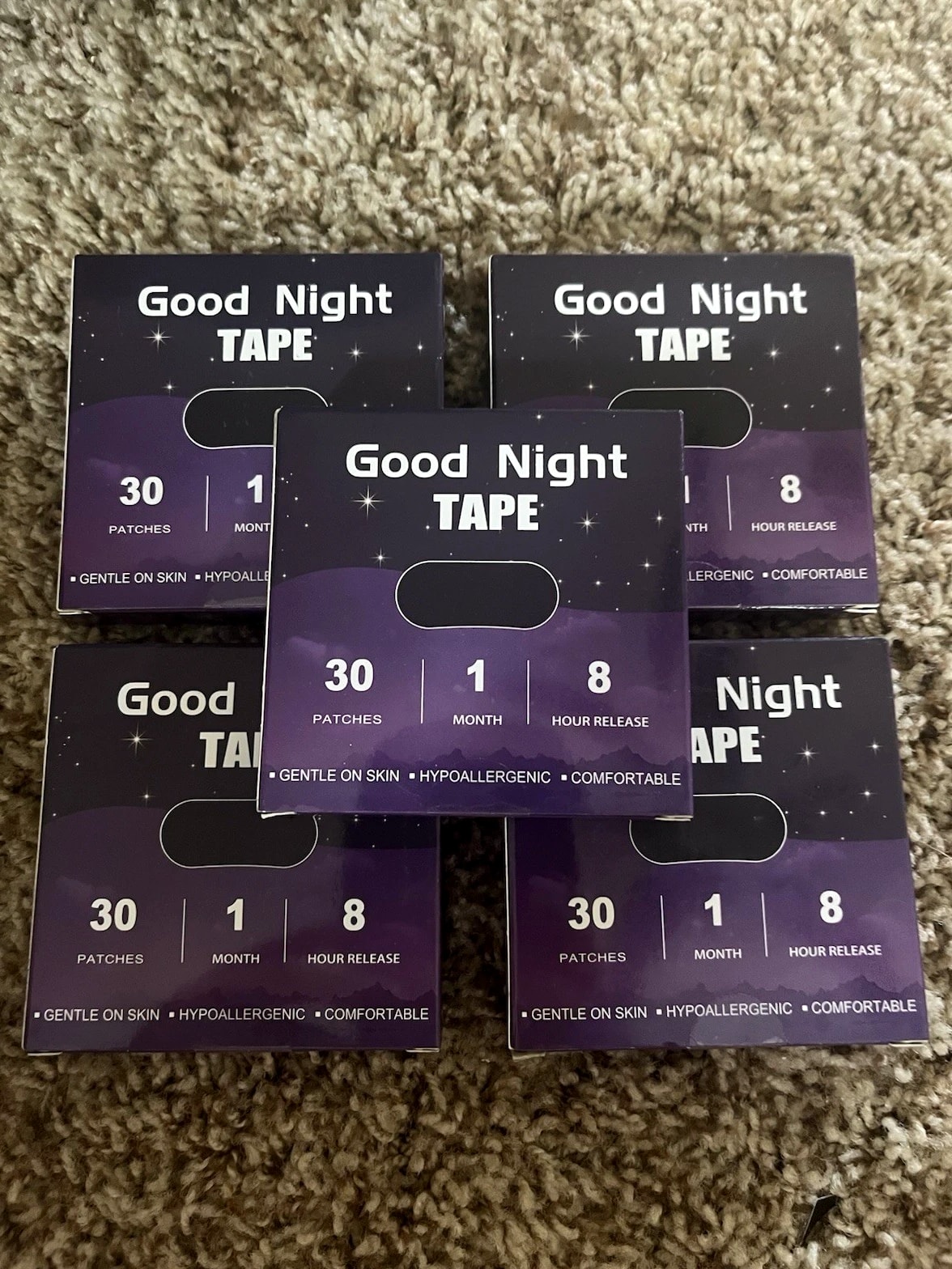 Good Night Tape 8 Hour Release 30 Patches Per Box - Gentle on Mouth - 5 Packs. 150 patches total