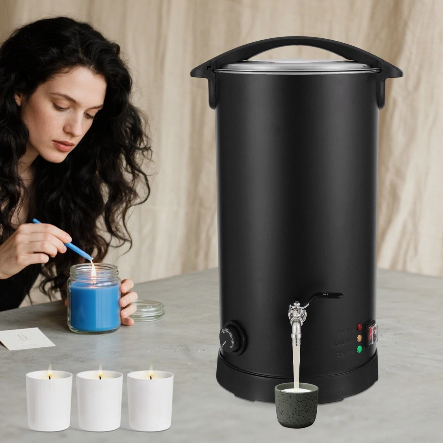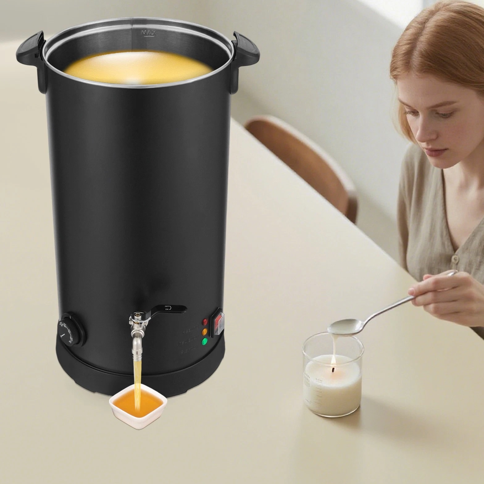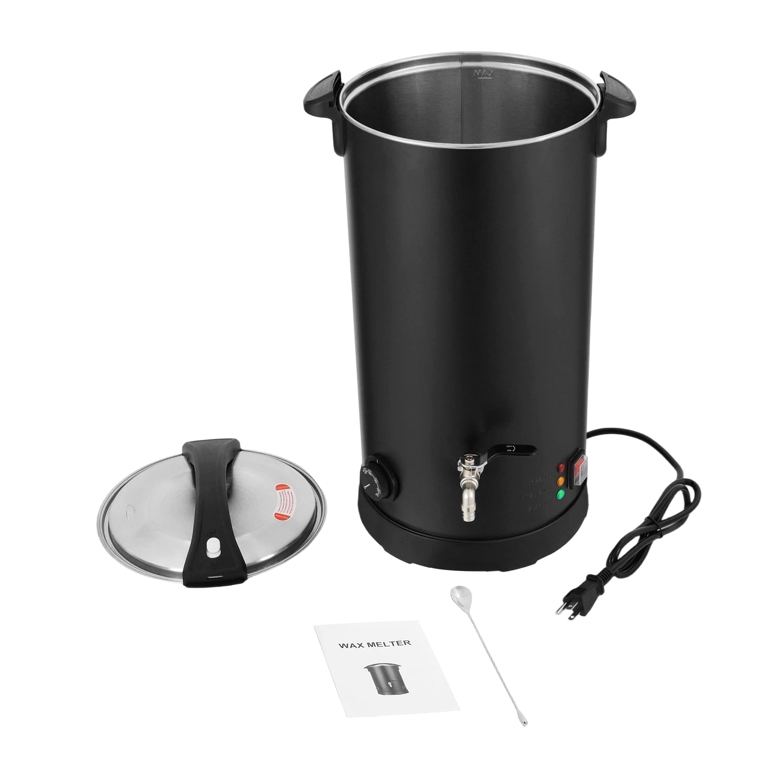 Wax Melter Kits 15L Melting Pot Machine Sets for Candle Making, Home DIY, Beauty Description This wax melter is a practical tool designed to simplify wax-melting tasks for both personal and small-scale professional use. It combines efficiency, versatility, and user-friendliness to meet diverse needs—whether you're crafting candles or working on DIY wax projects. Its adaptability to different wax types also makes it a reliable go-to, fitting into various workflows. Meet your new wax-melting bestie! This little helper makes working with wax super simple and seriously fun—whether you're crafting cozy candles at home or diving into creative DIY projects. It loves various kinds of wax and fits well into your creative flow, so you can bring those lovely ideas to life without the fuss. Key Features Built to Last: Made of stainless steel with a spray-painted finish, this product stays in good working condition for years, reducing the need for frequent replacements and offering long-term value. Sturdy and Enduring: Crafted from stainless steel with a spray-painted exterior, this wax melter stays looking great and working smoothly year after year, so you can create to your heart's content without worry! Ample Capacity: Boasting a 3.96-gallon capacity and the ability to melt up to 30.86 lbs of wax in one go, this product's spacious design eliminates frequent refilling to save time and maintain a smooth workflow, ensuring efficient melting every time. Big & Mighty: With a 3.96-gallon space and the ability to melt up to 30.86 lbs of wax at once, this design minimizes refills, saving time and keeping your workflow efficient. Smooth Flow: The bottom-positioned wax outlet ensures wax flows out smoothly and completely, minimizing residue left in the machine and avoiding clogs that could disrupt use, making dispensing into the container easy. Clean Dispensing: The cleverly positioned bottom outlet lets wax glide out smoothly and completely, so you get neat dispensing into the container.