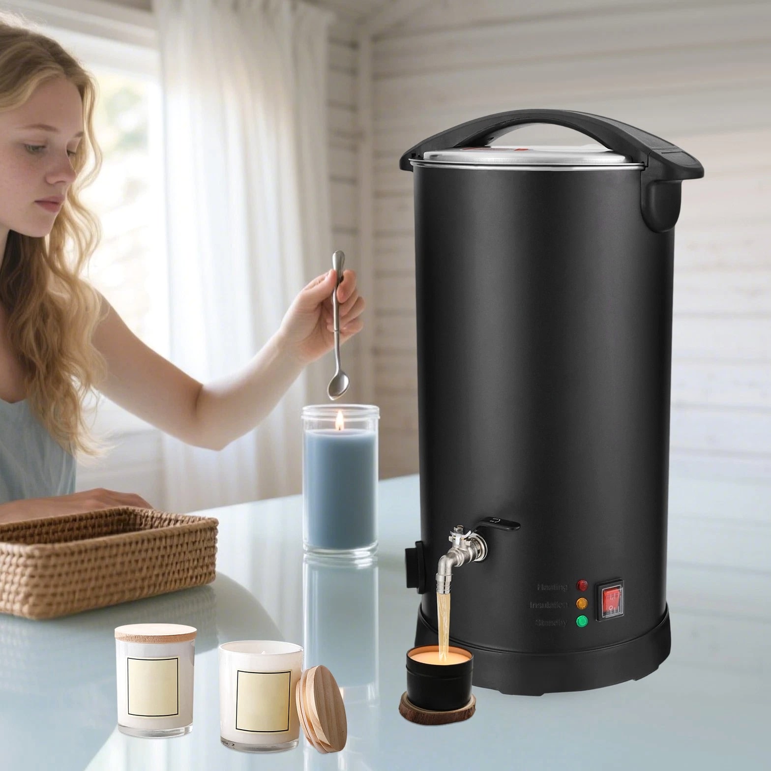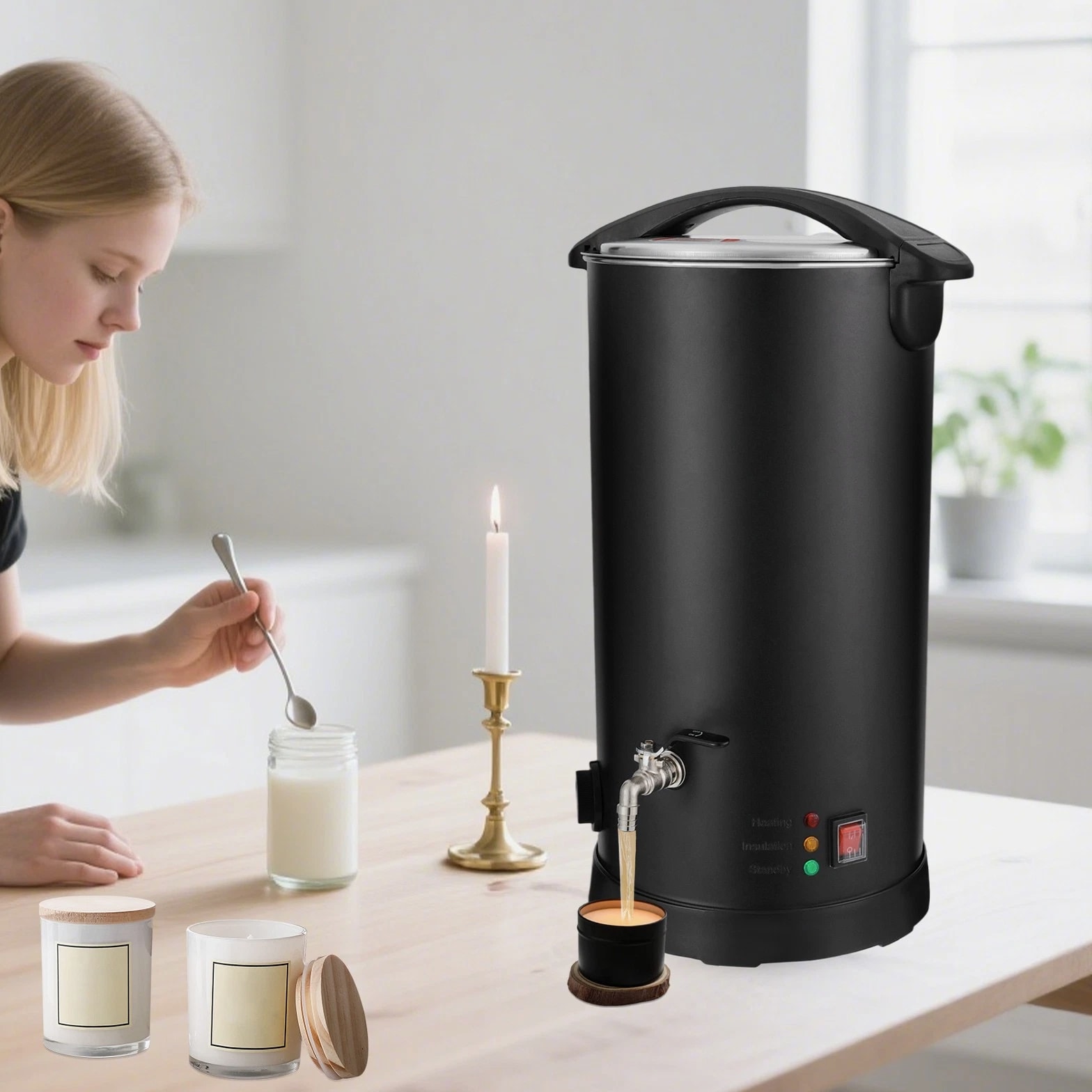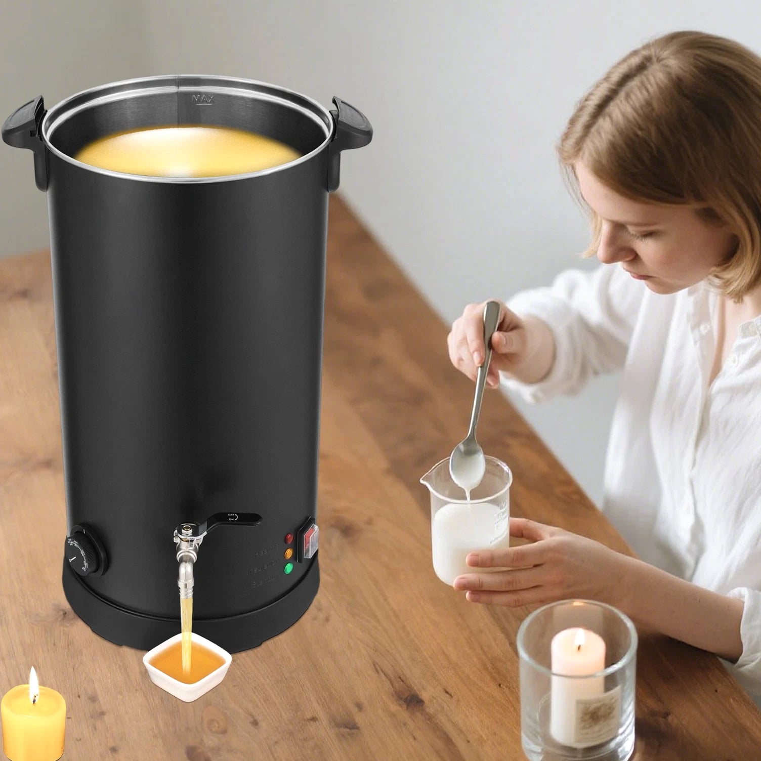 Wax Melter Kits 15L Melting Pot Machine Sets for Candle Making, Home DIY, Beauty Description This wax melter is a practical tool designed to simplify wax-melting tasks for both personal and small-scale professional use. It combines efficiency, versatility, and user-friendliness to meet diverse needs—whether you're crafting candles or working on DIY wax projects. Its adaptability to different wax types also makes it a reliable go-to, fitting into various workflows. Meet your new wax-melting bestie! This little helper makes working with wax super simple and seriously fun—whether you're crafting cozy candles at home or diving into creative DIY projects. It loves various kinds of wax and fits well into your creative flow, so you can bring those lovely ideas to life without the fuss. Key Features Built to Last: Made of stainless steel with a spray-painted finish, this product stays in good working condition for years, reducing the need for frequent replacements and offering long-term value. Sturdy and Enduring: Crafted from stainless steel with a spray-painted exterior, this wax melter stays looking great and working smoothly year after year, so you can create to your heart's content without worry! Ample Capacity: Boasting a 3.96-gallon capacity and the ability to melt up to 30.86 lbs of wax in one go, this product's spacious design eliminates frequent refilling to save time and maintain a smooth workflow, ensuring efficient melting every time. Big & Mighty: With a 3.96-gallon space and the ability to melt up to 30.86 lbs of wax at once, this design minimizes refills, saving time and keeping your workflow efficient. Smooth Flow: The bottom-positioned wax outlet ensures wax flows out smoothly and completely, minimizing residue left in the machine and avoiding clogs that could disrupt use, making dispensing into the container easy. Clean Dispensing: The cleverly positioned bottom outlet lets wax glide out smoothly and completely, so you get neat dispensing into the container.