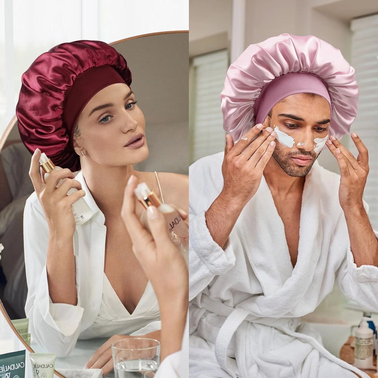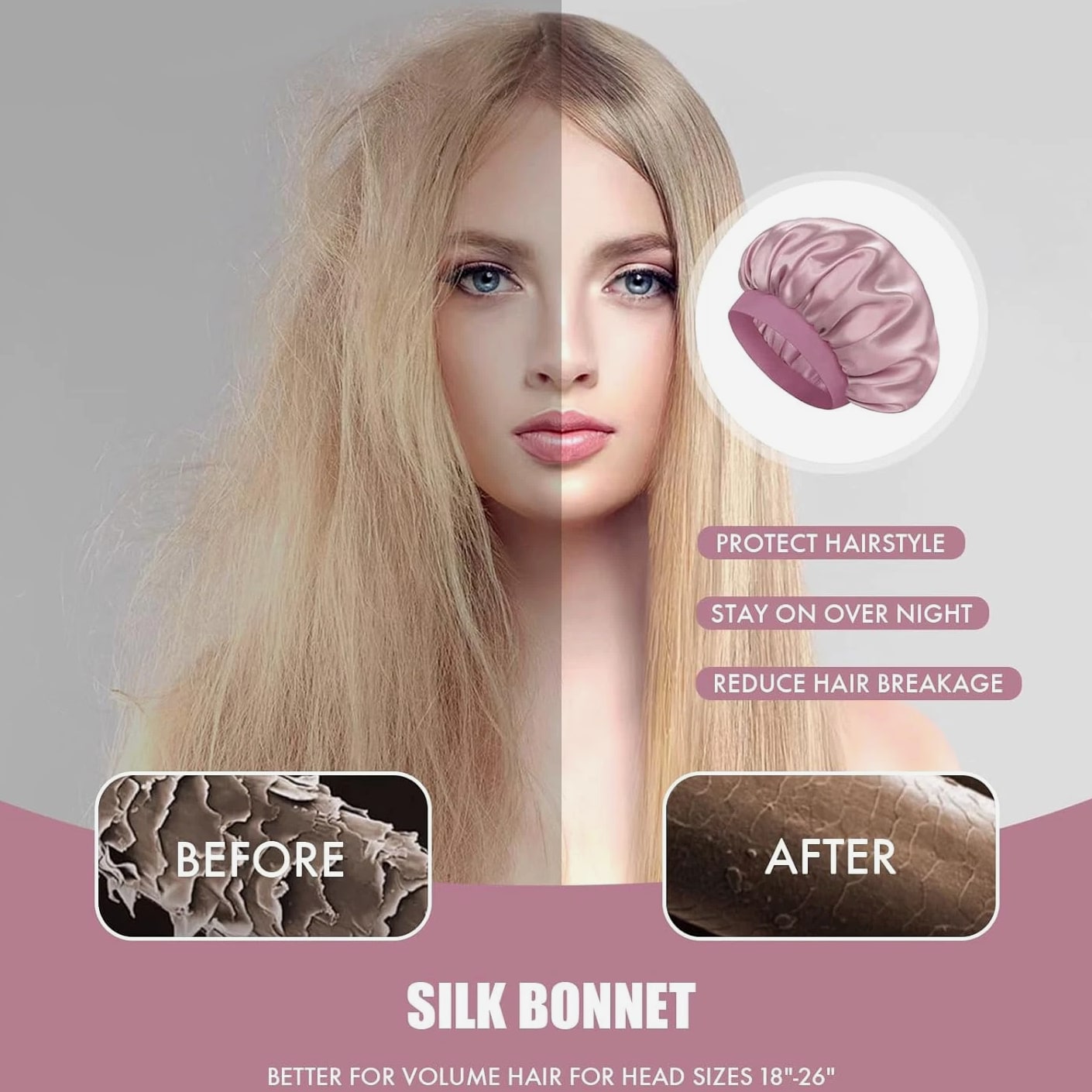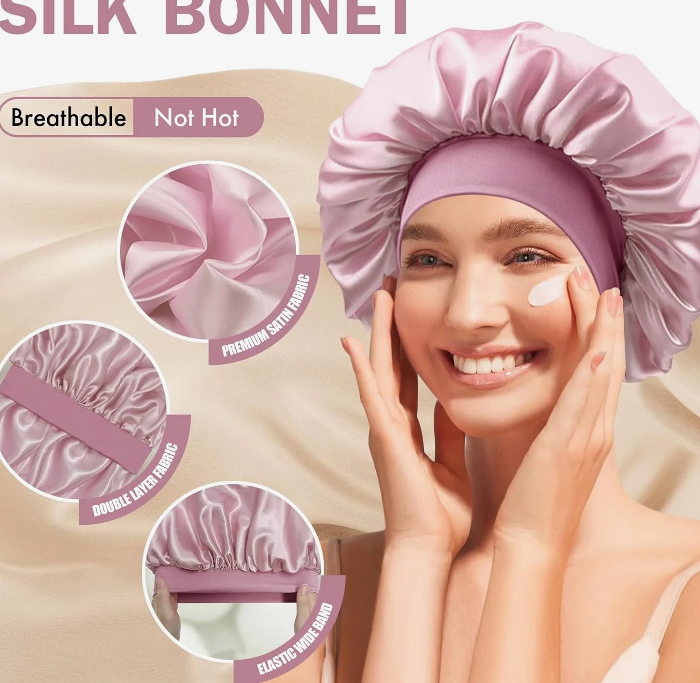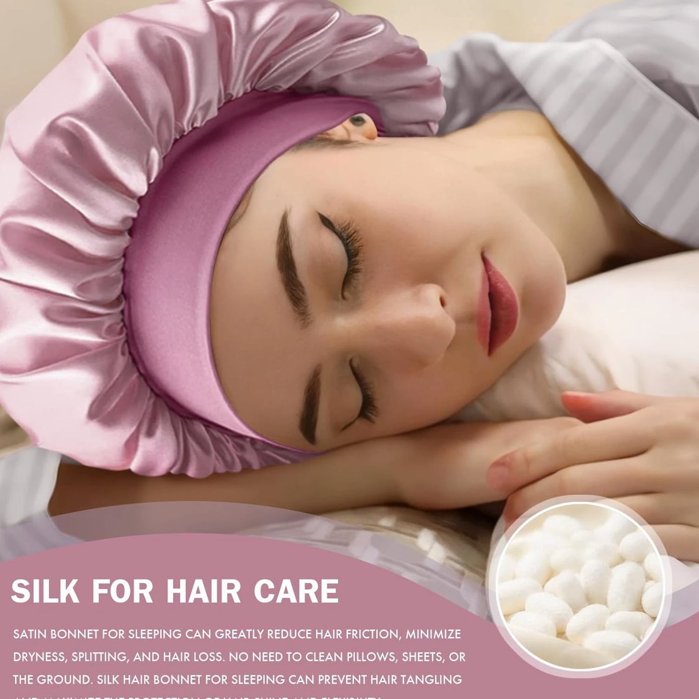 Satin Silk Bonnet for Sleeping, Double Layer Silk Sleep Cap, Soft Satin Lined