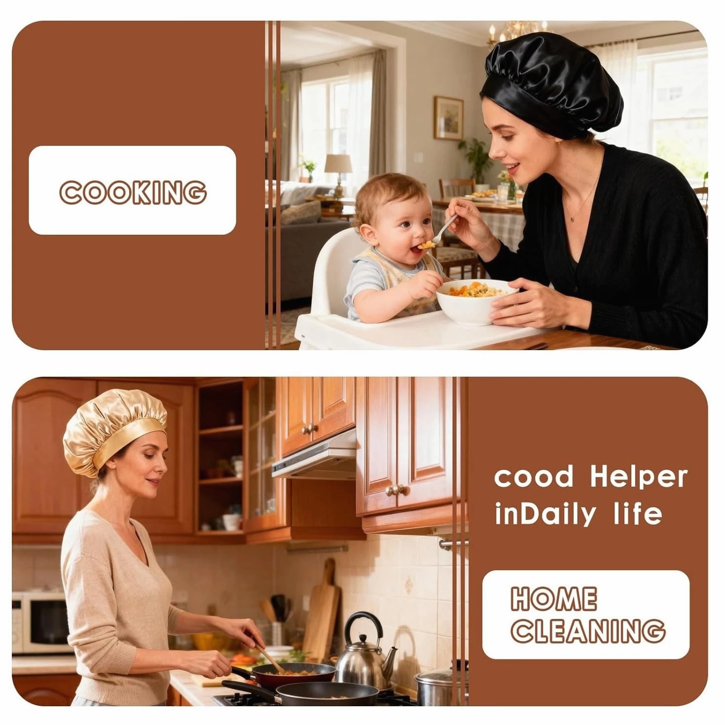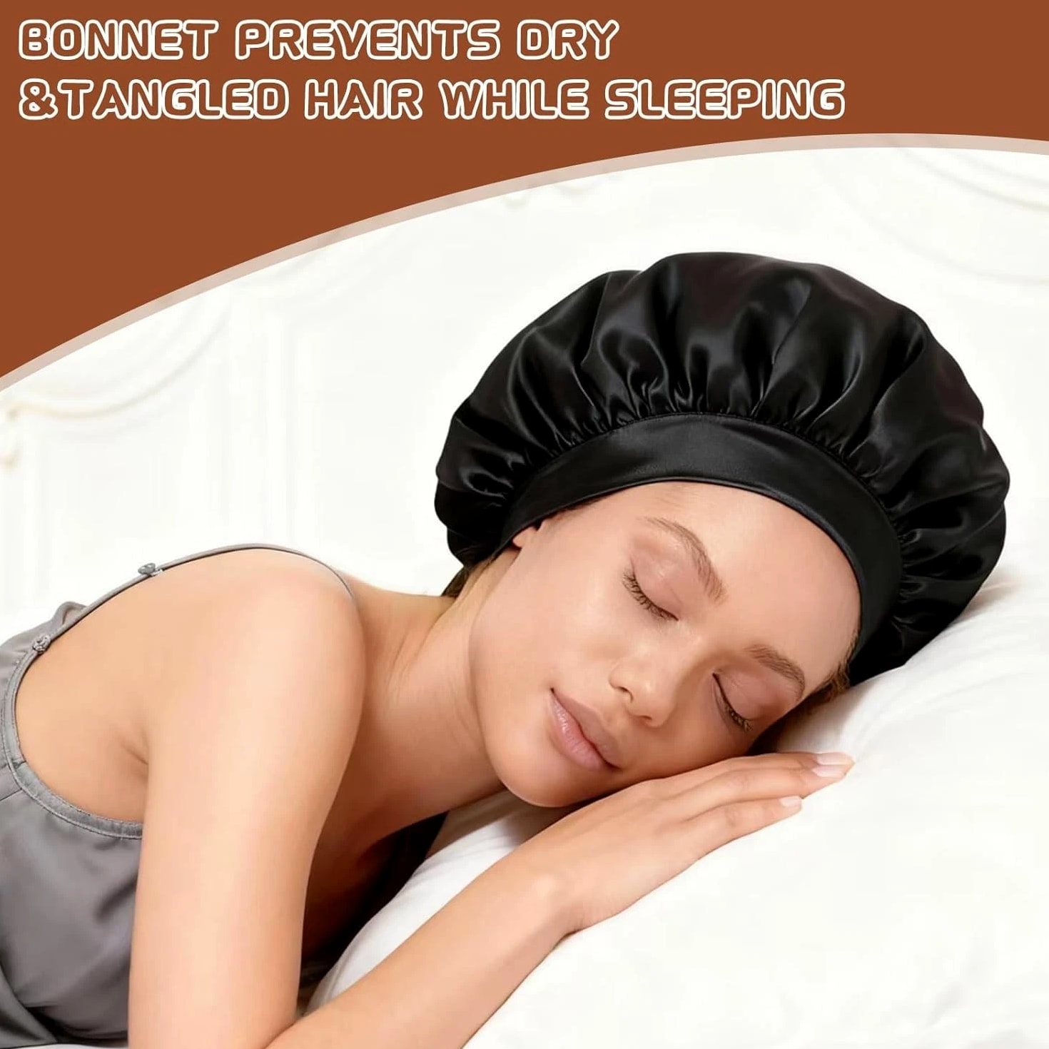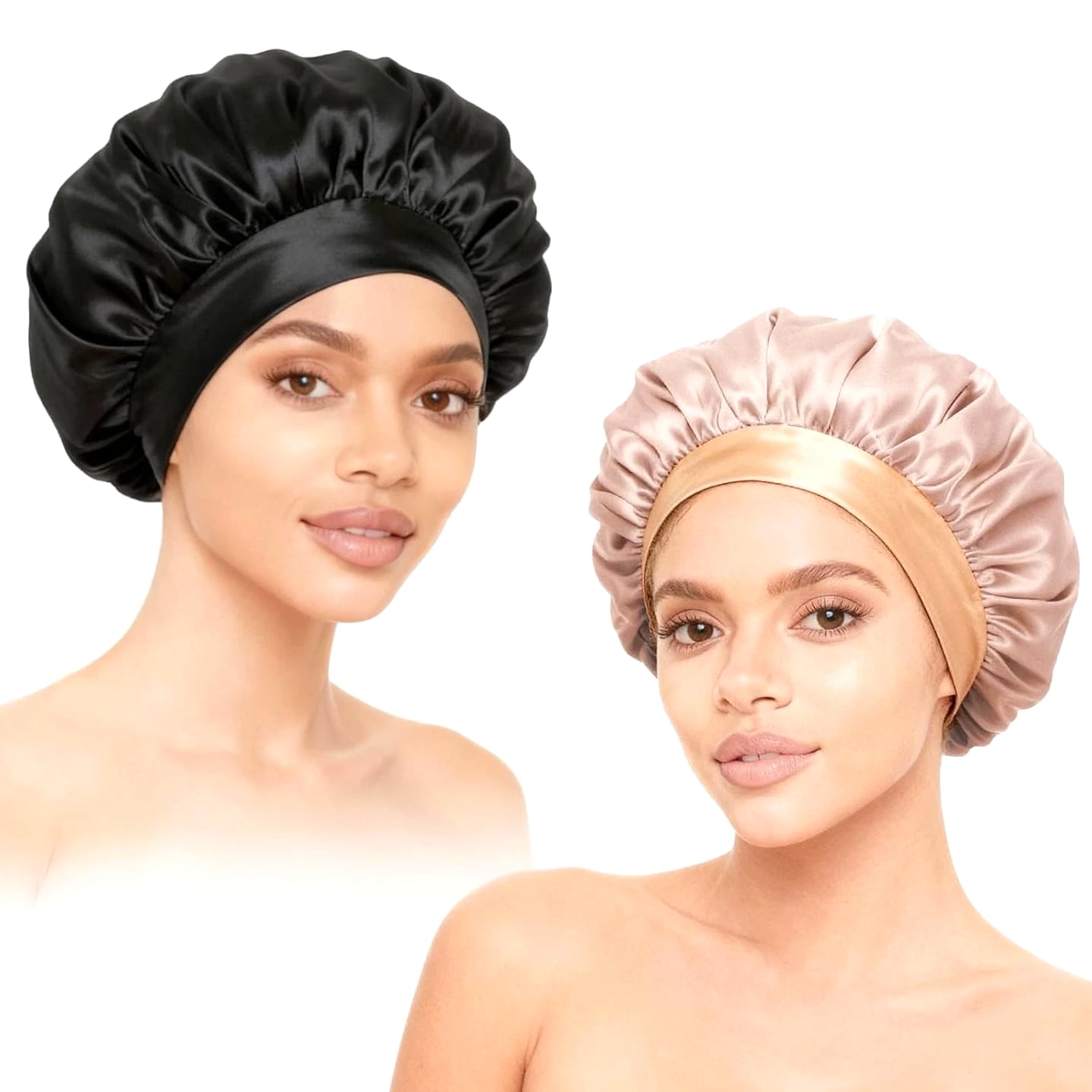 About This Item: This Silk Bonnet For Hair Is Made Of High-quality Satin. The Touch Is Soft And Smooth, Bringing You The Ultimate Wearing Experience. Satin Bonnet For Women Will Not Slip Easily, And Let You Sleep All Night. Soft Elastic Band Will Not Leave Traces On Your Forehead. Benefits: Silk Sleep Caps Can Greatly Reduce The Friction Of The Hair, And reduce the dryness, breakage, and hair loss. Will Not Bleed On Proper Size: The Diameter Of This Silk Hair Wrap Is 12.6 Inches, And It Has A Soft Elastic Band, Which Is Almost Suitable For Heads Of All Sizes. Satin Bonnets Are Suitable For Curly Hair, Natural Hair, Long Hair, Braids, Weaves, Rollers, Hair Clamps, And Up-dos. The Improved Band Is Wider, Elastic, And Soft, And It Will Not Cause A Burden On Your Head. Daily Needs: Silk Bonnet Not Only A Bonnet For Sleeping, But Also Wearing When Washing, Beauty, Makeup, And Housework. As Well As 2 Colors The Product Includes: 2 pcs Silk Bonnet For Sleeping (Gold, Black).