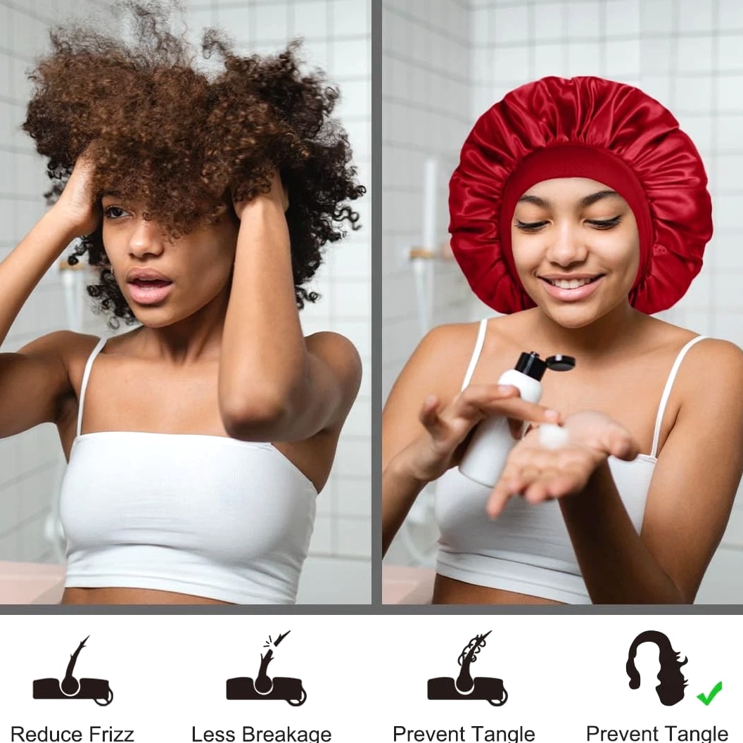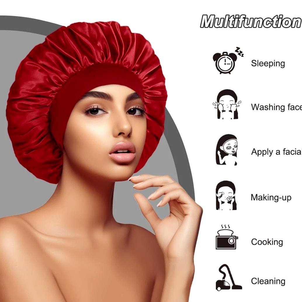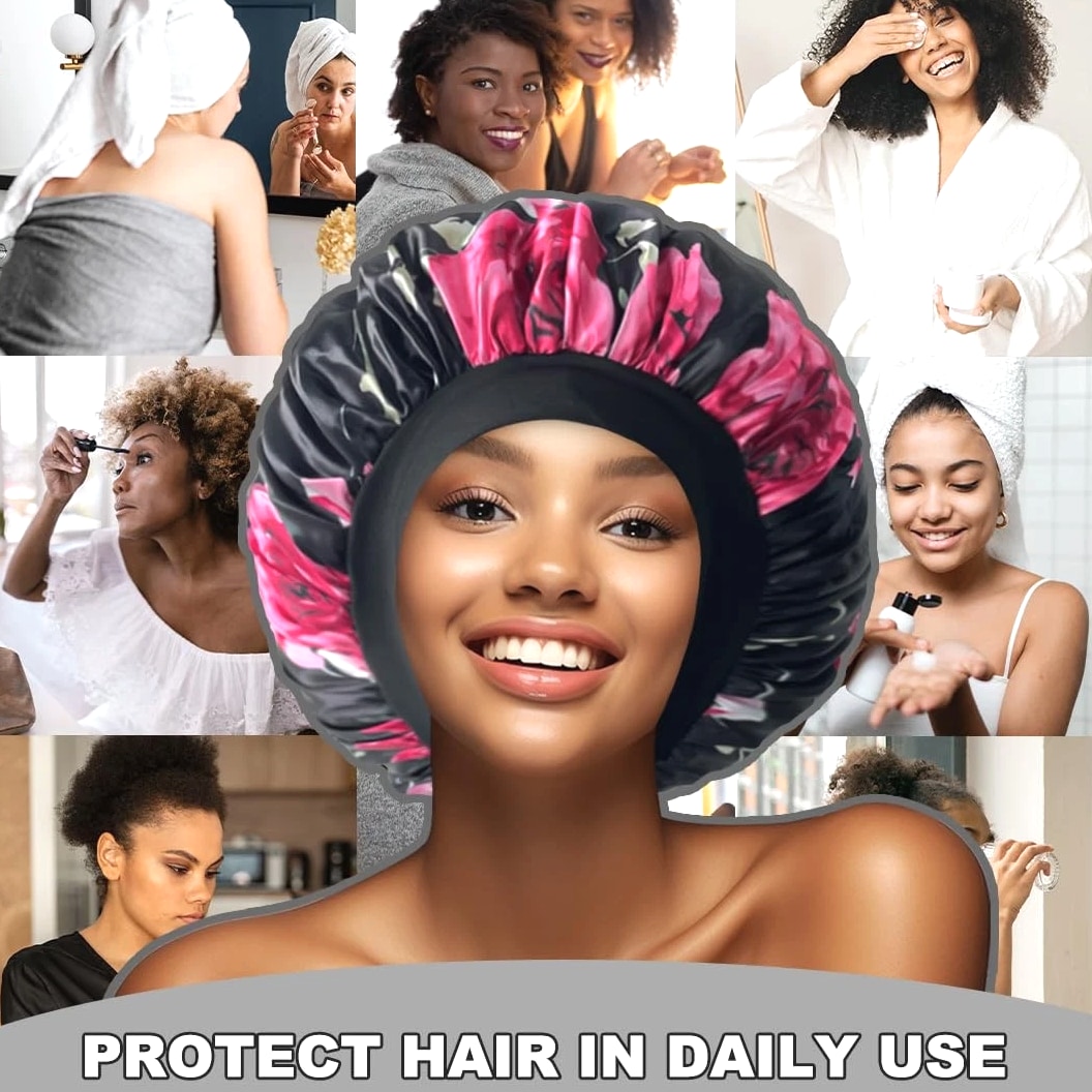 Satin Bonnet 2-Pack Silk Hair Bonnets Black Peacock Blue Pink