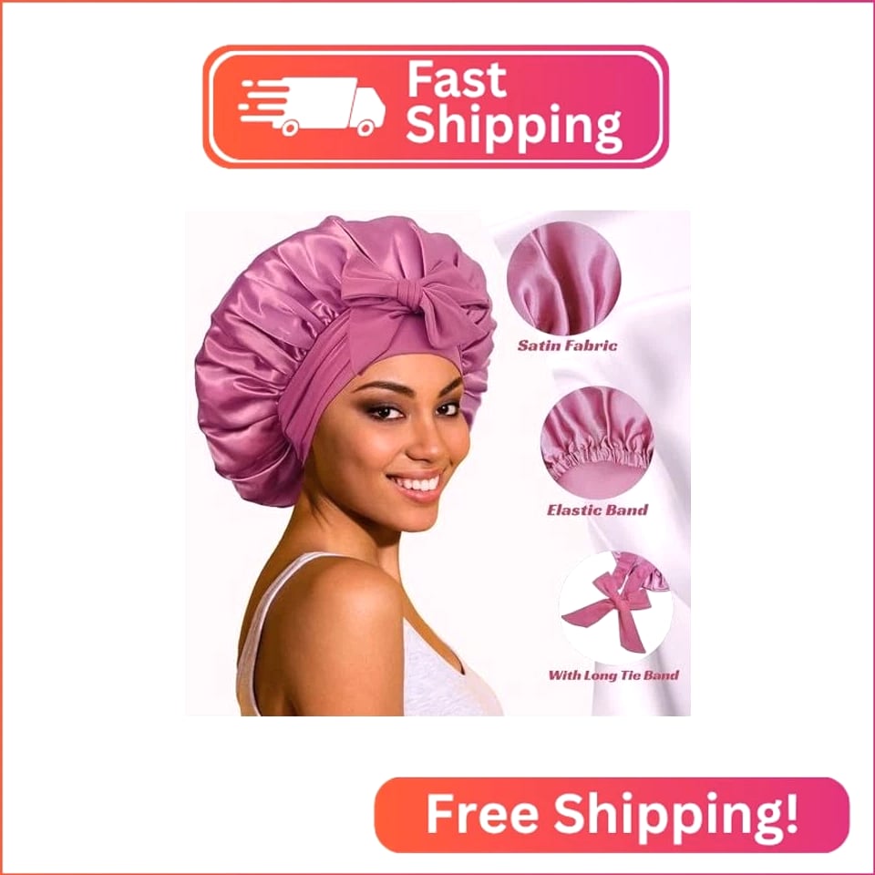 Bonnet with Tie Band, Satin Hair Silk Bonnet for Sleeping Women, Sleep Bonnets for Women, Double Layer Sleep Cap for Curly Hair Braids Bonnet with Tie Band: This silk bonnet for sleeping women features a long stretchy tie band that you can adjust to your needs, keeping it in place during sleep. You can also create a beautiful bow on your forehead or side, giving it a unique style. Double Layer Satin Lined: The satin bonnet for sleeping women has double layers of satin fabric, both sides smooth and silky. This Hair Cap is soft, skin-friendly, and breathable, maintaining your hair's moisture and shine while sleeping. Extra Large: This hair bonnet for curly hair has enough space to accommodate your hair, providing complete coverage for all hair types: big volume hair, long hair, curly hair, braids, locs, and more. Reversible Satin Bonnet: The silky sleep bonnets for women are crafted from two layers of high-quality satin, providing excellent protection. The reversible design enables the nightcap to be worn on both sides. Wide Use: The hair bonnets for women are perfect for everyday wear or special occasions like sleeping, doing housework, putting on makeup, skincare, or doing yoga.