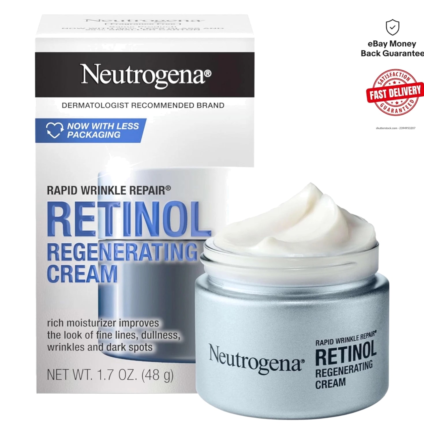 Hydrating Neutrogena Face Moisturizer with Retinol & Hyaluronic Acid, 1.7 oz Hydrating Face Moisturizer with Retinol & Hyaluronic Acid Size: 1.7 oz jar Key Benefits: Helps reverse 7 signs of visible skin aging based on the appearance of under-eye, cheek, and crow's feet wrinkles. Contains hyaluronic acid, providing plumping moisture that hydrates and rejuvenates your skin's appearance. Features an accelerated retinol complex that visibly renews skin texture, evens tone, and smooths fine lines. Clinically proven to smooth fine lines in one week and reduce wrinkles in just four weeks. Suitable for daily use; free of parabens, mineral oil, and dyes. Formulated to maximize results while minimizing irritation potential. Your Path to Timeless Beauty This exquisite face moisturizer is expertly crafted to deliver remarkable anti-aging benefits while ensuring your skin remains hydrated and radiant. With its unique blend of retinol and hyaluronic acid, you can experience: Revitalized, plump skin that glows with youthfulness. Smoother texture and a more even tone for a refined appearance. Enhanced skin resilience and reduced visibility of dark spots. Why Choose Our Hydrating Face Moisturizer? Rediscover your skin's vitality with a product that stands out in the realm of luxury skincare. This Moisturizer not only hydrates but also provides a powerful solution to combat fine lines and wrinkles. The carefully curated ingredients work in harmony to ensure your skin remains youthful and lustrous, making it a must-have for any beauty enthusiast. Unlock the secret to ageless beauty — add the Hydrating Face Moisturizer with Retinol & Hyaluronic Acid to your skincare routine today!