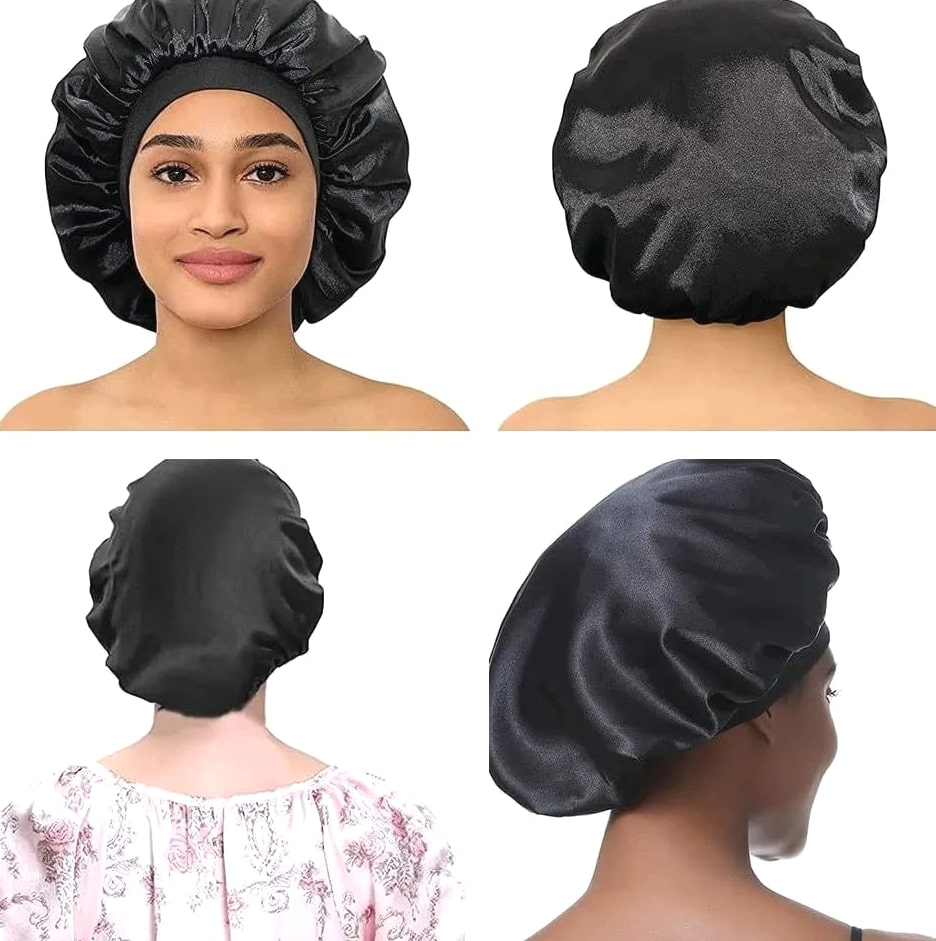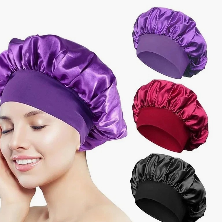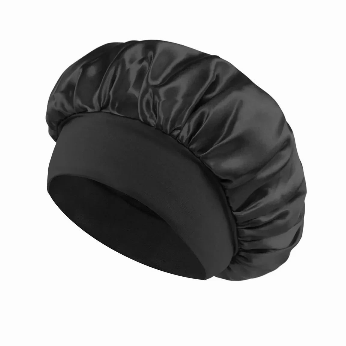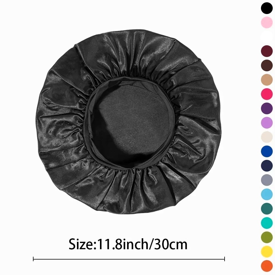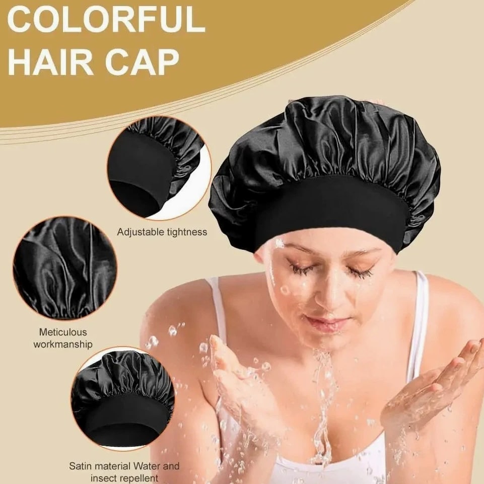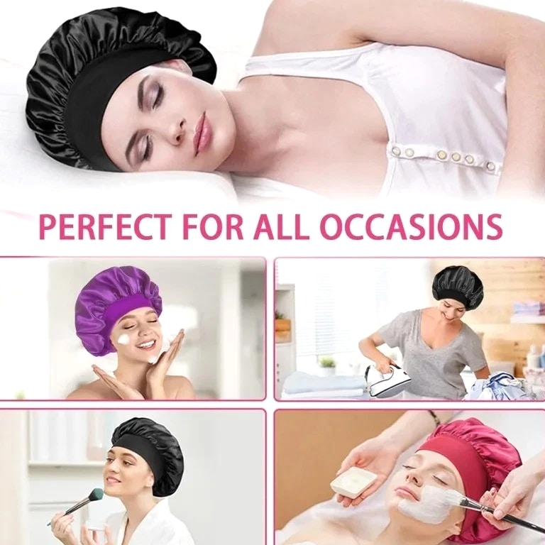 Silk Satin Sleep Bonnet – Soft Elastic Wide Band Hair Cap for Women (Night Hair Care) Protect your hair during sleep with this luxury silk bonnet, designed to minimize frizz, lock in moisture, and maintain your hairstyle through the night. Comfortable, stylish, and ideal for everyday use. Specifications Product Type: Silk Sleep Bonnet / Hair Cap Material: Rayon, Silk, Polyester Fabric Name: Polyester (Soft Satin Finish) Gender: Women Department: Adult Style: Casual / Literary Retro Top Style: Dome Size: One Size Fits All Feature: Multifunctional, Breathable, Quick-Drying Season: All Seasons High-Concern Chemicals: None Origin: Mainland United States Key Features Soft silk/satin material reduces hair breakage and frizz Wide elastic band provides secure, comfortable fit Retains hair moisture and protects hairstyles overnight Breathable and lightweight for all-night comfort Works with all hair types (curly, straight, braided, etc.) Stylish solid color design for everyday wear Benefits Prevents dryness and split ends Keeps hair smooth and free of tangles Perfect for sleeping, relaxing, or home activities Can be used during skincare routines or light outdoor wear Package Includes 1x Silk Sleep Bonnet Description A must-have accessory for women wanting healthy, smooth, well-protected hair. Designed with comfort and style, this silk bonnet suits nightly use and beyond.