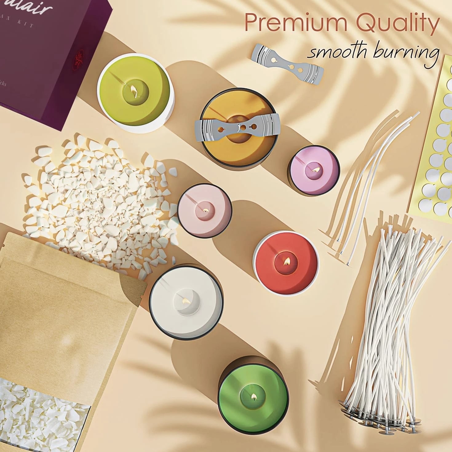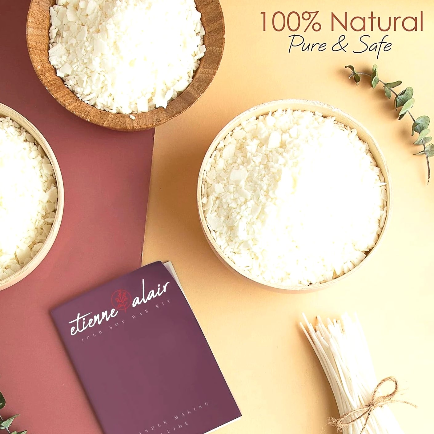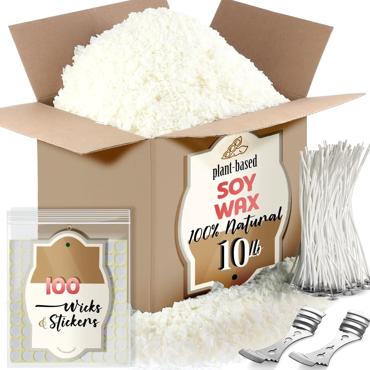 All-In-One Starter Kit – Everything you need to begin candle making! Our Etienne Alair soy candle wax for candle making includes 10 lbs of smooth soy wax flakes, 100 cotton wicks, 100 adhesive stickers, and 2 centering tools. Perfect for beginners or seasoned DIYers. Super Easy to Use – No messy blocks or confusing steps — our flakes melt quickly and smoothly. Just heat to 160°F using a microwave, wax melter, or double boiler; add your favorite fragrance and color, then pour into your container or mold. So simple! Strong Scent & Custom Colors – Designed for maximum fragrance load of 10% (1.6 oz per pound), our wax for candles holds scent beautifully for long-lasting aroma. Pair with candle-safe dyes for bold, even color and clean-burning candles every time. Clean, Safe & Eco-Friendly – Free from paraffin, additives, and animal products, our soy wax for candle making is non-toxic and sustainably sourced. With a low melting point of 115–121°F, it's safe and easy to work with — great for solo projects or candle making wax parties. A Thoughtful DIY Gift Idea – Whether you're gifting the kit or your homemade candles, this is a perfect pick for holidays, birthdays, housewarmings, or creative nights in. Make it personal, make it smell amazing!