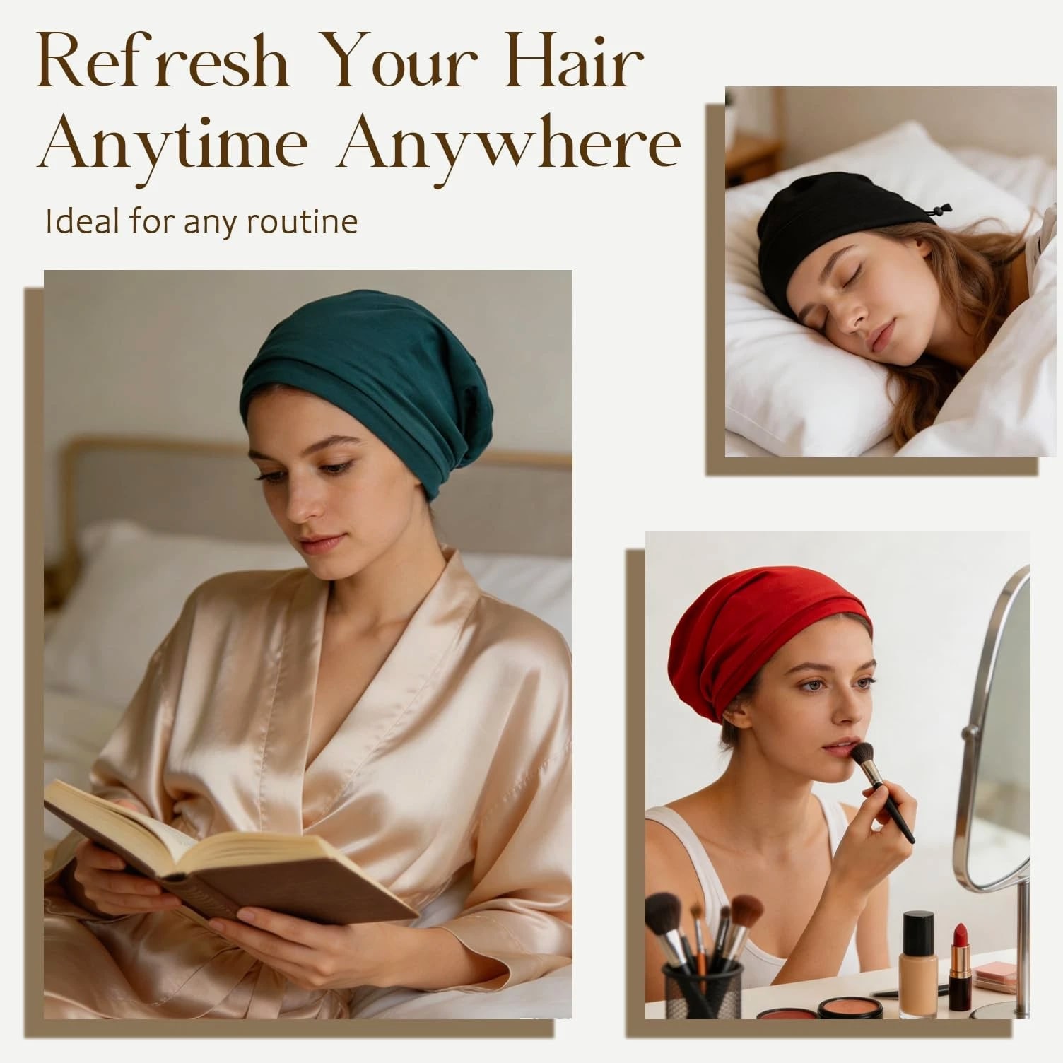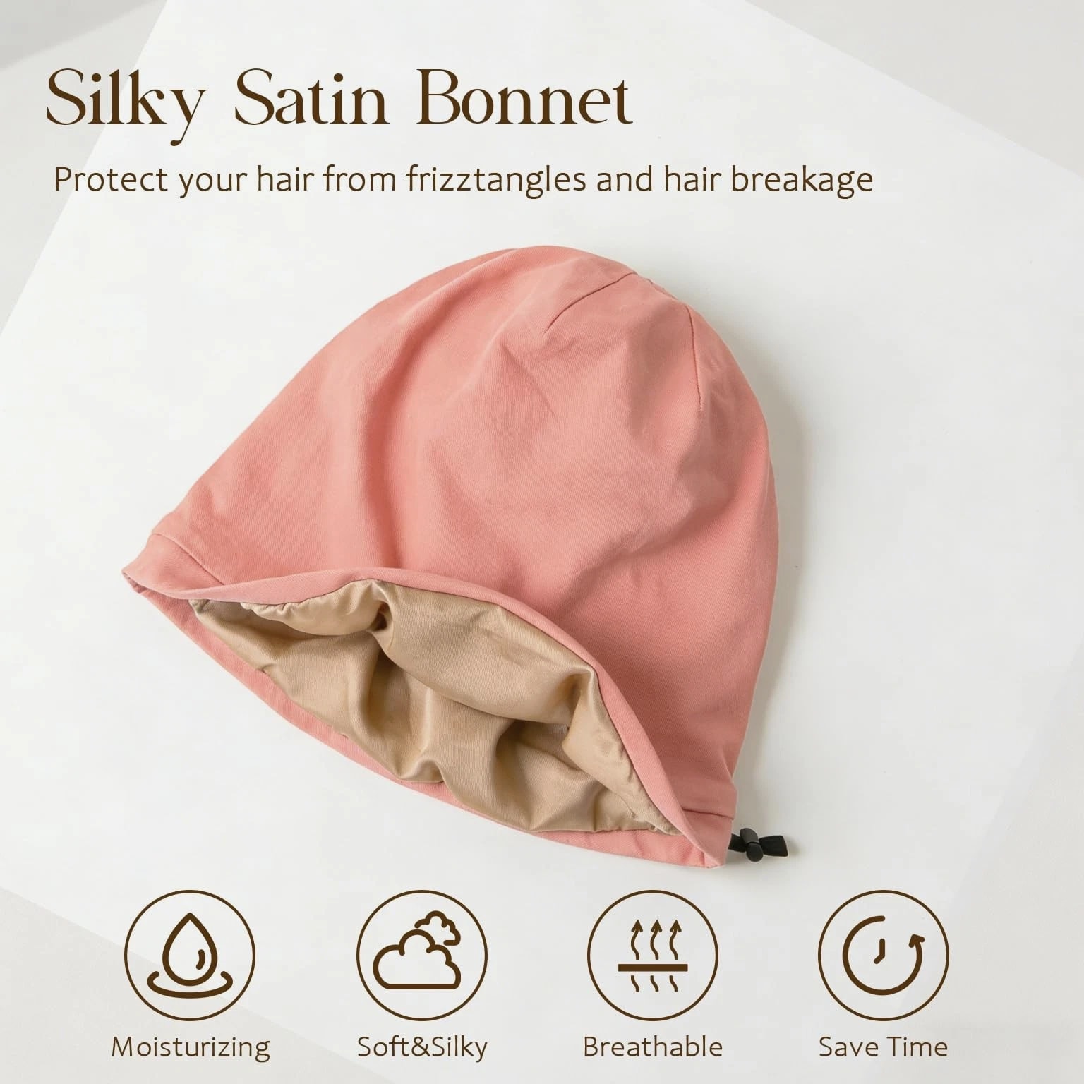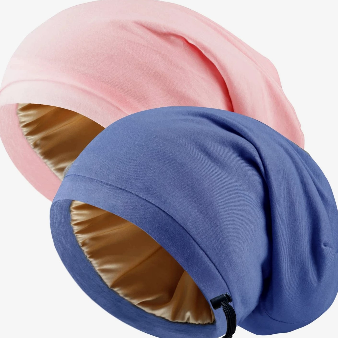 NICPOO Silk Satin Bonnet Hair Wrap for Sleeping, 2 Pcs Medium - Blue & Pink Product Details 【Easier to Take Care of Your Hair】Satin silk bonnet used to fix the hair and reduce hair loss caused by external static electricity and friction. It's worth using in all seasons. The satin bonnet is soft and breathable but not waterproof. Please don't use the silk bonnet as a shower cap for bathing. 【Size Adjustable】 Hidden adjustment straps inside can adjust the size, and the elastic adjustment straps can prevent it from falling off when sleeping, suitable for most people's head shapes [suitable for head circumference 54cm-62cm]. 【New Upgrade】High-quality fabric is newly upgraded, soft and comfortable; the silk cap is designed with a flat elastic band, which is comfortable to wear all night. Can be used on both sides for sleeping, makeup, face washing, cooking and yoga. 【Light and Breathable】The inner lining of the nightcap comprises high-density silk satin. The soft material protects your hair from external friction while keeping your hair clean and caring for it. Please rub the sleep cap gently when washing and let it dry naturally to avoid affecting further use. [Quality Assurance] If you have any questions or concerns during purchase or use, please contact us and we will do our best to assist you.
