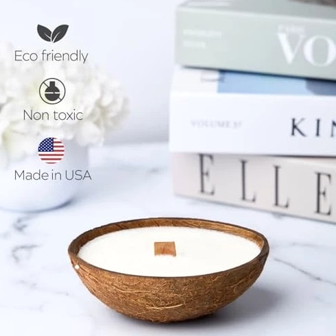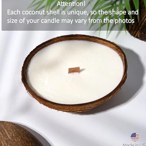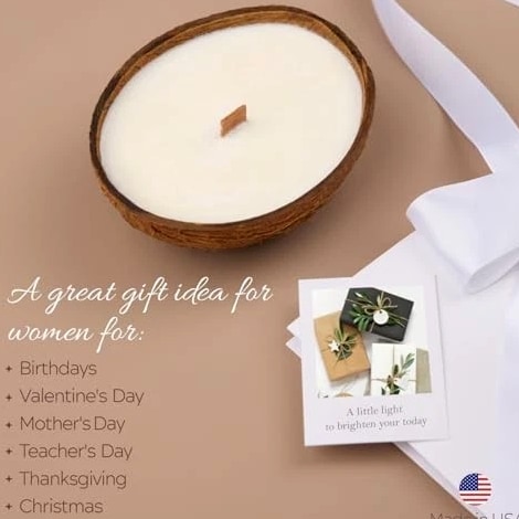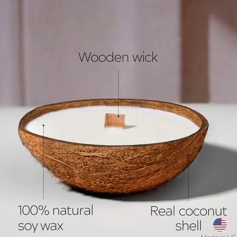 Scented Candles Clearance | Coconut Shell Soy Wax Candle with Wooden Wick | Candles for Home Décor | Gift Idea for Women Product Description Long-Lasting Burn Time — Up to 20 Hours of Cozy Ambiance. Each candle provides up to 20 hours of burn time, filling your space with a steady glow. Enjoy long-lasting fragrance and atmosphere with every use. Natural Soy Wax from U.S. Farms – Made from 100% soy wax sourced from American-grown soybeans. A cleaner, non-toxic alternative to paraffin, safe for your lungs and your home. Ideal for daily use and wellness rituals. Premium Aromatherapy Fragrance – Infused with luxurious scents that support mood elevation and stress relief. These small candles are perfect for spa setups, yoga sessions, or bedtime routines. Crackling Wooden Wick for Ambience – Features an eco-friendly wood wick that produces a soft crackling sound, bringing the comforting atmosphere of a fireplace into your living room or bathroom. Minimalist & Elegant Design – Thoughtfully crafted to blend seamlessly into boho, modern, or neutral interiors. These decorative candles add a soft, warm glow and style to any shelf, coffee table, or nightstand. Gift-Ready Candle Set – Beautifully packaged candles that make the perfect gift for birthdays, housewarmings, and special occasions like Christmas, Thanksgiving, Mother's Day, Valentine's Day, and Halloween. Suitable for women, men, or anyone who appreciates handmade home fragrance.