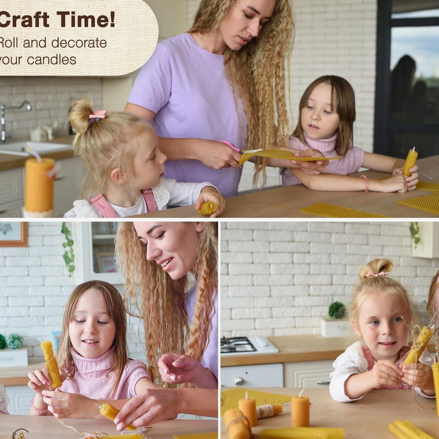 Beeswax DIY Candle Making Kit - Natural Rolling Kit for Beginners with 7 Sheets & Decorations