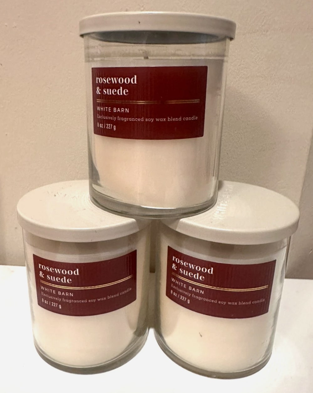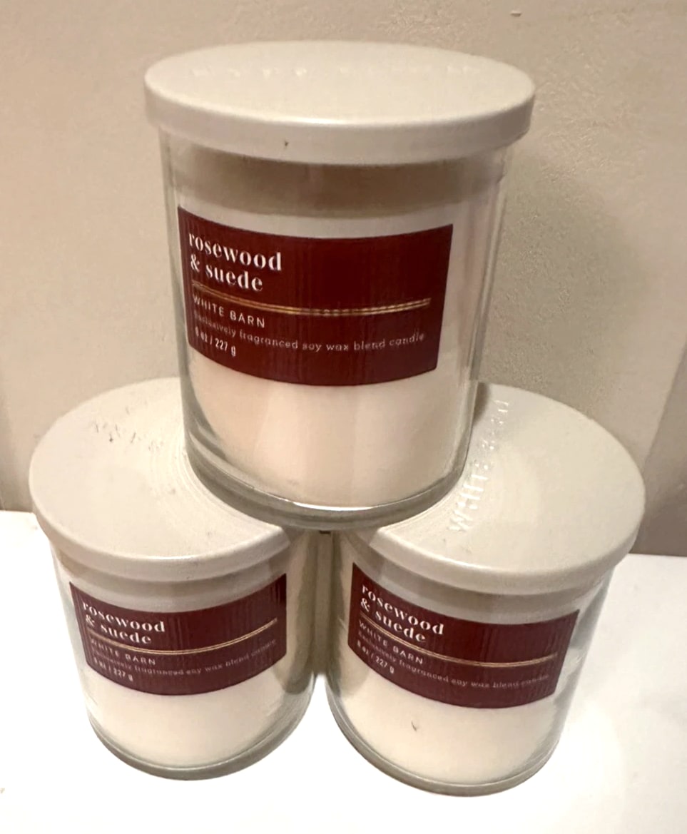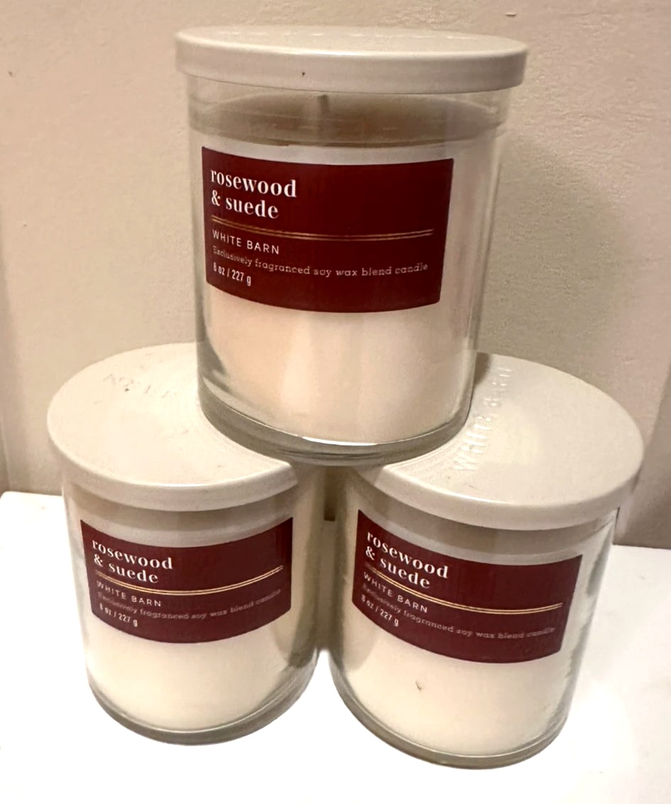 Bath & Body Works Rosewood & Suede Single Wick Candles - 8 oz (3 Candles)