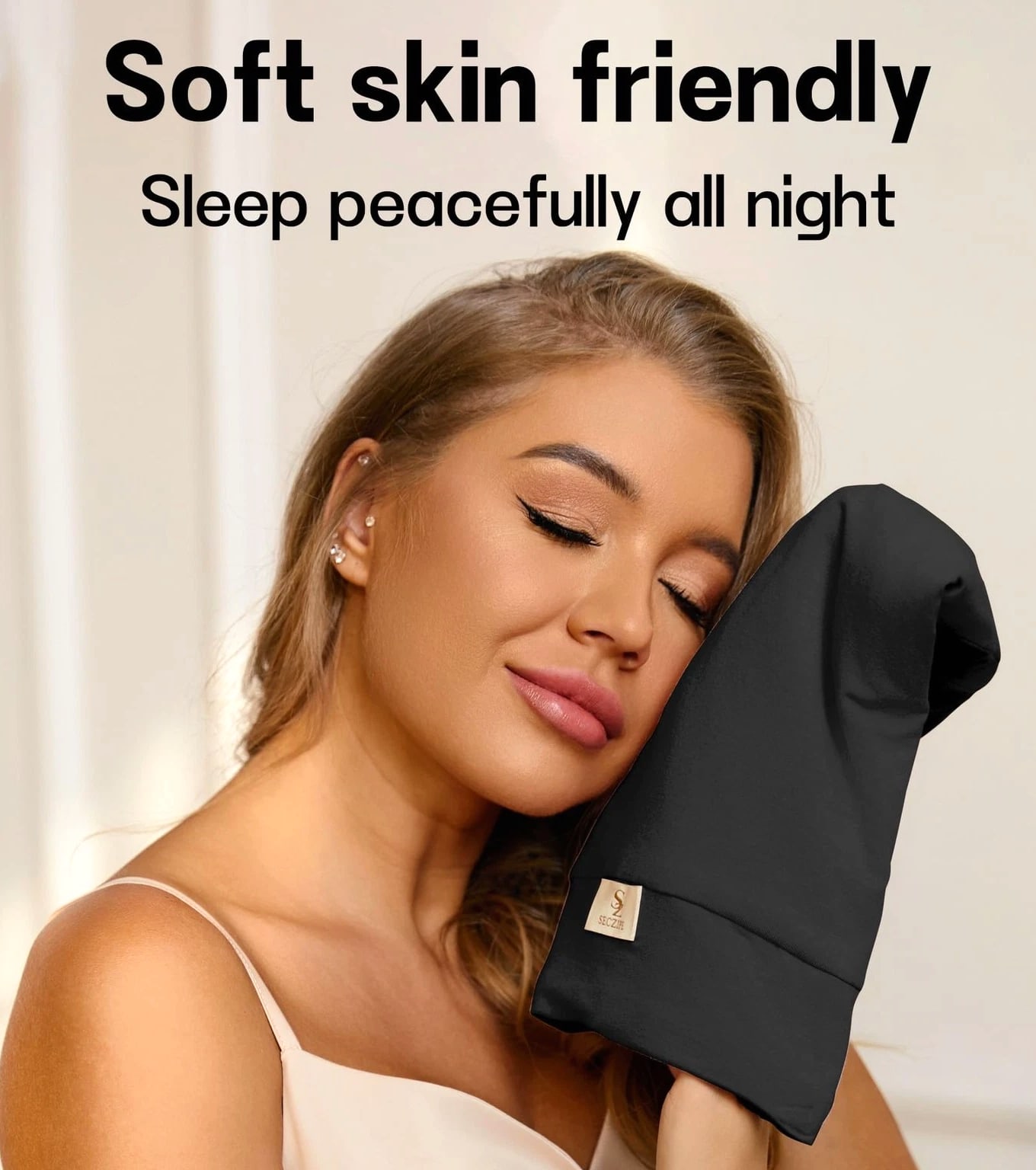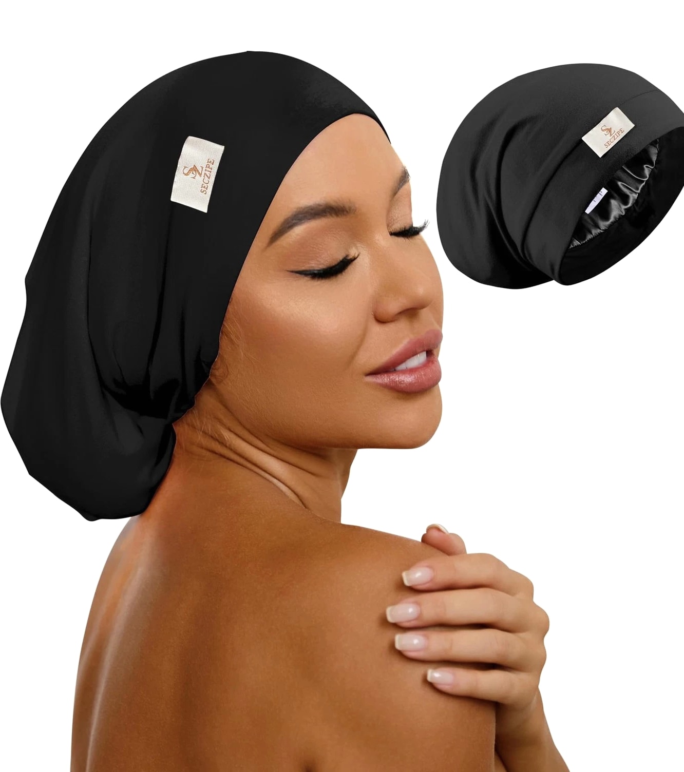SECZIPE 100% Mulberry Silk Bonnet for Sleeping Curly Hair, One Size Black