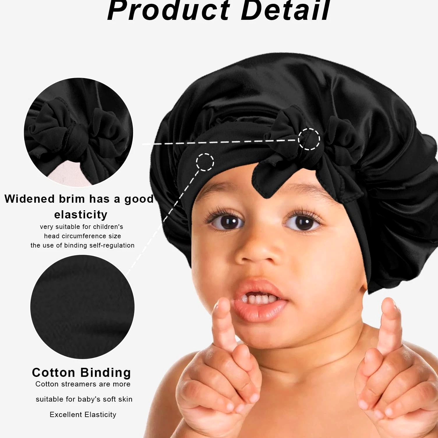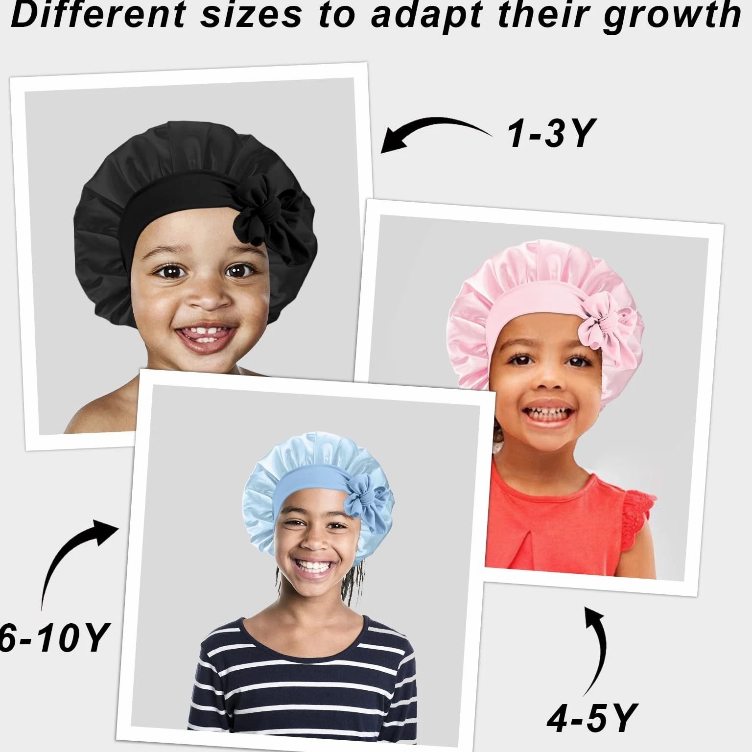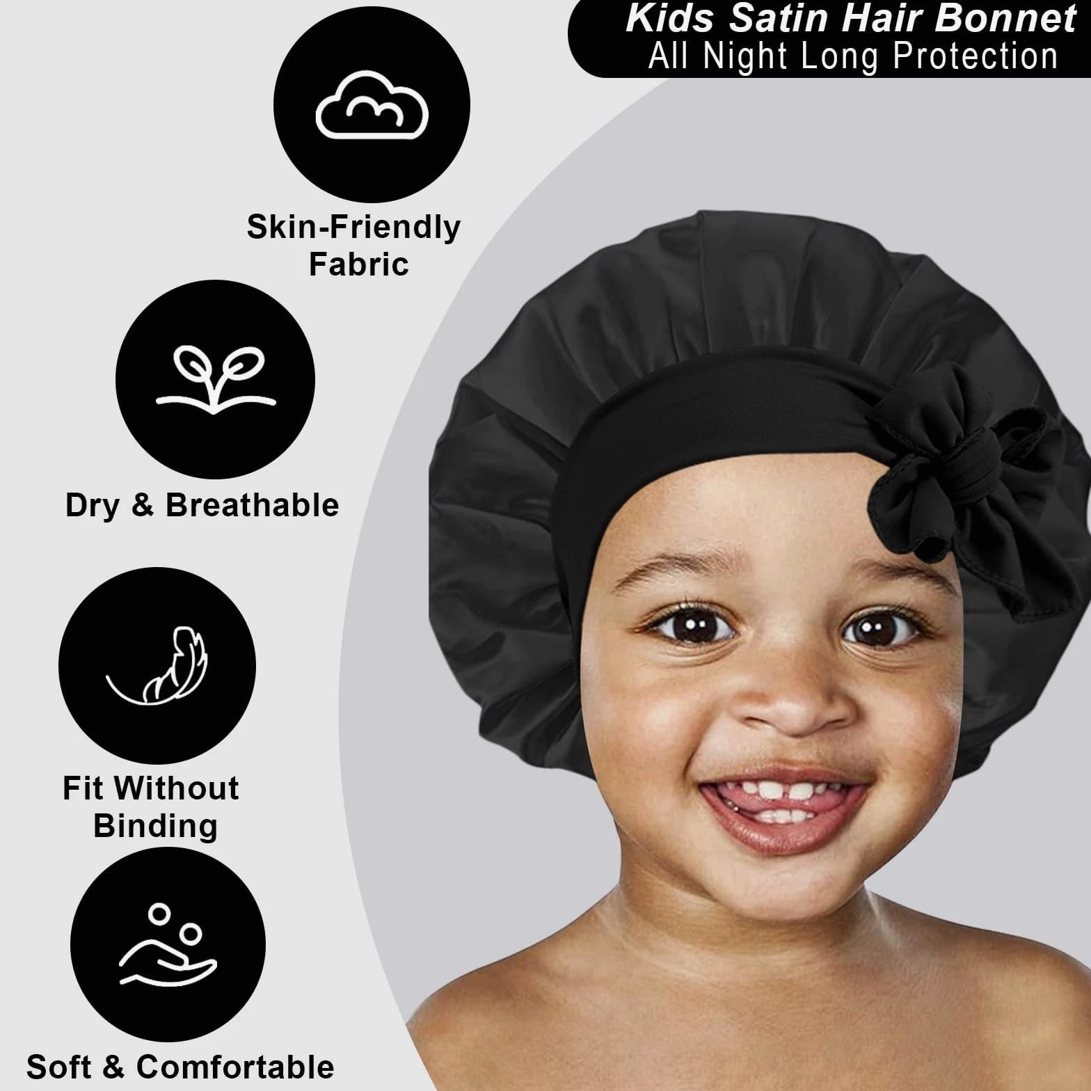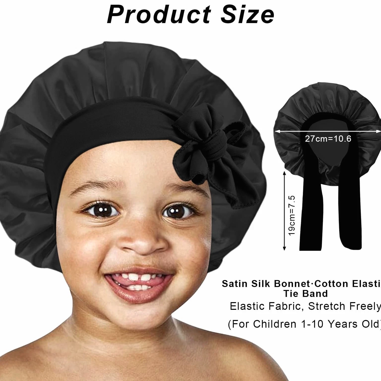 3 Pcs Kids Satin Bonnet for Sleeping - Baby Silk Bonnet for Sleep, Kids Hair Bonnets for Curly Hair Girls Boys with Wide Elastic Band, Sleeping Cap for Teens Toddler Child (Pink+Black+Light Blue) 【You Will Receive】- Package contains 3pcs in 3 colors Kids Satin Cap, colors pink, light blue, black, bright colors, deep children like, no additives, safe and environmentally friendly, hypoallergenic, more suitable for baby's physique, sufficient quantity allows you to use, change and share according to your preferences. High Quality Soft Satin Material:- Our silk baby hood is made of satin material, soft, shiny, smooth, like silk, breathable, lightweight, good elasticity, more suitable for babies, suitable for all seasons and occasions. Elastic Headband: The Kids Silk Caps are suitable for children aged 5-8. Equipped with baby hood, makes the sleeping hood suitable for most children's head sizes, easily wrap your hair with moderate tension, ties a lovely medium sized bow as needed to better protect your child's head, simple and practical, perfect for all hair lengths and thickness. Multifunction Use: This sleeping cap can not only be used to protect the scalp while sleeping at night, while the child is playing at home, bring dust to reduce contaminated skin, bathing time can help baby away from moisture, very practical. 【Satisfactory After-Sales Service】 - No matter what questions about the product, you can reach us at any time, we will give you a satisfactory answer within 24 hours. Please hand wash or machine wash in cold water with mild detergent, squeeze out excess water and then dry naturally.