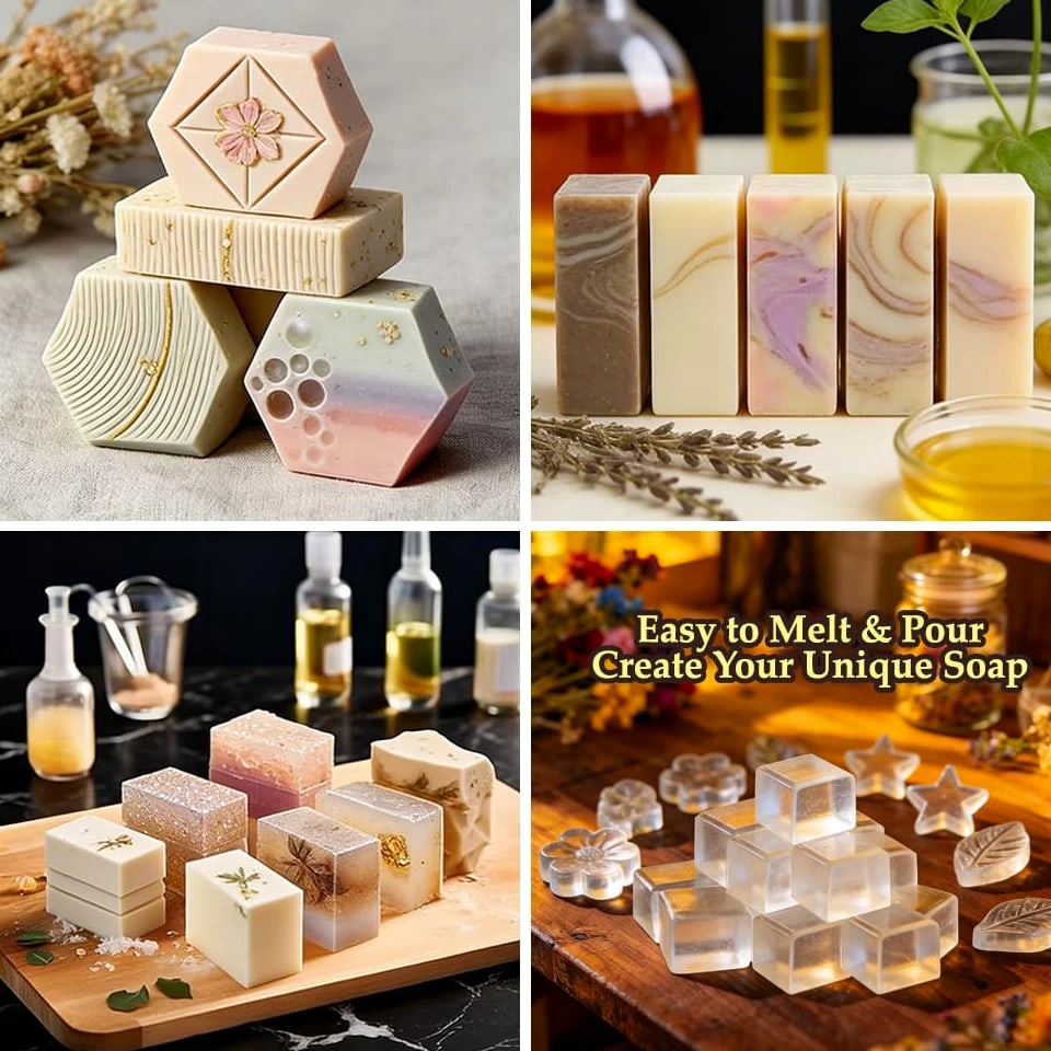 Glycerin Soap Base - SLS/SLES free, No Palm Oil, Organic Soap Base. Solid soap base for mixing and making a variety of new soaps. A new addition to your soap making supplies Easy to use: The textured surface of the soap body makes it easy to cut into small pieces, melt and shape to your preferred weight. The soap base used for soap making has no other irritating odors and is highly transparent. It will not interfere with the coloring you use or change the scent of the fragrances you use Custom Present: Who doesn't love receiving natural, handmade luxury gifts? Handmade soaps are easy to make and feature unique shapes, colors, scents and custom inserts Various options: Melt and pour honey soap base 10 lb, Honey soap base melt and pour 5 lbs, Shea butter soap base 2 lb, 5lb goats milk soap base, Clear soap base, Oatmeal soap base Product description When you are worry about gifts, choose our soap bases! Our natural melt and pour soap base is enriched with organic olive and coconut oils to deep clean, moisturize and create a rich lather. This glycerin clear soap base "melt and pour" blends perfectly with other soap bases, colors and scents. No palm oil, SLES, parabens or harsh ingredients! Glycerin soap is high in linoleic and oleic acids, which help balance oily skin and moisturize dry skin. Goat Milk Soap naturally helps promote collagen production. It helps minimize fine lines and wrinkles. Make precious family moments! Make delicious soaps with our color-stable, easy-to-remove bases. Enjoy good times while creating unique soap shapes. Moisturizing soap base If you have very sensitive and oily skin, choosing our soap base for melt and pour soap will give you a great experience! Clear Glycerin Soap Base for Soap Making Fully vegan, cruelty-free vegetable glycerin soap base. Available in clear, opaque and coloured. Melt and pour soap base Simply melt and add different colours and fragrances to the mixture to create custom soap bar at home. Put into your favourite moulds to c