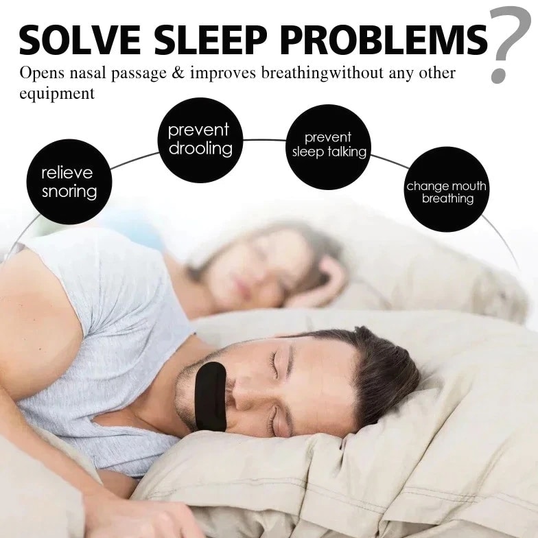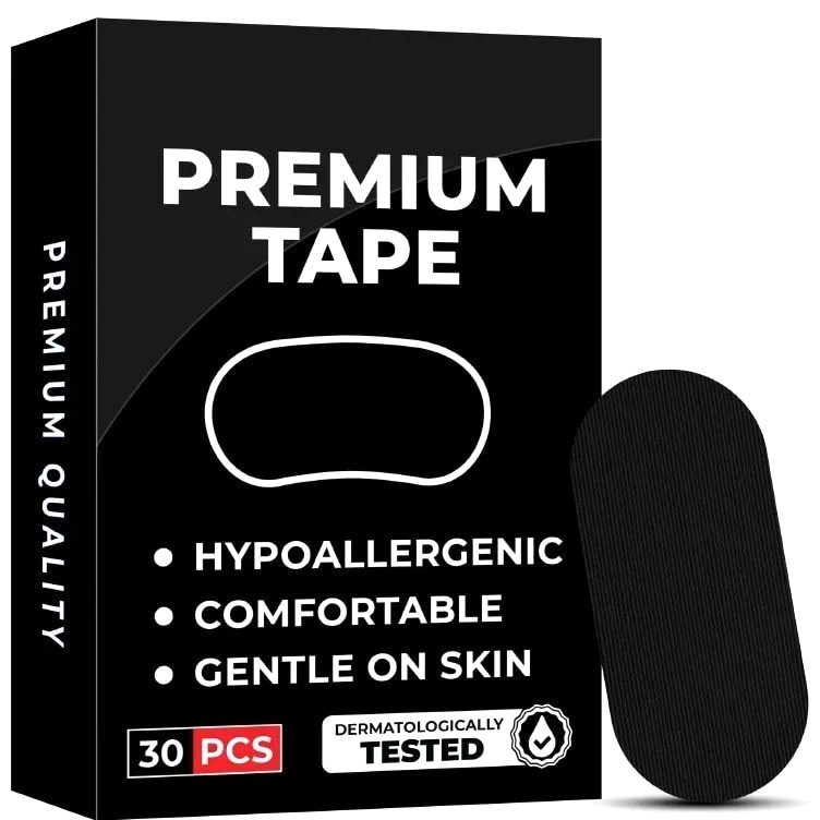 Specifications Function Anti-Snoring Mouth Patch Electronic Application Extraoral use Is Batteries Included High-concerned chemical None Number of Pieces Combo Work Mode AUTO Type Anti Snore Mouthpiece Item Type Sleep & Snoring Feature 1 30Pcs Mouth Tape Feature 2 Sleeping Keep Mouth Close Feature 3 2025 New Premium Tape Feature 4 Pain Free Removal Feature 5 Skin Friendly Adhesive Cotton Tape Feature 6 Mouth Tape Description Features: Effective Anti-Snoring Solution: Our pack includes 30/60/90pcs anti snore mouth tape, providing a comprehensive solution to reduce snoring and improve sleep quality. Sleep Mouth Closure Tape: Our specially designed sleep mouth closure snoring relief tape helps keep your mouth closed during sleep, promoting nasal breathing and reducing mouth breathing, resulting in quieter and more restful sleep. Easy to Use and Comfortable: The anti-snore mouth stickers and breathing correction stickers are easy to apply and remove. They are made from soft, skin-friendly materials that ensure comfort throughout the night, making them suitable for both men and women. Perfect Gift for Loved Ones: Our anti-snoring solution is an ideal gift for your husband, wife, boyfriend, girlfriend, or even friends and family members who struggle with snoring. Show them you care about their sleep quality and overall well-being. Improve Sleep Quality: By using our Easy Breathe Sleep Improving Patch, you can enjoy improved sleep quality and wake up feeling refreshed. The patches are designed to enhance airflow and minimize snoring, allowing you and your loved ones to sleep peacefully through the night. Notes: 1. The real color of the item may be slightly different from pictures shown on website caused by many factors such as brightness of your monitor and light brightness. 2. Please allow slight manual measurement deviation for the data. Specification: Color: Black Sticker size: 76*38mm Quantity: 30/60/90pcs (30pcs/box) Package Includes: 30pcs/box of Anti Snore Mouth Tape