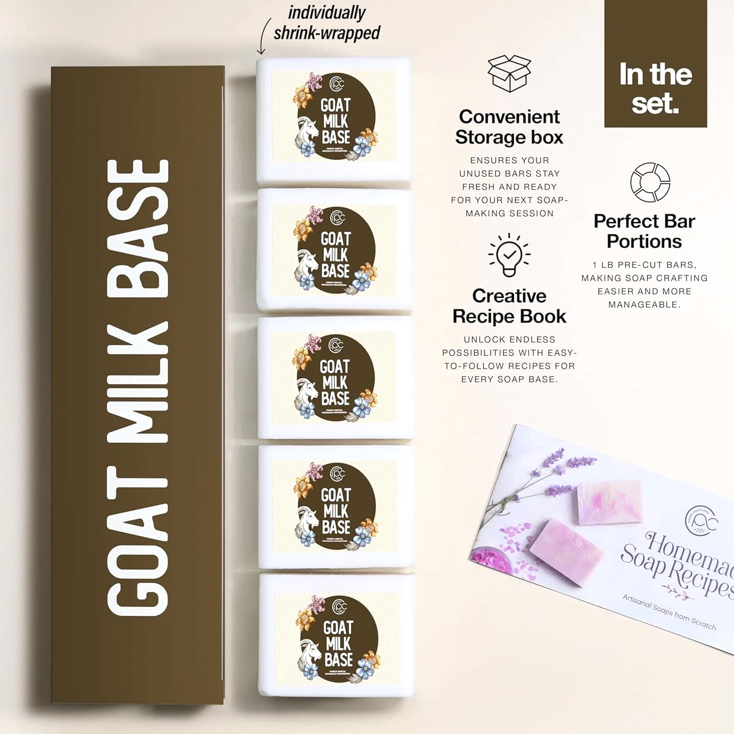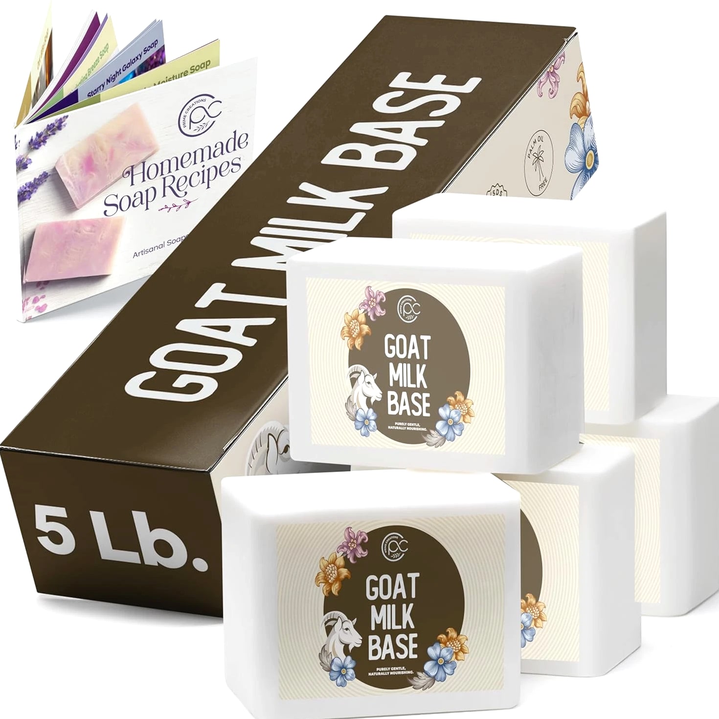 SKIN SAFE AND MOISTURIZING Our soap is naturally made with the finest ingredients. Our soap is GMO FREE PARABEN FREE CRUELTY FREE SLES/SLS FREE AND PALM OIL FREE! Enjoy the benefits of the pleasant and moisturizing effects of our pure soap. 100% NATURAL AND PREMIUM HIGH QUALITY Our soap base is made with a high quantity of glycerin and only natural ingredients. We have pretested the soap so its the perfect combination of melting and pouring smoothly, in addition to being very easy to cut. 5 POUNDS DIVIDED IN 1 POUND BARS For your convenience, we have cut our soap into packaged 1 lb bars so that you have an easy time working with the soap, and then it's easy to store the rest. DIY RECIPE BOOK INCLUDED Stunning recipe book with a premium selection of captivating DIY recipes for soap making! Gift a loved one with a beautiful bar of homemade soap! GIFT A LOVED ONE WITH AN ARTISTICALLY DECORATED BAR Get Creative! Enjoy this as an activity or to spend time with a loved one. Melt and Pour DIY is a great entertainment activity for family and friends. You can simply melt, add fragrances and coloring to the mix, and pour into your favorite shaped molds. Let it rest for 12-24 hours before removing from the molds, and voila! You got some stunning bars!
