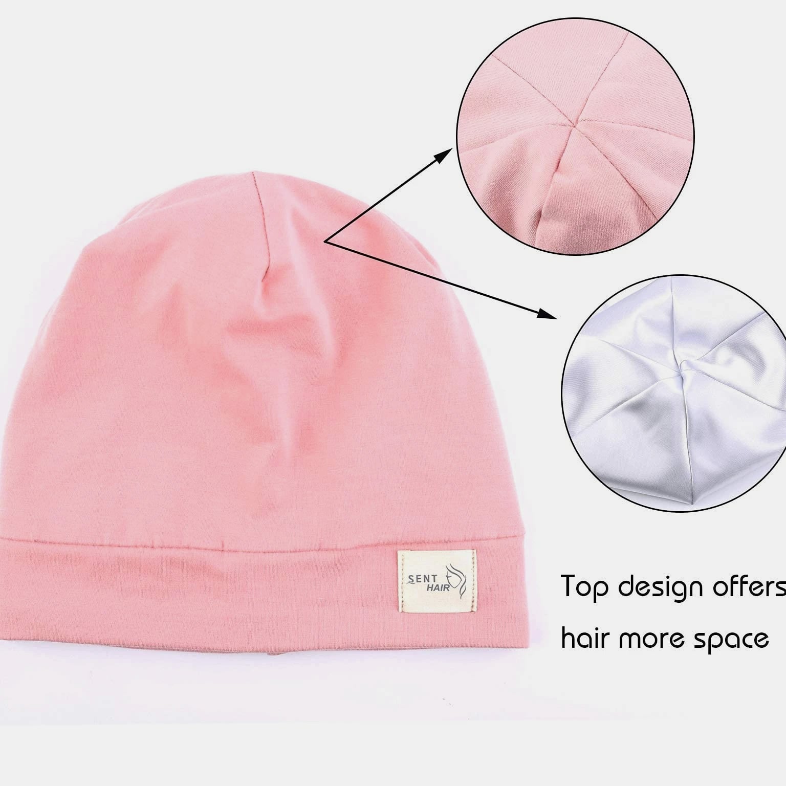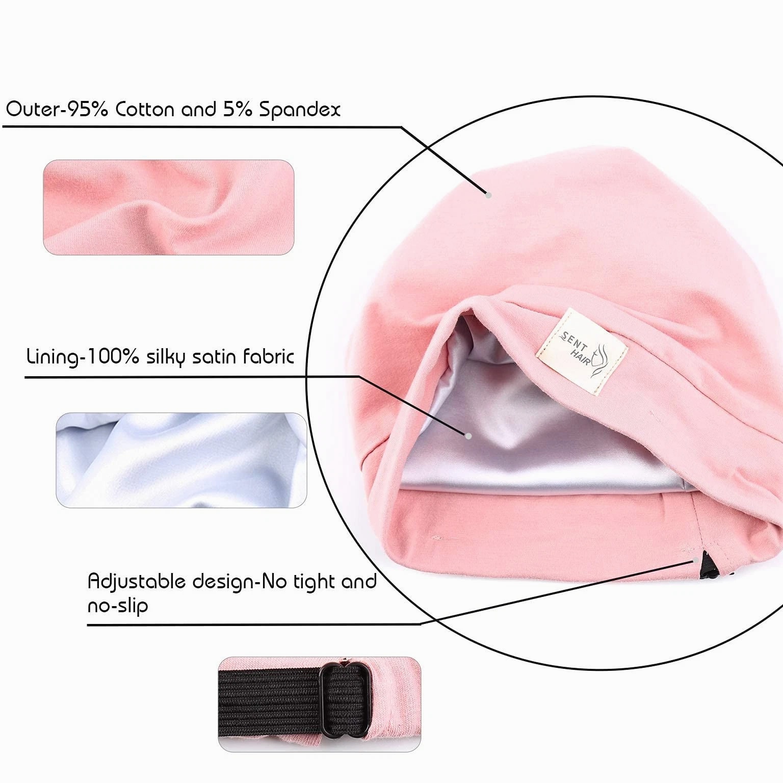 Satin-Lined Hair Bonnet - Keep Your Hairstyle Fresh and Frizz-Free Do you know that hair loses its moisture most easily during sleep because cotton pillows absorb moisture from the hair? If you are looking for ways of minimizing damage due to tangling and frizz on hair while asleep, this silky stylish beanie will be a nice choice. Advantages: Smooth satin lining maximally seals moisture of hair and increases brilliant shine. Bamboo cotton outer is soft and elastic, leaves no imprint on your forehead. Customized adjustable elastic band makes the satin cap fit all head sizes and hairstyles. Keep your hairstyles easier in the morning Great chemo hat for hair loss. Sound absorption, dust absorption, heat resistance. Washing Instructions: Hand wash or machine wash in cool water on low setting/gentle cycle; hang to dry, do not use electric iron and bleach. Quality and Service We are committed to providing comfortable nighthats for our customers. Materials and workmanship guaranteed for life. Your satisfaction means a lot to us. If any question with products or services, please let us know. We will rectify our flaws in time. Premium Quality Fabric -- The kids satin bonnet is made of 95% Bamboo Cotton and 5% Spandex outer and 100% Silky Satin lining, soft, breathable, stretch-resistant, moisture-wicking. Can maintain moisture and minimize damage due to tangling and frizz on hair while asleep. Not Easy Sliding Off While Sleeping -- Equipped with a low profile side-release buckle and soft elastic band allows you to widen or tighten the satin hair bonnet to your comfort level easily. No tight and no-slip. Multifunctional Application -- This silky slouchy beanie is not only used as a night cap, it can also be used as a headband to keep your child's hair clean when eating, washing face and playing, or as a daily head-wear when hanging around or on windy days. Large Capacity Fit All Hairstyles -- 10.6 inches x 11 inches large satin sleep bonnet offers enough room for thick hair. The elastic band can