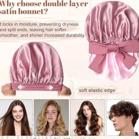 1-5 Days Fast Delivery Trusted seller Satin Bonnet for Sleeping Cap Double Layer Hair Bonnet with Elastic Tie Band for Curly Hair Night Cap (Bean Paste + Pink) Product Description * Satin Bonnet with Elastic Broad Bands: Wide elastic band at the bottom of the satin sleep bonnet, which can be stretched to fit different head sizes. 2 long enough elastic straps can effectively adjust the size of the head and provide double protection * Stay On Head All Night To Protect Your Hair: Satin night cap can effectively protect hair to the maximum extent, help lock hair moisture, prevent dryness, frizz, split ends. Stays put all night long, and leaves hair softer, smoother, shinier * Premium Satin Reusable Double-Layer Sleep Cap: Satin cap is made of high-quality, lightweight 100% polyester fabric, soft and breathable. Double-layer nightcap can be worn on both sides for double-layer hair protection * Satin Bonnet for Sleeping - Versatile: Satin hair bonnet is not only suitable for sleeping, you can also use it to wash your face, bathe, cook, do SPA, tie your hair or clean your face while doing makeup, even do housework, do yoga and so on * Sleep Bonnet For All Hairstyles: Satin Nightcap is very comfortable to wear and can maintain the integrity of the hair. The satin nightcap can perfectly cover all kinds of hair: long hair, curly hair, straight hair, ponytail, crochet hair and more Shipping Returns Payment Shipping: All stock ships from US-based warehouses. Shipped via USPS or UPS (depending on location and package weight). Unless stated otherwise, all orders will ship within 24-72 hours of payment being processed. Returns Seller does not accept returns Payment Payment via managed payments only. Once payment is cleared, we will dispatch your shipment within 1-3 business days.