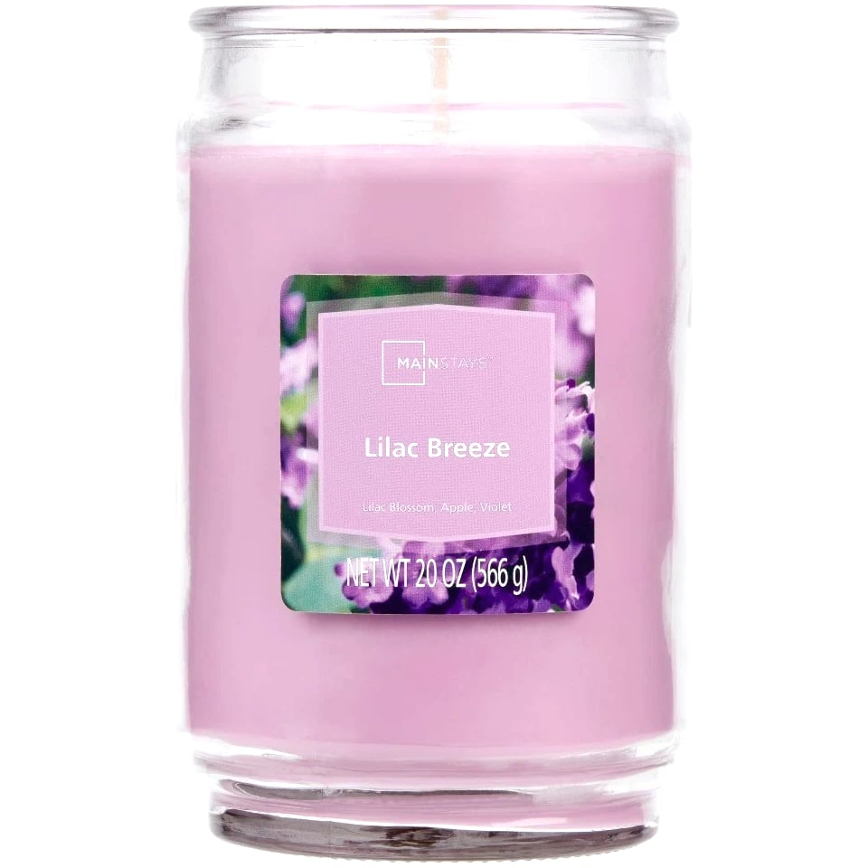 Introduce a soothing aroma into your living space with the Lilac Breeze Scented Single-Wick Large Glass Candle Jar. These scented candles are highly fragranced and provide a clean and even burn that will fill your home with beautiful and enticing seasonal aromas. Place this candle in the kitchen, living room or dining room where you can enjoy it when entertaining guests or anytime you want to relax. Trim the wick periodically to promote even burning. A wide selection of candle scents is available to explore and enjoy. Treat yourself to the enticing scent of the Lilac Breeze Scented Single-Wick Large Glass Candle Jar. Lilac Breeze Scented Single-Wick Large Glass Candle Jar, 20 oz Palm blend scented single wick candle with notes of lilac blossom and violet Product measures: 3.6" W x 3.6" D x 5.75" H Perfect for any room in your home or for gift giving No assembly required Follow these tips for the perfect burn: Always trim wick to 1/4 inch before lighting and keep debris out of wax pool Do not burn more than 3 hours at one use, and allow wax to harden before relighting, touching or moving Set candle on a heat-resistant surface and keep out of drafts Always burn within sight and extinguish before leaving room. Do not burn near things that can catch fire, and keep away from children and pets Do not extinguish with water Recyclable vessel Great for gift giving or keep for yourself