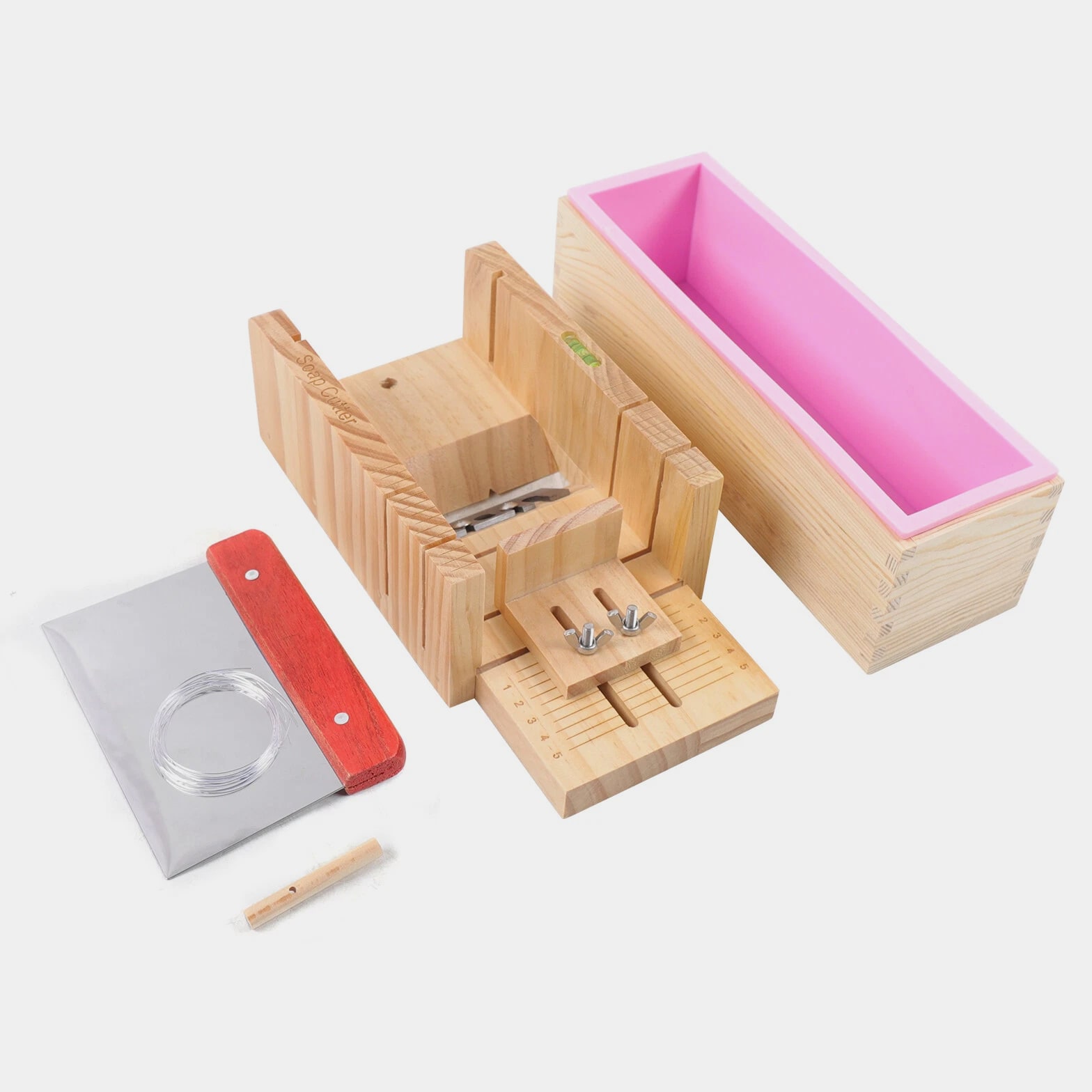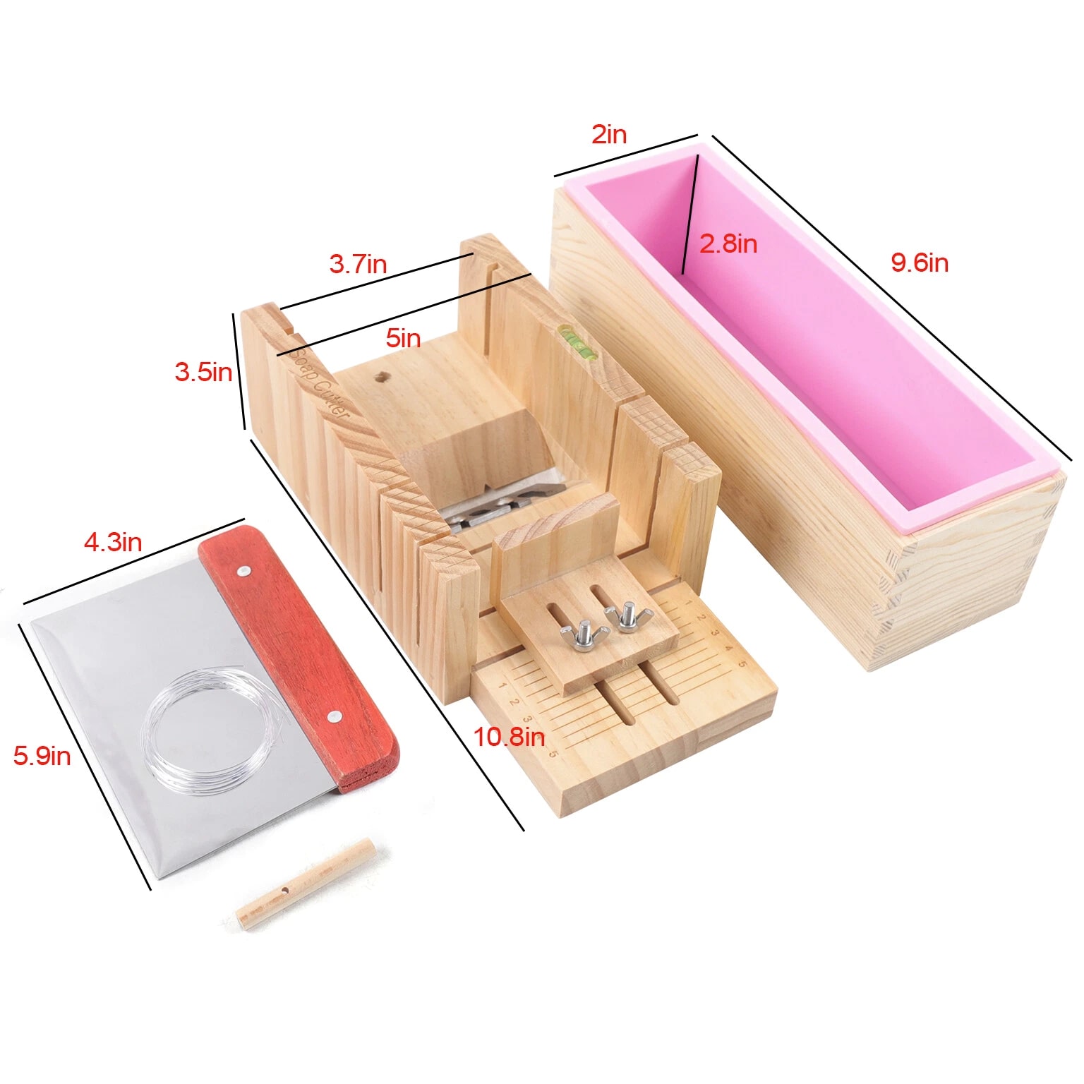 Professional Soap Making Supplies Kit 3 Pcs Set Soap Tools Cakes Mold Handmade DIY The Description of product: 3 Pcs Soap Making Tool Kit Loaf Soap Mould Adjustable Wooden Soap Cutter Slicer Gift Description: Name: Soap cutter set Style: modern and simple Process: grinding, polishing Specification: 3 pcs set Material: wood+silicone+stainless steel Product Size: Wooden mold box :9.6"*2"*2.8" Wooden Soap cutter Mold :10.8""*3.5"*5" Straight knife: 5.9"*4.3" Function: used to make handmade soap candles, cakes, etc. Applicable occasions: holidays, weddings, birthdays, full moons, travel commemorations, graduations, parties, etc. Features: 1. Multifunctional: suitable for cutting soap and candles 2. The surface of the accessories is smooth and easy to clean 3. Adjustable thickness: clear scale reading, you can adjust the thickness of soap, easy to observe during operation, easy to get the correct soap size you need. 4. High quality and easy to clean: made of exquisite solid wood and food grade stainless steel, safe high temperature resistance, corrosion resistance, long service life Tips: When You Start To Make A Soap, You Need To Put The Silicone Mold Into The Wood Box. And Then Pour Liquid Soap Into The Silicone Mold. After The Liquid Soap Is Harden, You Take Out The Silicone Mold And Take Out The Soap. Wire Cutter Should Be Used When The Soap Is Still A Bit Soft. Packing list: 1*Wooden box with silicone container 1*Wooden Soap cutter Mold 1*Straight knife Packing size: 29*17*13cm/11.4"*2.7"*5.2" Package weight: 1.35kg/3lb
