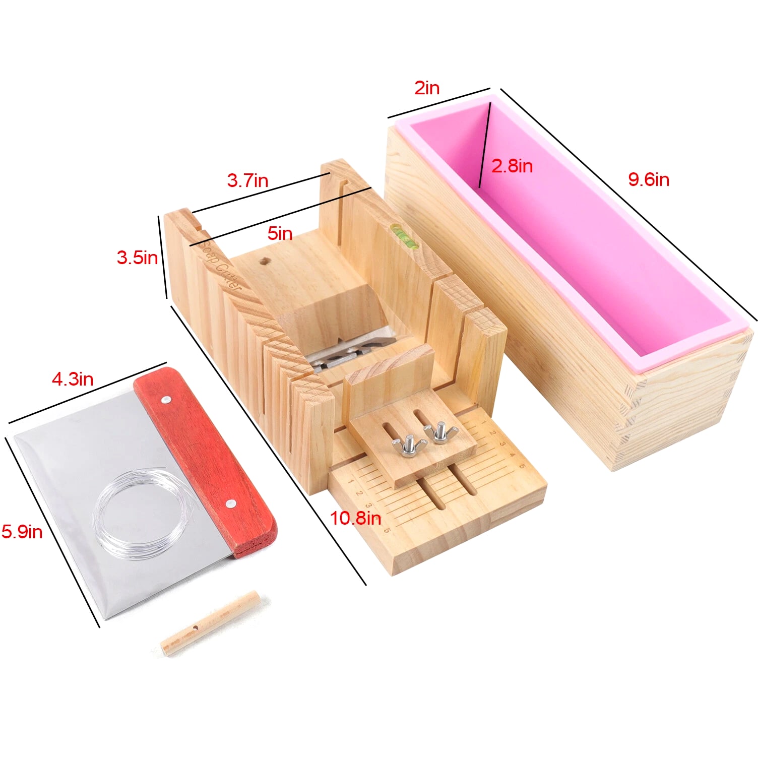 Professional Soap Making Supplies Kit 3 Pcs Set Soap Tools Cakes Mold Handmade DIY Description 3 Pcs Soap Making Tool Kit Loaf Soap Mould Adjustable Wooden Soap Cutter Slicer Gift Description: Name: Soap cutter set Style: modern and simple Process: grinding, polishing Specification: 3 Pcs set Material: wood+silicone+stainless steel Product Size: Wooden mold box: 9.6"x2"x2.8" Wooden Soap cutter Mold: 10.8"x3.5"x5" Straight knife: 5.9"x4.3" Function: used to make handmade soap, candles, cakes, etc. Applicable occasions: holidays, weddings, birthdays, full moons, travel commemorations, graduations, parties, etc. Features: 1. Multifunctional: suitable for cutting soap and candles 2. The surface of accessories is smooth and easy to clean 3. Adjustable thickness: clear scale reading allows you to adjust soap thickness; easy to observe during operation for correct soap size 4. High quality and easy to clean: made of exquisite solid wood and food grade stainless steel, safe high temperature resistance, corrosion resistant, long service life Tips: When you start to make soap, put the silicone mold into the wood box. Then pour liquid soap into the silicone mold. After the liquid soap hardens, remove the silicone mold and take out the soap. Wire cutter should be used when the soap is still slightly soft. Packing list: 1x Wooden box with silicone container 1x Wooden Soap cutter Mold 1x Straight knife Packing size: 29x17x13cm / 11.4"x2.7"x5.2" Package weight: 1.35kg / 3lb Payment & Delivery We accept payment methods. Fees such as import duties and taxes are not included in item price or shipping costs. These charges are the buyer's responsibility.