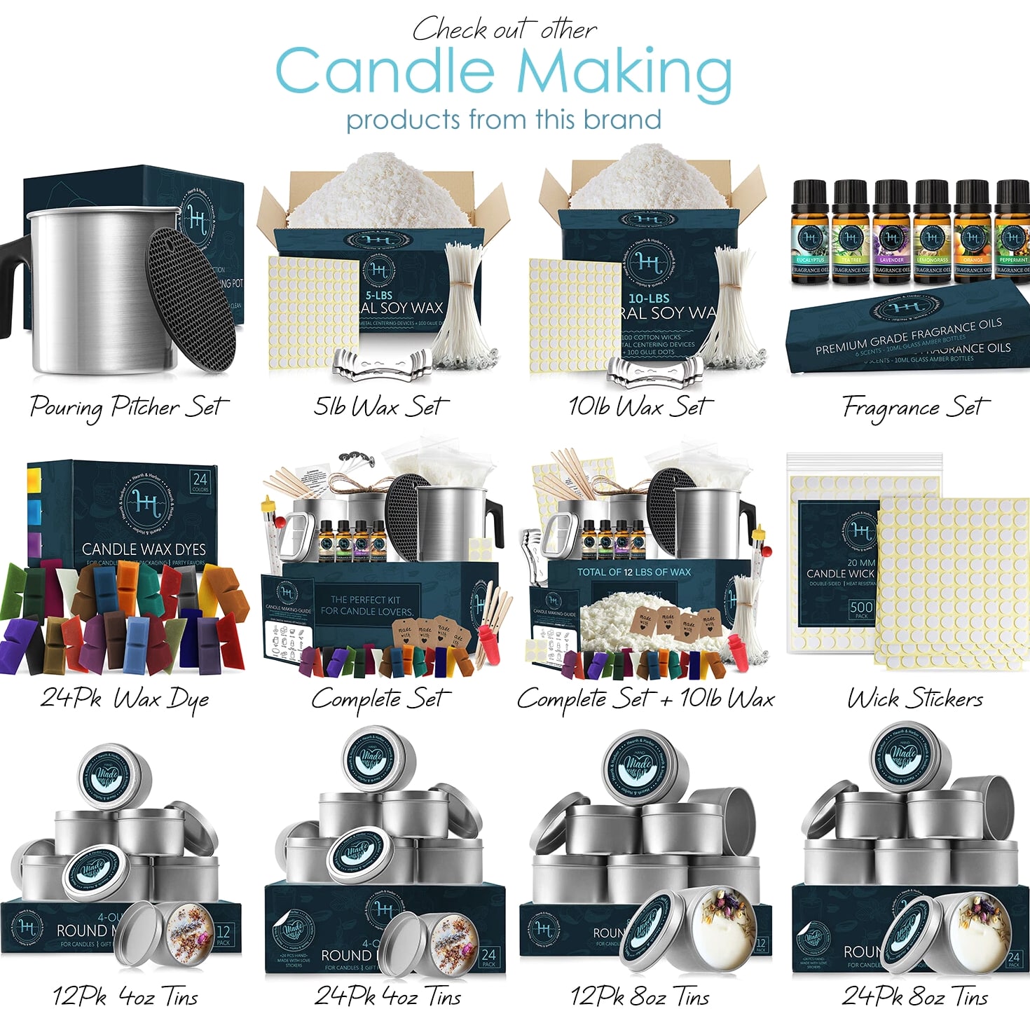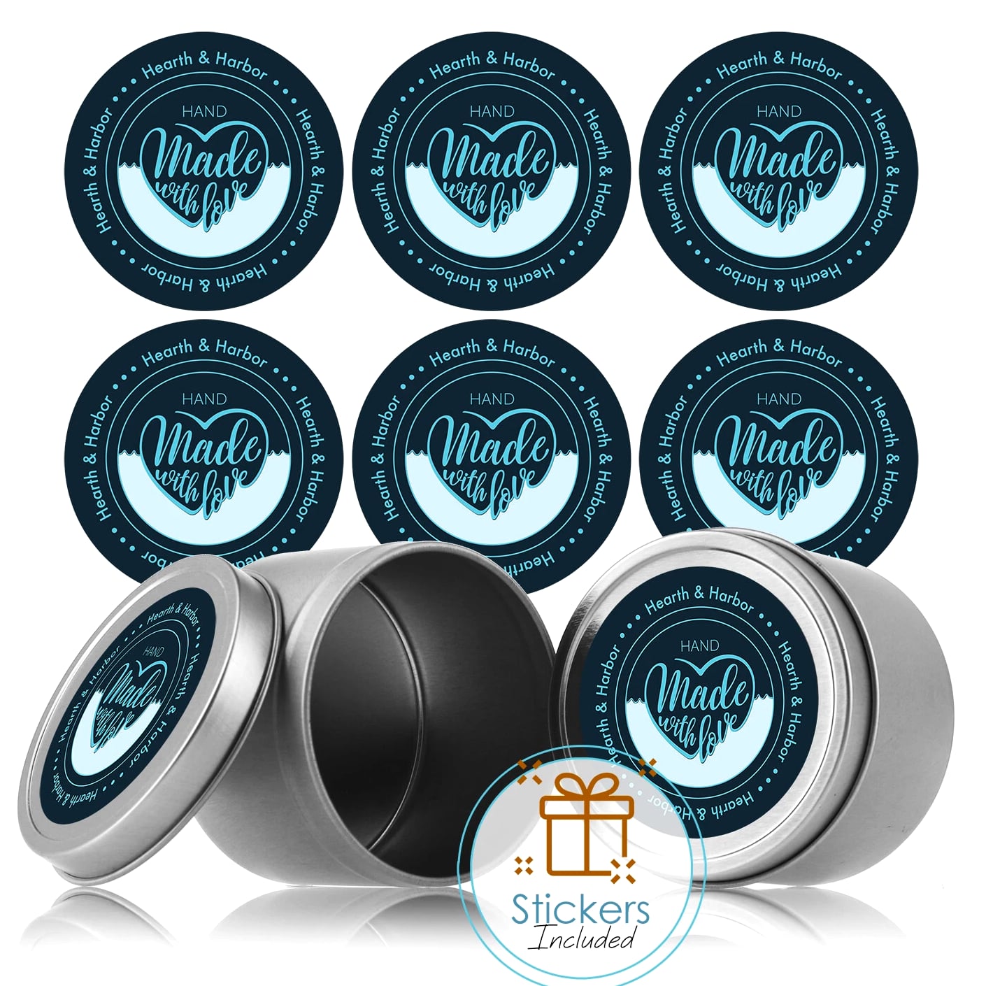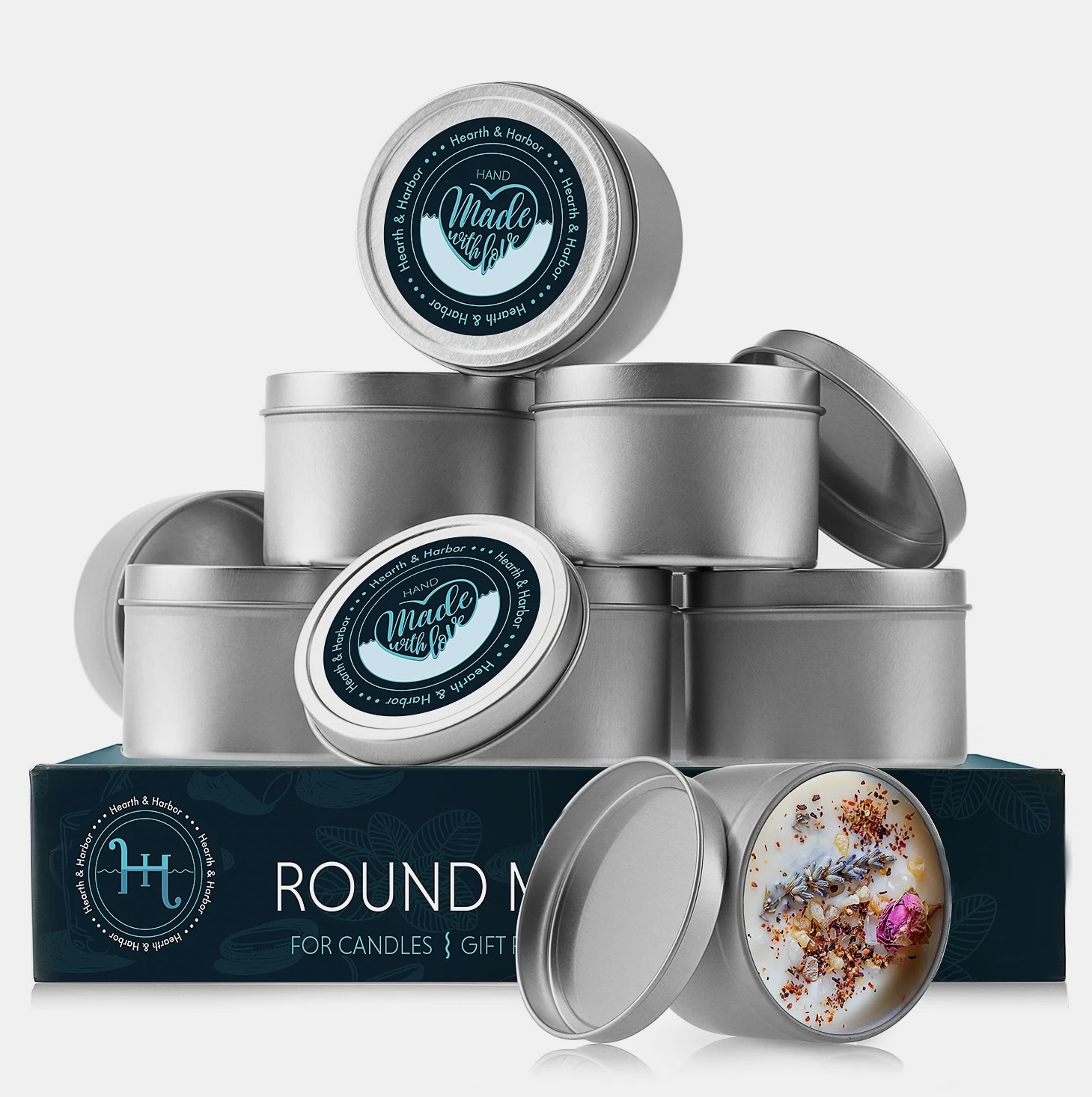 Candle Tins with Lids Metal Round Jars for Candles with Custom Sticker for Lids Items Specifications Brand: Hearth & Harbor Material: Metal Condition: Brand New in Original Packaging Size: 4 oz or 8 oz 4 Ounce Measurements: Capacity: 4oz = ½ cup = 118 ml. Size: 1.75" tall by 2.4" diameter of those Round Tin Cans. 8 Ounce Measurements: Capacity: 8oz = 1 cup = 236 ml. Size: 2.36" tall by 2.95" diameter of those Round Tin Cans. Value Pack - Includes 12 or 24 metal round containers meeting your multipurpose uses for candle making, DIY crafts, slime containers, & more. Also ideal for organizing small items like pills, beads, screws, candies, buttons, coins, cosmetics, lip balms, creams, etc. Premium Quality: Seamless construction made of high quality aluminum, durable. Perfect for DIY candle making projects. Great for travel size & camping candles. Perfect Gifts: Just use these tin cans to DIY candles as a gift set, your friend or families would love that elegant touch so much! Value for money guaranteed, if you are not satisfied with your purchase for any reason, you can contact us for a free replacement or refund. Returns accepted within 60 days of receiving your order. Due to hygiene reasons, all items must be in original condition. To initiate a return, please contact us directly. We ship all orders within 1 business day of receiving cleared payment.