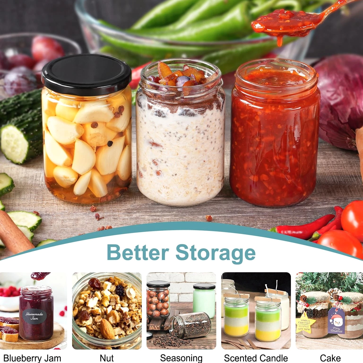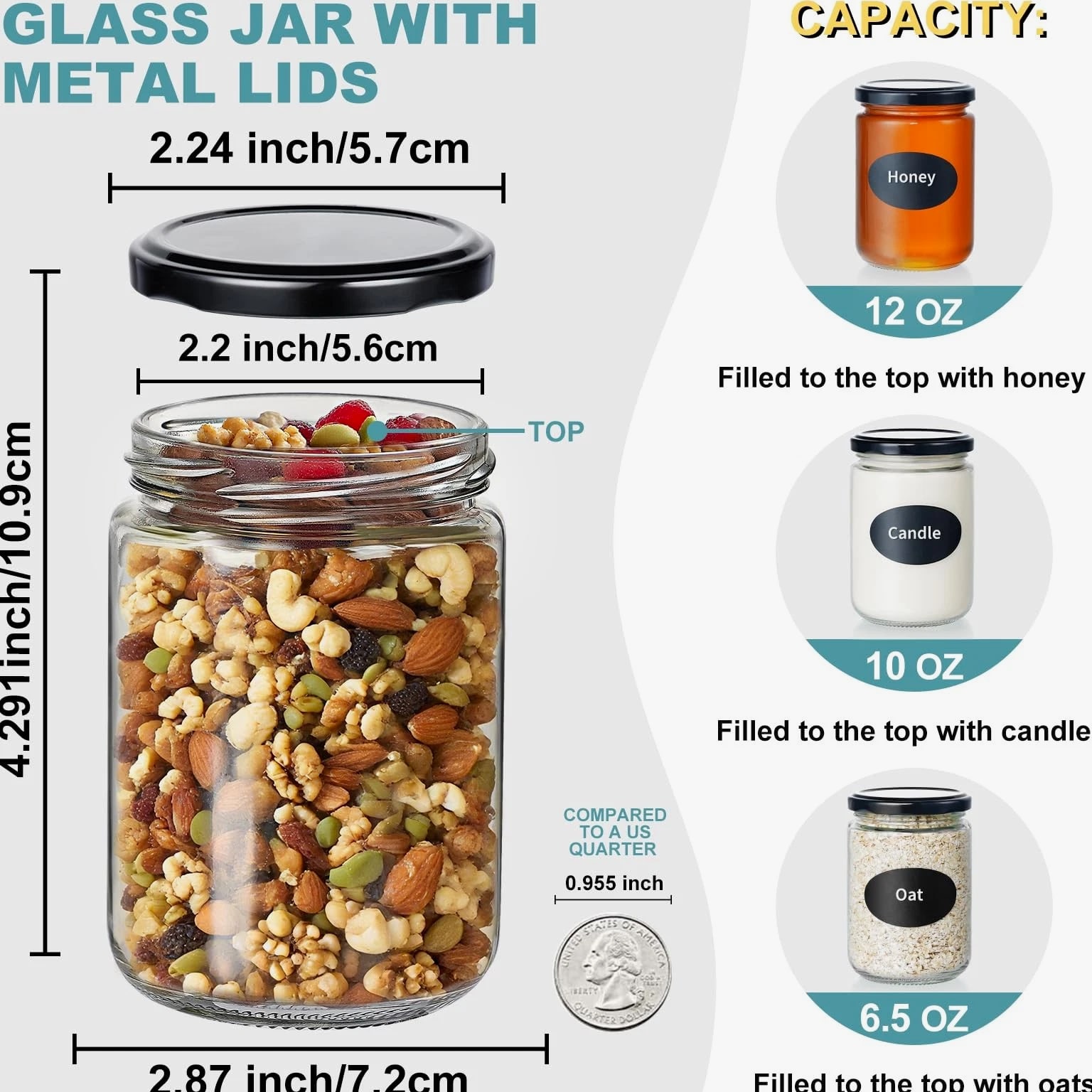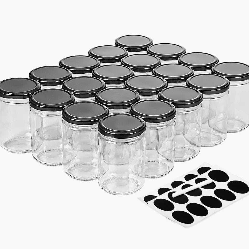 About Created by a commerce sales team, their high-quality glass products Which backed by a factory that specializes in R&D and production of glass containers Our goal is to sell high-quality and cost-effective products to the world Our purpose is to encourage everyone to use recyclable glass products to reduce the use of plastics and protect the environment Package Include 20 Black Lids 20 Glass Jars Blank Black Stickers (2x10) Chalkboard Pen (1 pc) More Details Diameter: 2.87 inches (73 mm) Height: 4.29 inches (108 mm) Opening: 2.24 inches (57 mm) Capacity: 12 fl oz (350 milliliter) Multiple Uses Decoration for Weddings, Parties Storage for Jam, Yogurt, Dessert, Herbs, Party Favors Present for Friends, Family, Lovers candle jars candle jars for making candles candle containers glass jars with lids mason jars with lids small glass jars with lids honey jars chia pudding jars with lids jam jars candle making kit candle making supplies moldes para velas 8oz glass jars with lids 12 oz glass jars with lids small mason jars mason jars 16 oz with lids canning jars spice jars overnight oats containers with lids mason jars 8 oz mason jars 12 oz candle jars with lids glass candle jars candle vessels Advantage: The wide-mouth glass jars have corrosion resistant leak-proof lids, which makes sure these cookie jars can be great for honey jars Specification: The jelly jars measurement approx 2.87"Diameter x 4.29"Height, 2.24"Opening x 12oz Capacity allows use as jam jars Feature: You can draw or write on blank black stickers we provided, it is convenient for spice jars classification, and also might be helpful for you to decorate the gift jars Widely Used: Also used as candle jars, jam jars, jelly jars, spice jars, honey jars, candy jars, pudding jars, yogurt jars, cake jars, cookie jars, canning jars, pickle jars, plant jars, decorate jars, gift jars, etc. Notes: Please soak the jars in warm water first if you need to pour boiling water inside, especially use as candle containers or jam jars.