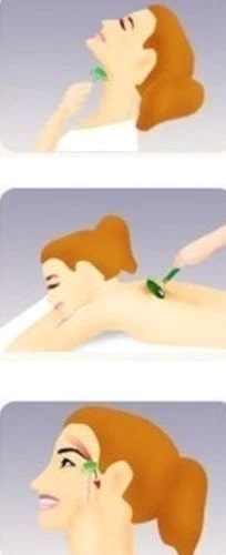 Therapy Products and More Relief is Just a Click Away! Jade Face Massage Massager 5 3/4" Length Beautiful Jade Stone Facial Roller NEW~Top Quality Facial Massage Roller Head Neck Face Length: 5 3/4" Width: 2 1/2" Material: Jade Style: Jade massage Condition: New Jade facial rollers, the skincare trend straight from Ancient China You are looking at a very nice Chinese green jade facial massager. The Jade facial massager was commonly used by Chinese women for centuries to reduce wrinkles. The most famous woman who used such device was Empress Ci Xi in late Qing Dynasty. It was said that her face was very soft and smooth when she died at age of 75. When use, hold the jade handle bar and move either wheel up or down your face for about 10-15 minutes each day. It helps your face to relax and thus reduce the appearance of wrinkles. Try what the Chinese Empresses did for generations and feel for yourself. Jade facial rolling is the new Botox. The idea of incorporating the healing properties of crystals into a daily skincare routine is immediately intriguing. In ancient China jade was the ultimate symbol of beauty, grace and immortality. Synonymous with wealth and opulence, this beautiful green stone has numerous healing properties. Commonly worn for protection and good luck, jade stone is also known to balance the emotions, calm the mind and release negativity. Jade can refer to two different types of crystal – Jadeite and Nephrite. The former is a lighter translucent stone, with the latter generally being darker in colour and easier to find. Both stones have similar healing properties. An amazing anti-aging treatment, adding facial rolling into your daily routine will firm up the skin, reduce puffiness and dark circles around the eye area and decongest the sinuses. It is also appropriate for those who suffer from breakouts, preventing the build-up of nasty toxins which cause spots. The natural properties of jade mean it stays cool to the touch, even in hot conditions.