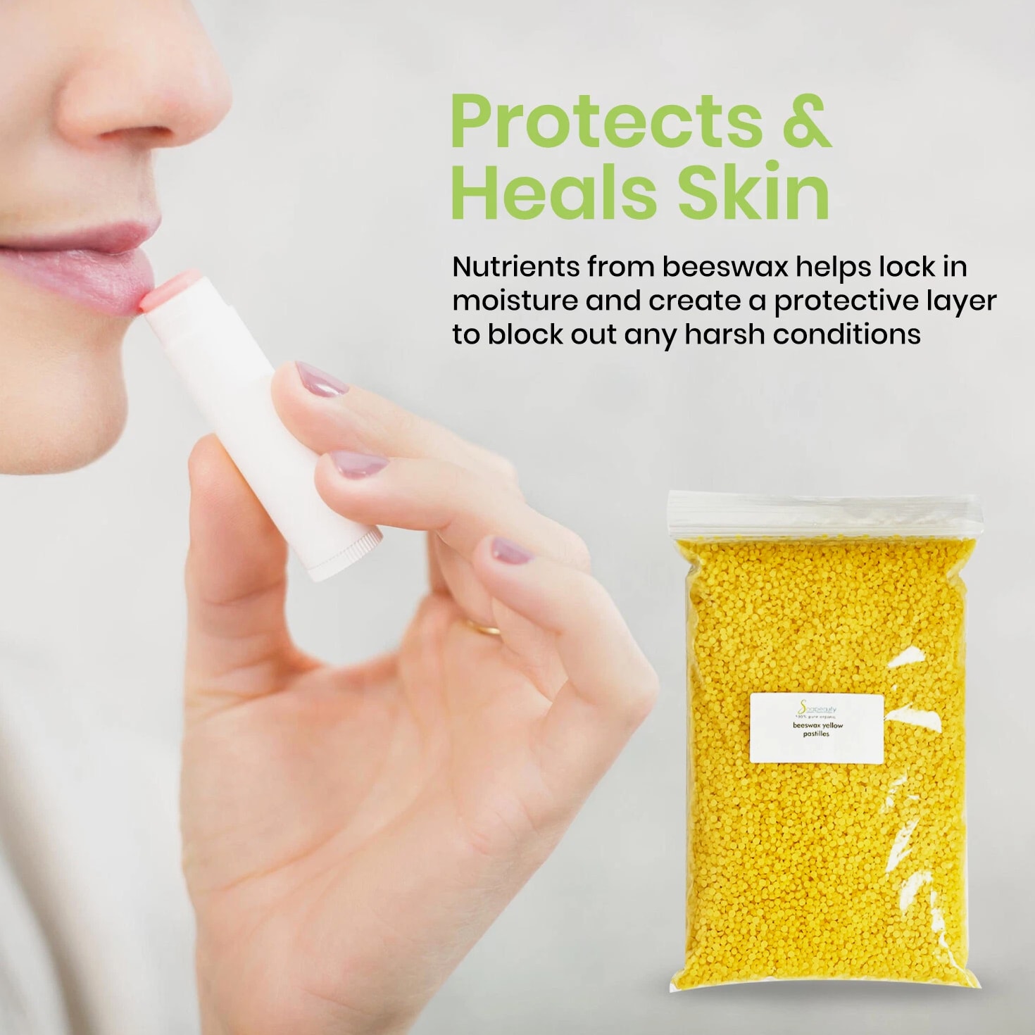 Yellow Beeswax Pastilles Beads - 100% Pure & Natural for Lip Care, Body, Candles