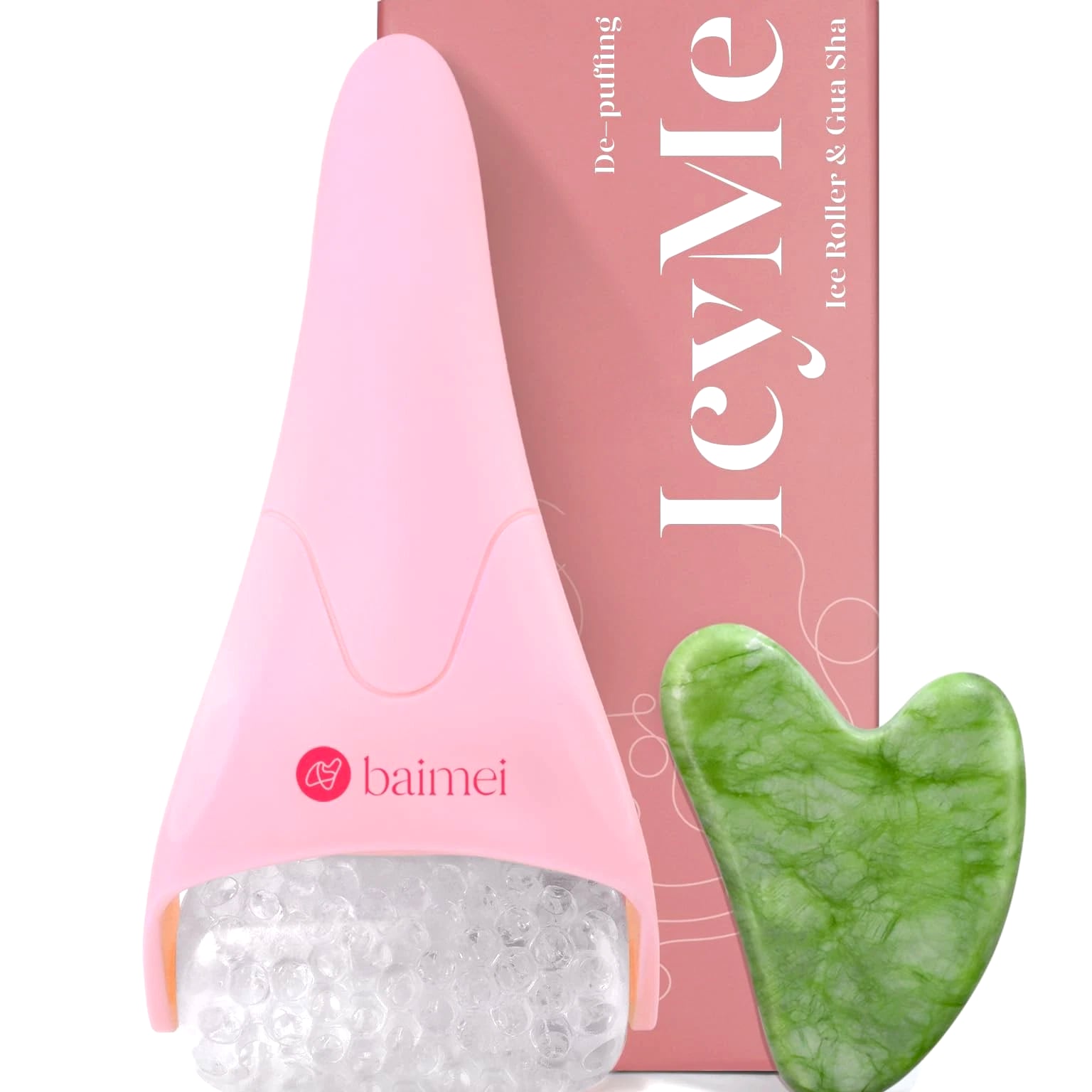 BAIMEI IcyMe Ice Roller for Face and Gua Sha Facial Tool Set, Pink Description Features: [Revitalize with Face Roller] The skin care tool provides lasting coolness to help you reduce puffiness and wake you up, it's a choice of pink beauty gifts for women [Effective Benefits] The frozen ice roller for face women calms skin, relieves fatigue, puffy face, decreases wrinkles, and cryotherapy energizes skin IcyMe. Gua sha is made of jade stone; color may vary [Gua Sha Magic] Not only can lift your skin and improve fine lines with upwards pressure, but it also helps to shape your jawline. This well-made guasha adds elegance to your self-care collection [Suitable for All Skin Types] The ice-touch can work on your skin care in a physical way. It can be used on your face, neck, and each part of your body. Packaging may vary [Easy to Use] Freeze the face massager and guasha for 30 minutes before using. You will enjoy the cool sensation for 1 hour. It can also be used as mother's day gifts Product Details: Handling All orders will ship within 1 business day of payment. Delivery We are part of an international shipping program, offering both domestic US and international super-fast shipping. Return Policy All items qualify for returns within 30 days of receipt. Buyer is responsible for return shipping on any item that is not damaged. Feedback We take our reputation seriously; we buy and sell online, so we understand the value of trust. If you are unsatisfied with your order, please contact us and we will work with you to resolve it to your satisfaction.