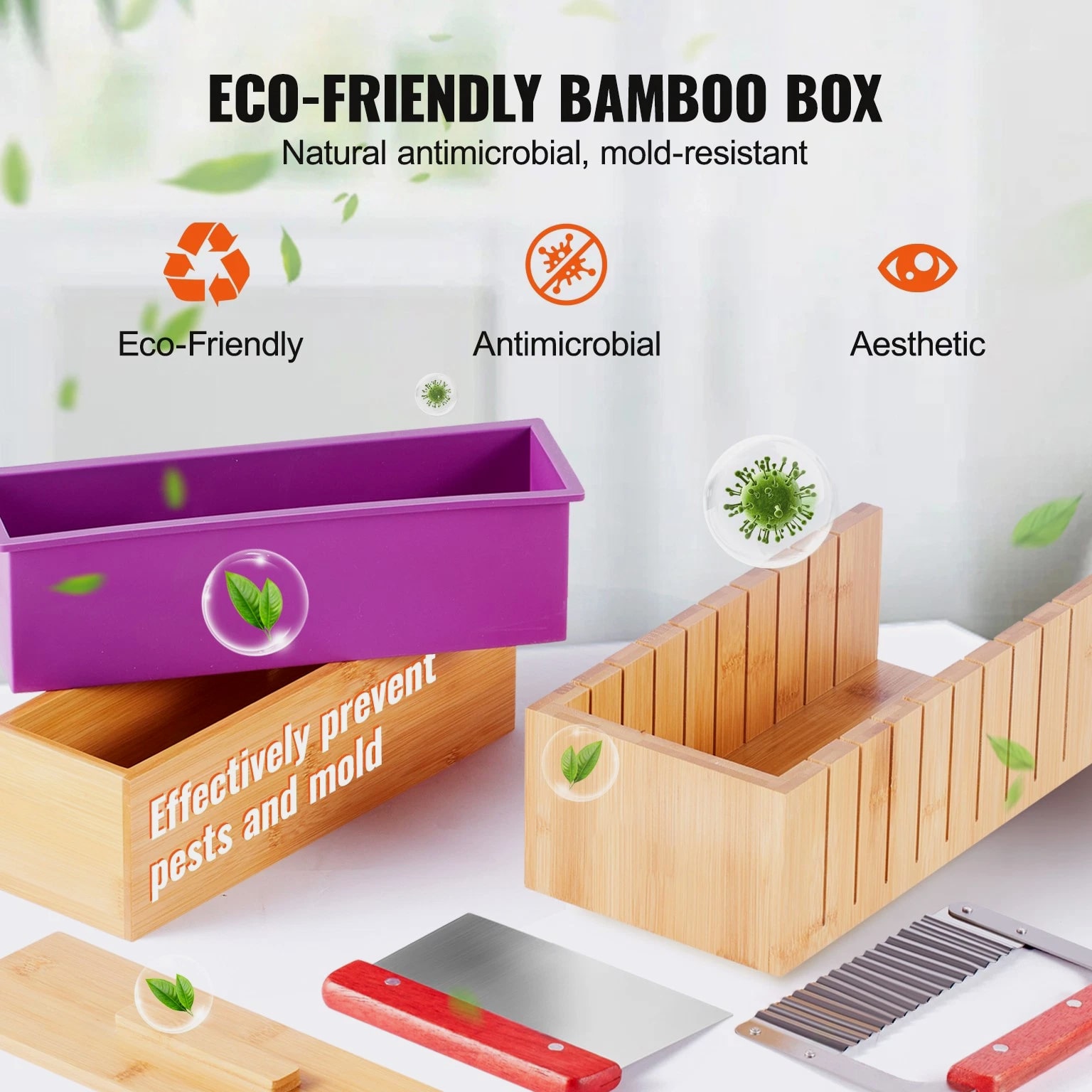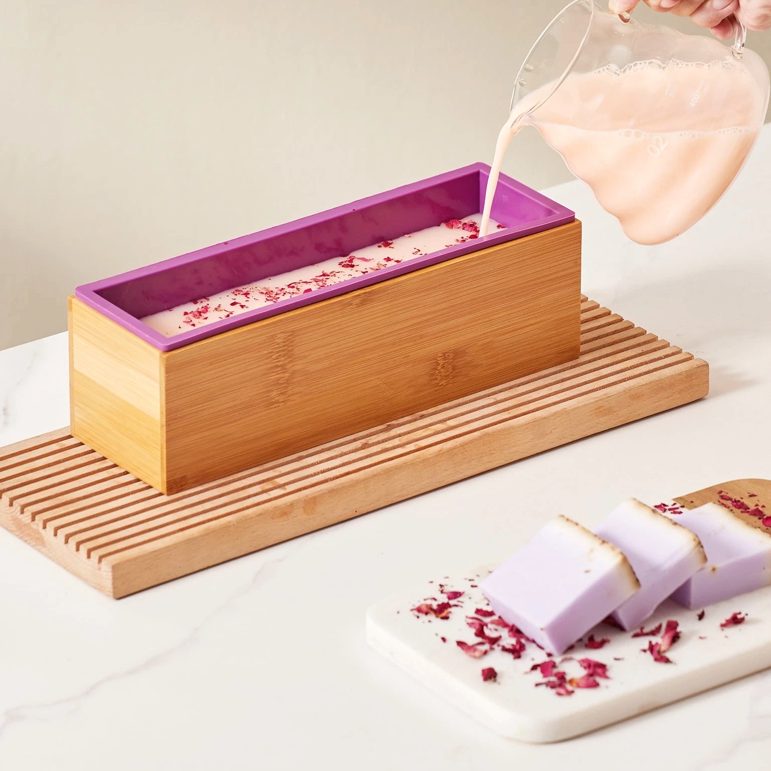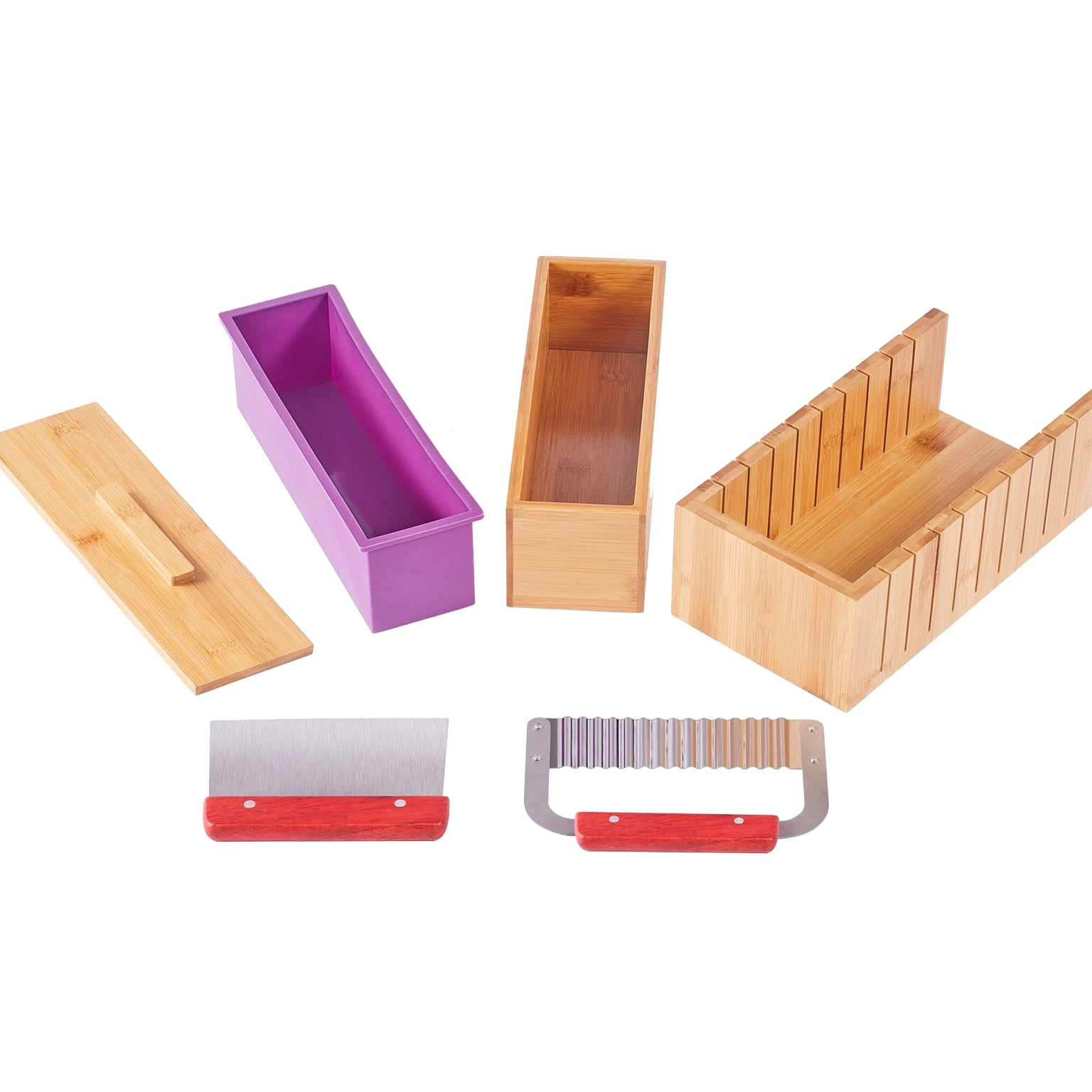Soap Making Kit with Bamboo Cutting Box, Silicone Mold, Stainless Steel Cutters