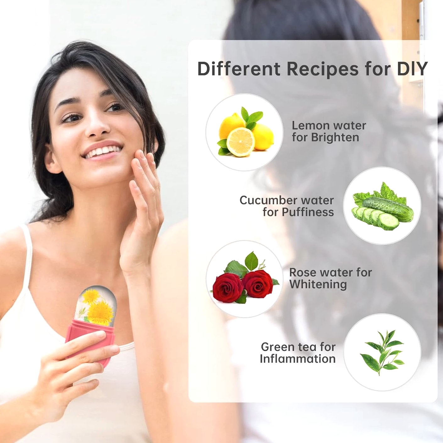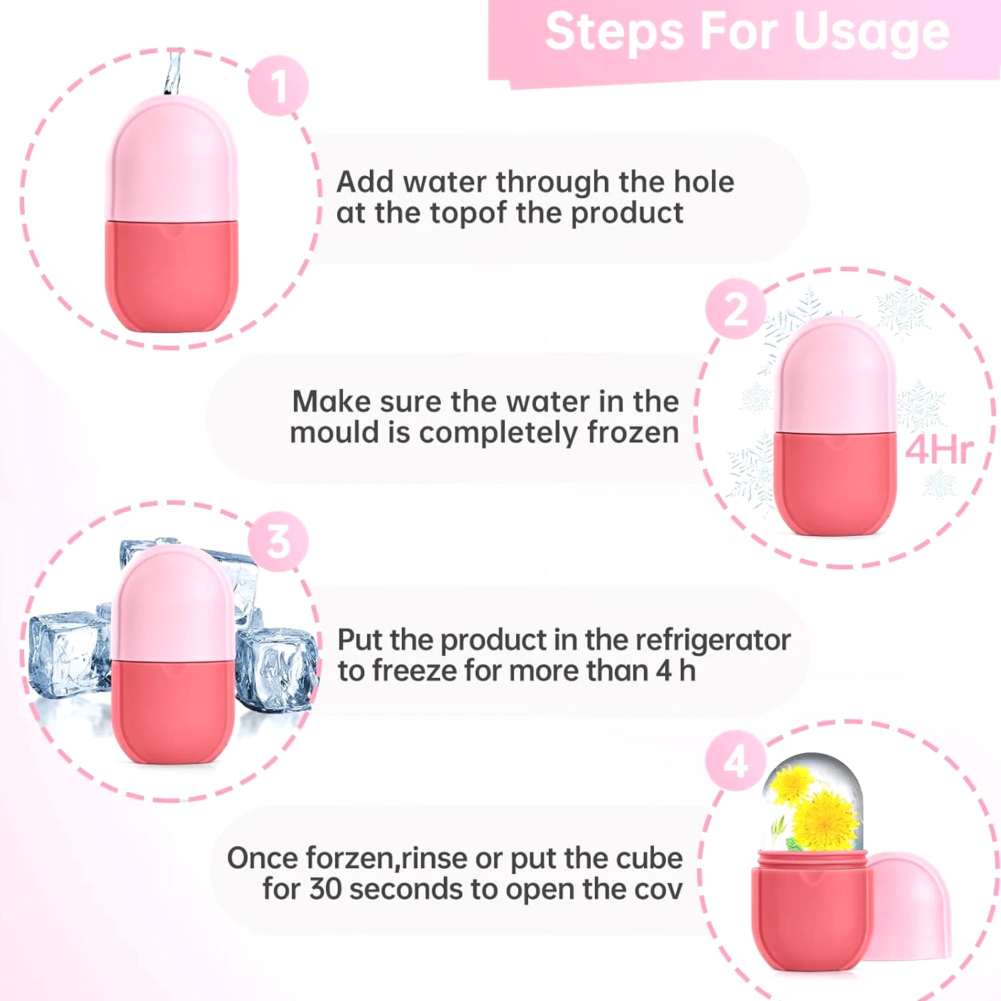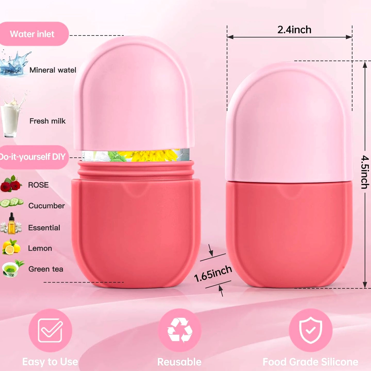 💙【Facial & Neck Ice Roller】 Suitable for all skin types. This popular beauty & personal care device helps treat acne and sensitive skin, reduce redness, remove puffiness and fine lines, smooth skin, improve skin problems, body massage care. It has multiple functions such as beauty, cleansing, and blood circulation. acting as a cute skin care tool, and must haves for women & girls self care. 💙【Multiple Functions】The multi-function preppy design of this aesthetic cute stuff can meet a variety of needs. It can not only outline and shape your face, improve skin radiance, and make you glow—perfect for the clean girl aesthetic and daily self care. You can also use it for full body massage, which can effectively promote facial blood circulation and lymphatic drainage, lubricate the skin, make the skin more elastic and contractile, and give you a good relaxation experience. It works as a facial depuffer and helps reduce the appearance of wrinkles, much like a guasha tool for face. 💙【Reusable FDA Grade Silicone】This reusable silicone cube set can be used multiple times and is made from durable materials, which can save you money. It doubles as a neck/head roller and can help relieve migraine discomfort through soothing acupressure. To achieve real skin-lifting effects, customize the formula according to your personal skin needs—such as lemonade for whitening, green tea for inflammation, cucumber water for reducing swelling, and coconut milk for anti-aging, creating a custom skin care set. Provide you with a spa-like relaxing experience. 💙【Easy to Use】Small and mini light design, easy to use—a perfect self care device for travel or vacation. The ergonomic hand design is easy to grasp, and the ice roller head can slide on the skin, refreshing and calming the skin. It helps improve the skin by conditioning, shaping and lifting, while at the same time creating a healthy glow for the skin by stimulating blood circulation—an essential among skin care tools. Frozen over 4 hours.