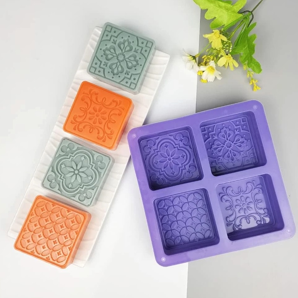 Product Description Perfect for candle making, soap making, clay and epoxy resin crafting projects etc. Range of applicable temperature -40℃ to 230 ℃, microwave oven, refrigerator and dishwasher safe. Also great for making chocolate, fondant, cake decoration and more. Non-stick silicone molds easily release without cracking. Silicone, eco-friendly, flexible, reusable and durable. Soap Silicone Mold 4 Cavities Square Flower Baking Molds for Soap Candles Jelly Making Cake Chocolate Decorating silicone soap mold Features: Silicone, eco-friendly, flexible, reusable and durable. Non-stick silicone molds easily release without cracking. Perfect for candle making, soap making, clay and epoxy resin crafting projects etc. Also great for making chocolate, fondant, cake decoration and more. Range of applicable temperature -40℃ to 230 ℃, microwave oven, refrigerator and dishwasher safe.