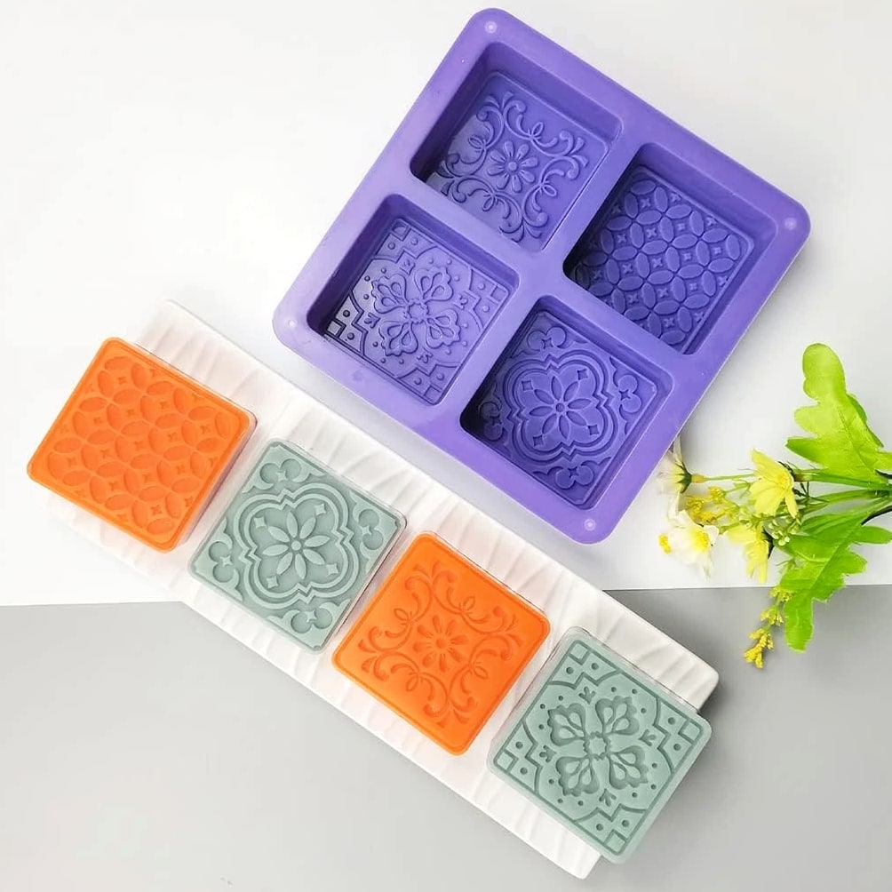 Silicone Soap Mold - 4 Cavities Square Flower Baking Molds For Soap Candles Jelly