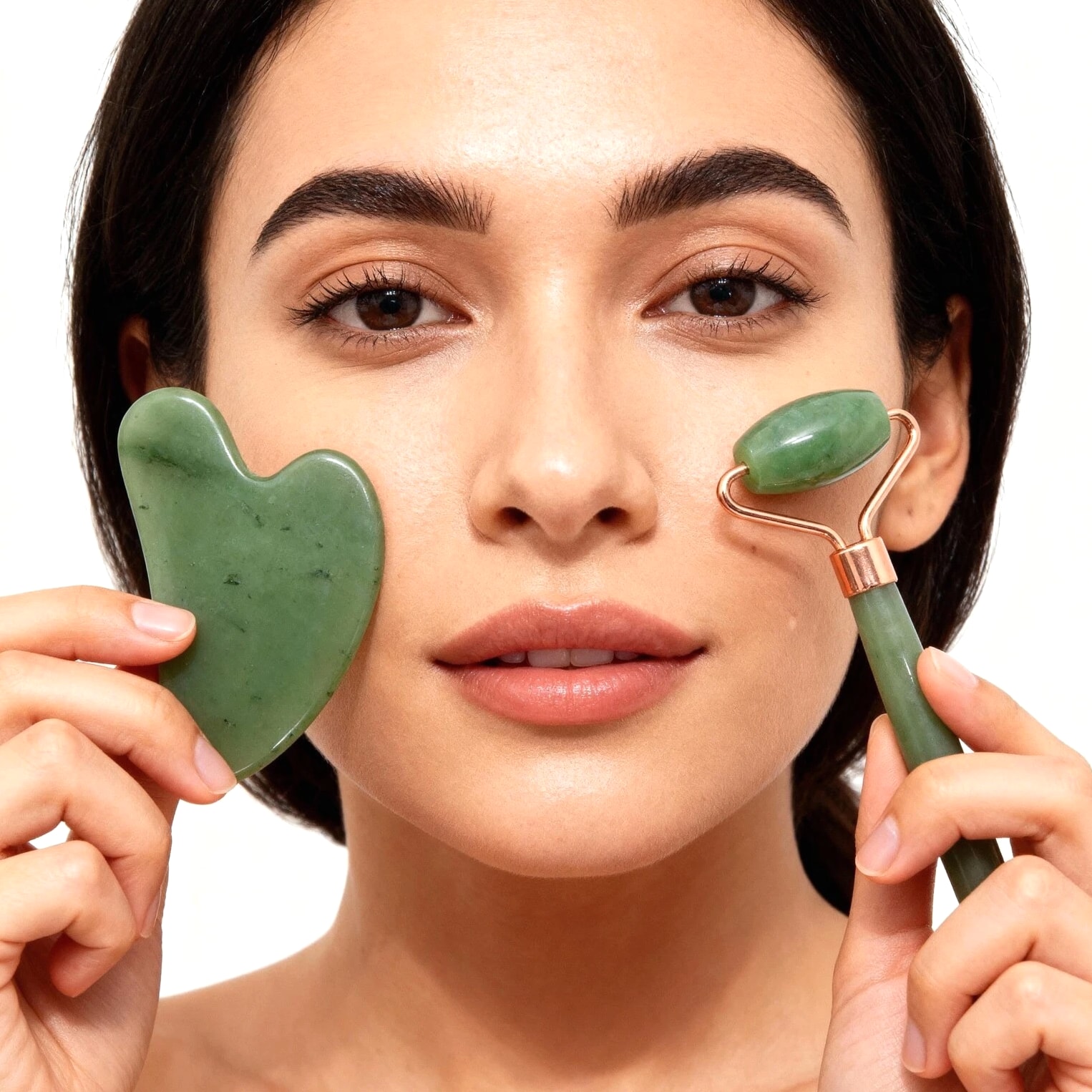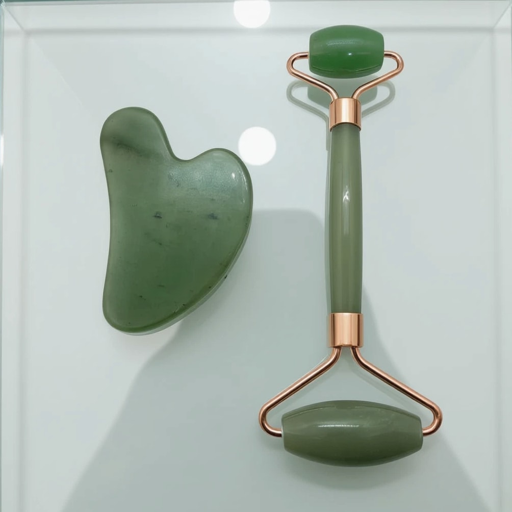 Green Jade Roller & Gua Sha Set | Natural Facial Massage Tools for Radiant Skin Glow