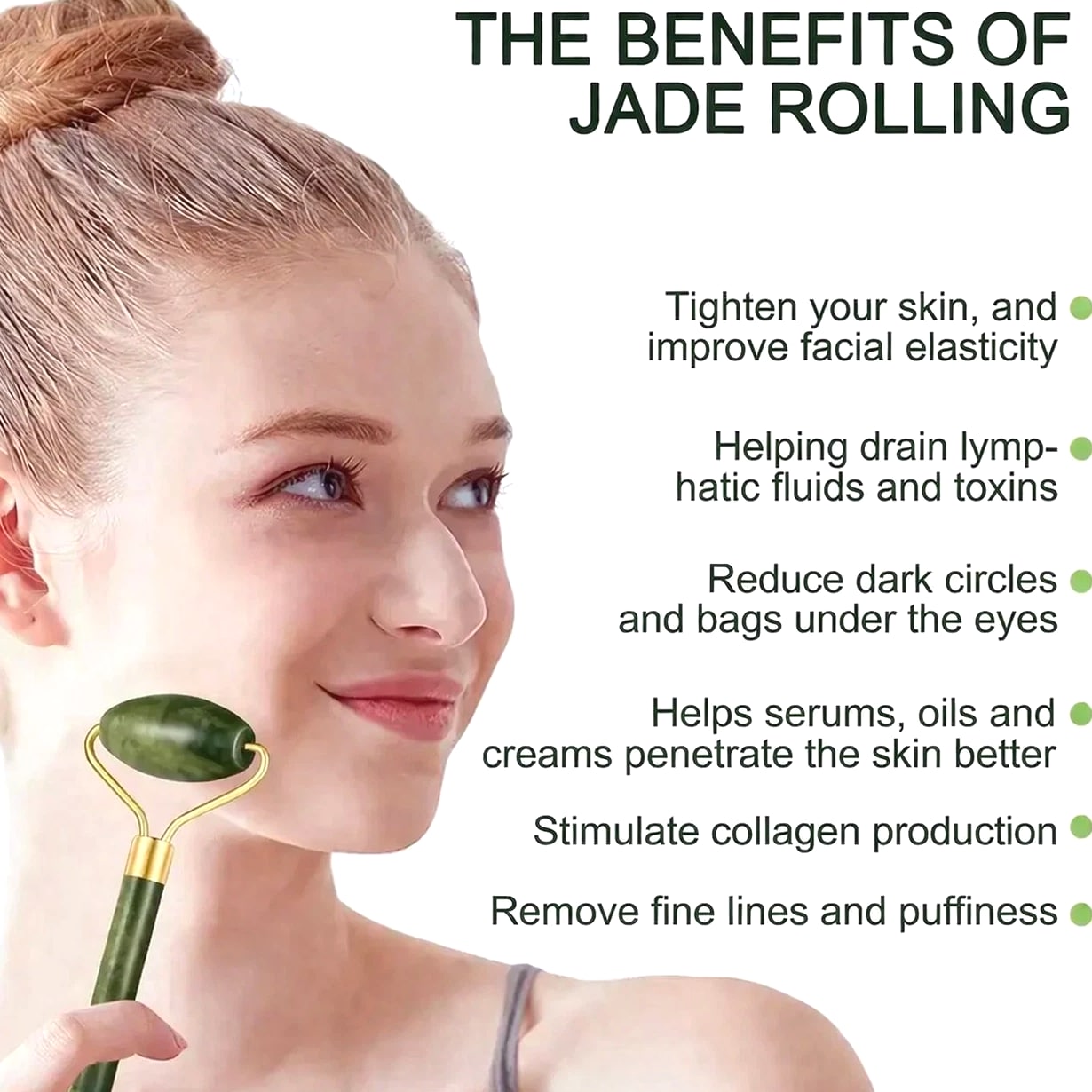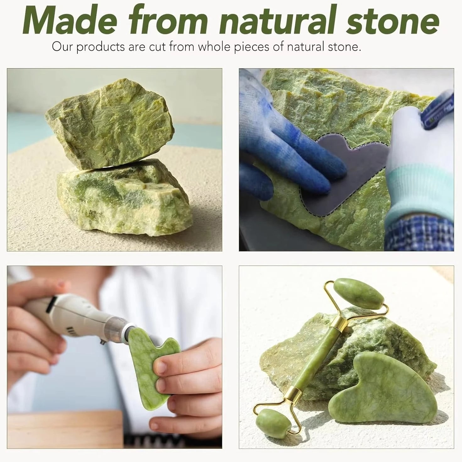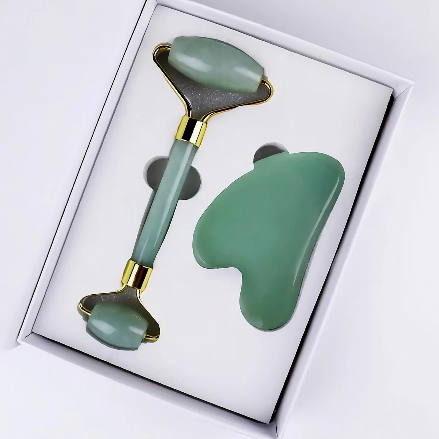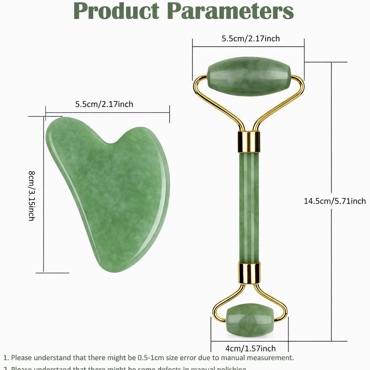 Premium Natural Jade Roller & Gua Sha Set - Facial Massager Anti-Aging Beauty Tool