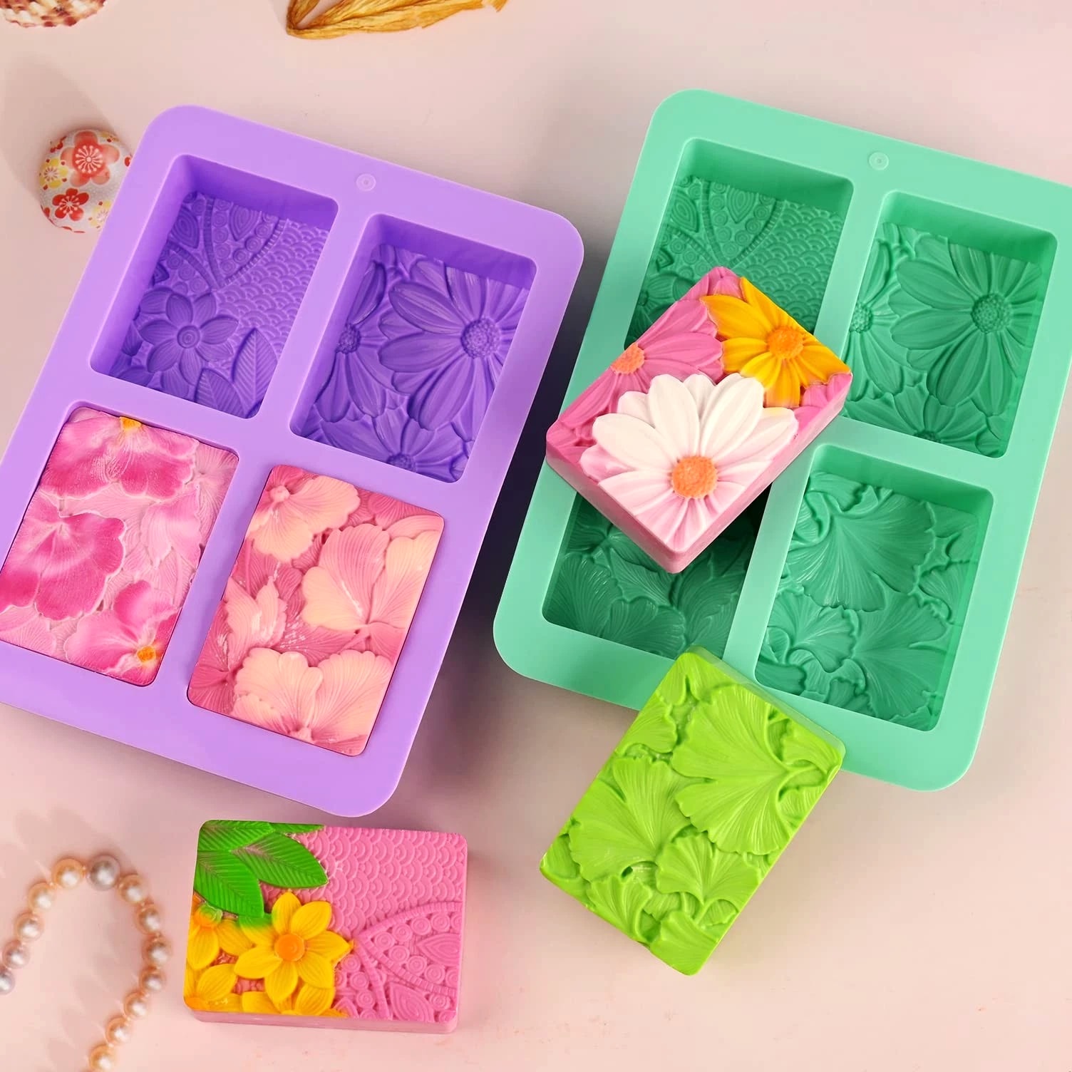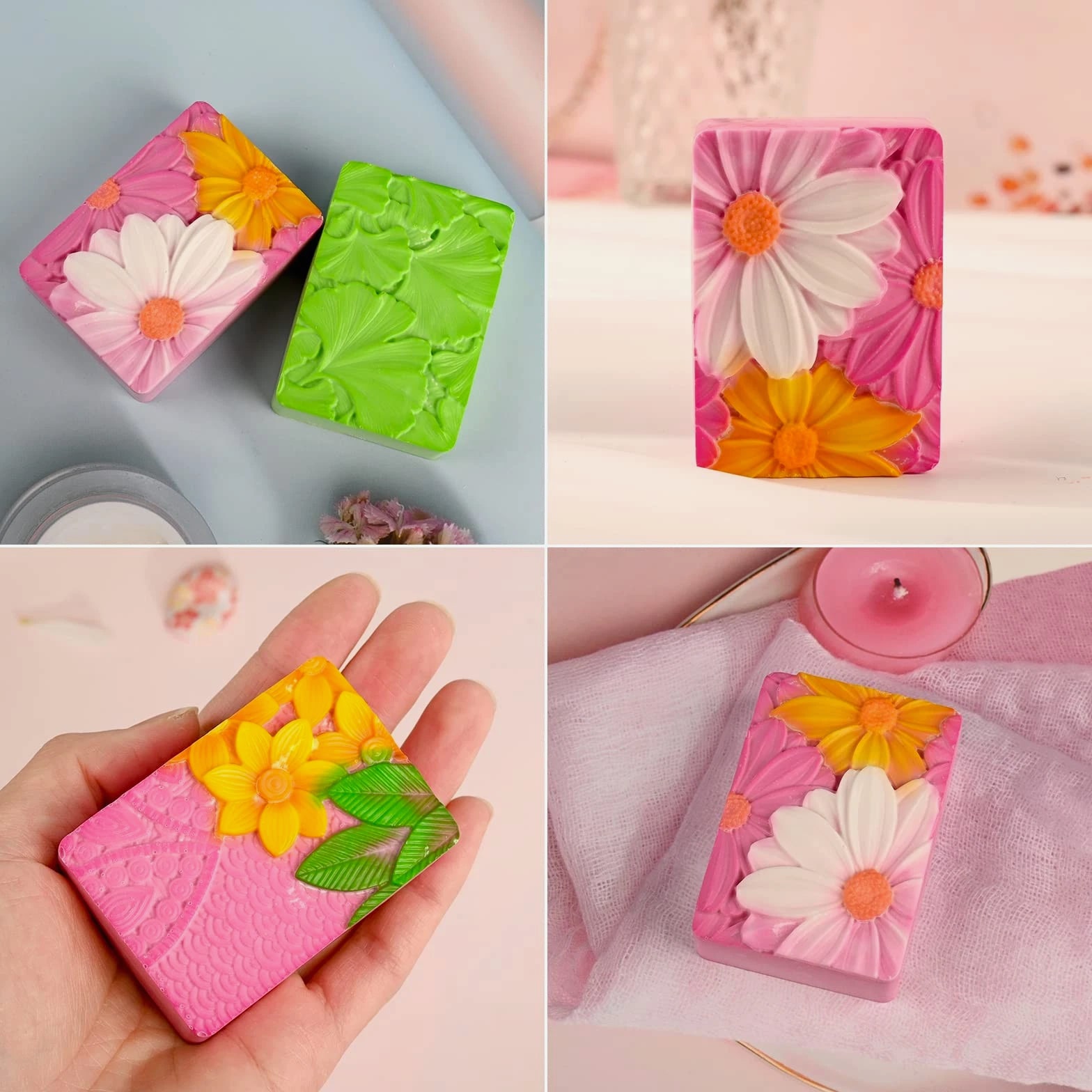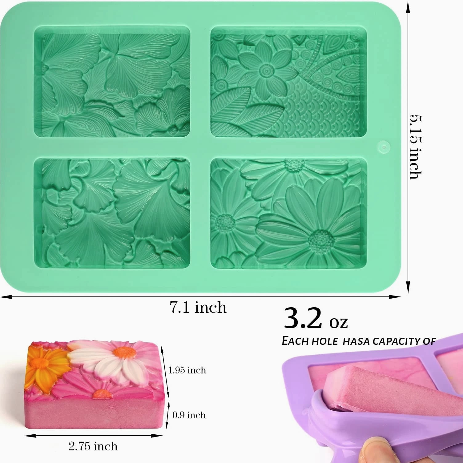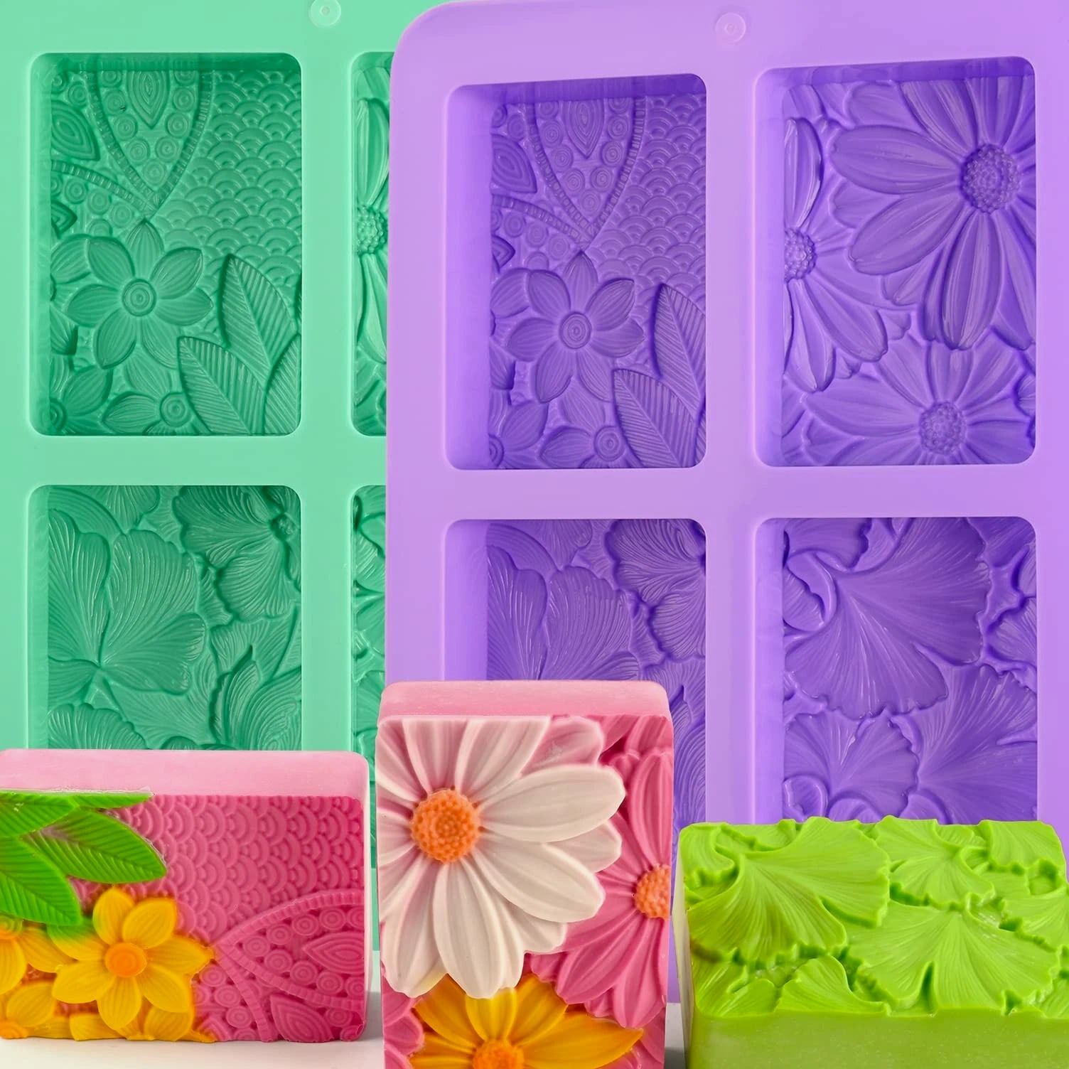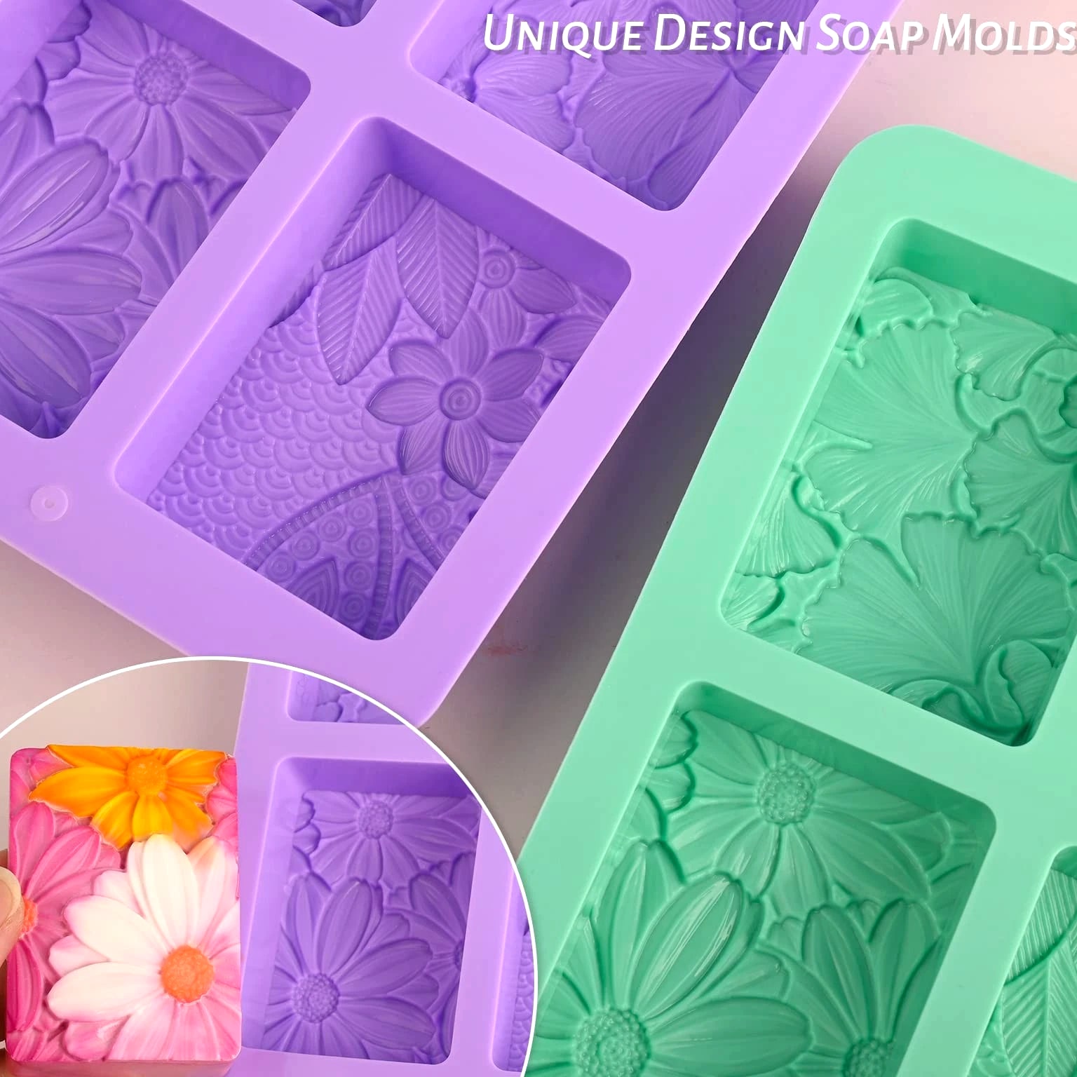 2 Pack Silicone Soap Molds, Rectangle Soap Making Mold, 3D Rectangular Flower Pattern